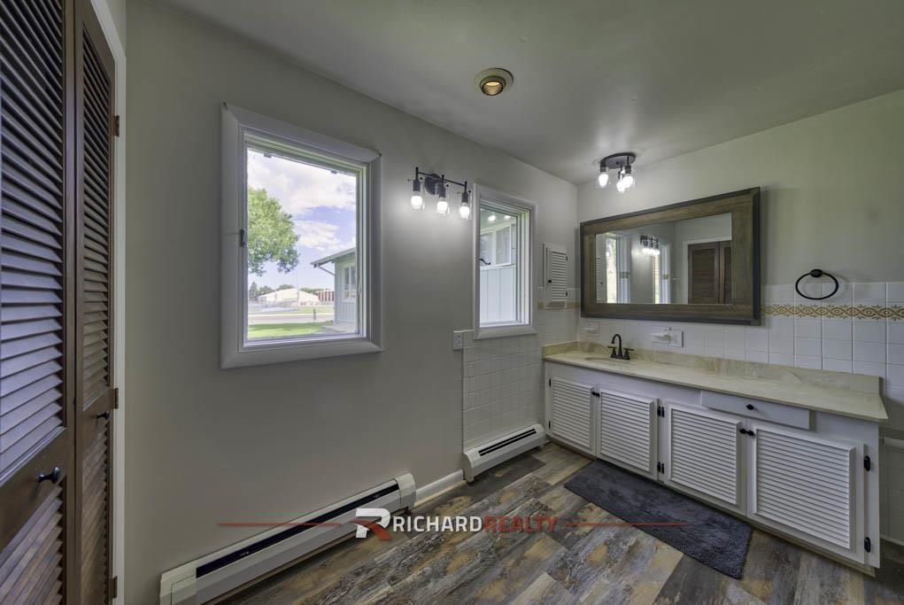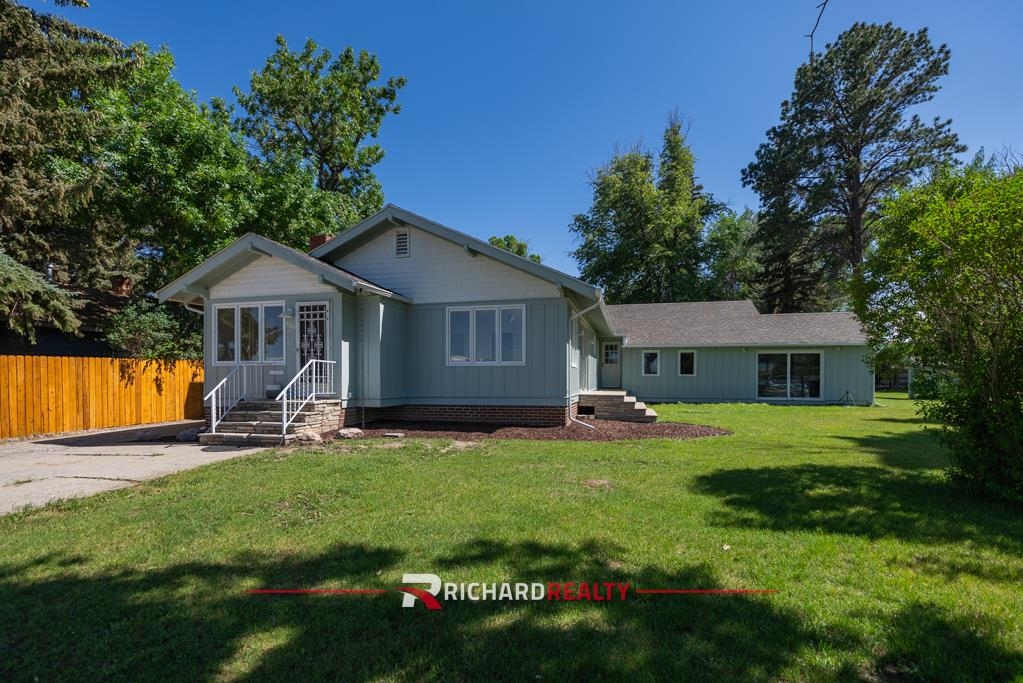 This rare 5-bedroom, 5-bath single-story ranch home offers over 4,400 square feet on 0.32 acres across two city lots, just a short walk from the Buffalo Bill Center of the West and downtown! Recently updated, the home features a new roof, gutters, fresh exterior paint, upgraded landscaping w/ sprinkler system, and a new cedar privacy fence. Interior updates include fresh paint and upgraded electrical and plumbing fixtures. Planned improvements include the installation of new energy-efficient windows, painted kitchen cabinets, new kitchen light fixtures, and new front door, all to be completed prior to sale. The spacious kitchen includes a large island, perfect for gathering and entertaining. The finished basement features a second kitchen, a generous living/media area, a bedroom, a full bath, and an easy opportunity to create a private exterior entrance—ideal for a mother-in-law suite or short-term vacation rental if the upstairs is owner occupied. Wood-burning fireplaces in both the basement living room and main living area provides cozy warmth and ambiance year-round. Outside, a third enclosed kitchen setup is perfect for hosting, and the garage offers ample storage and workshop space. Have the best of both worlds—enjoy in-town living with fantastic mountain views! Bonus: there are hints of original hardwood flooring under the carpet—be the one to bring it back to life! With its blend of character, space, and thoughtful updates, this home is next level!