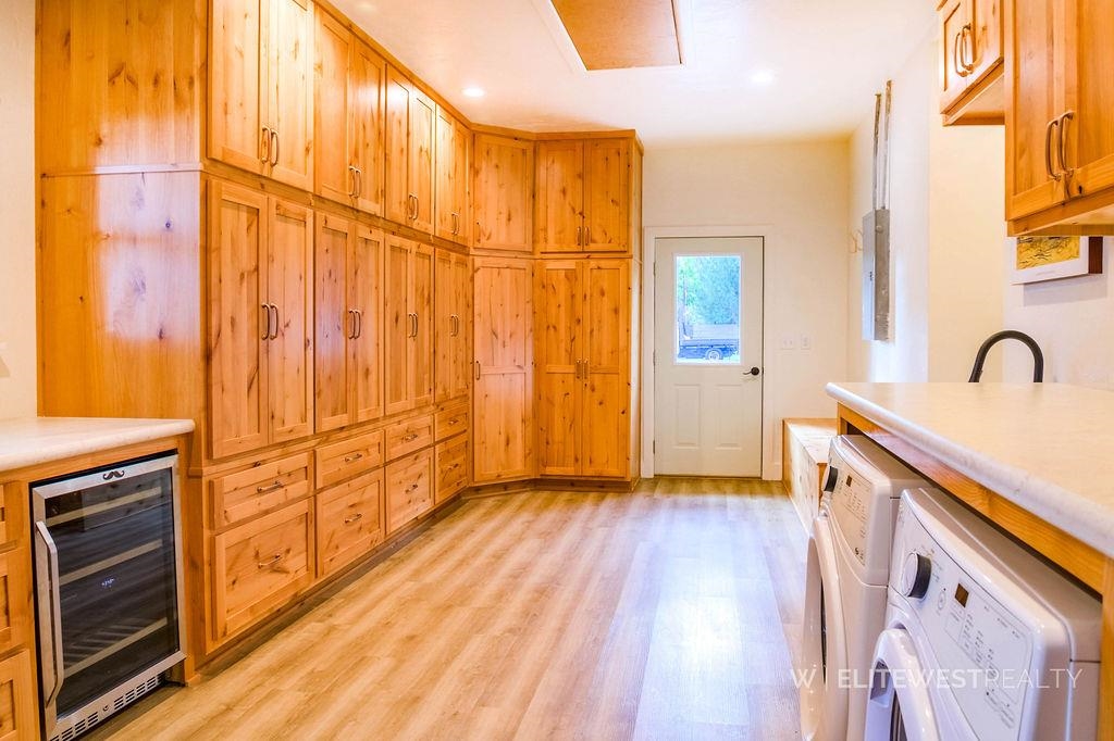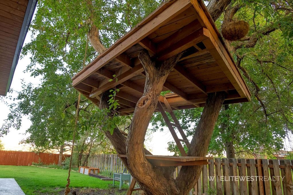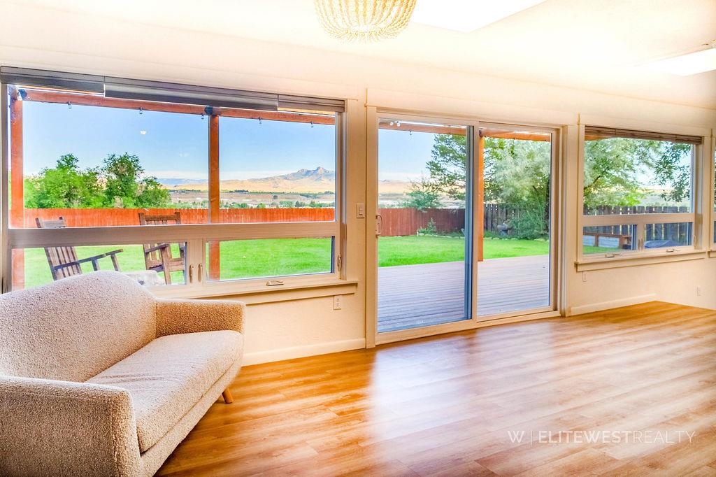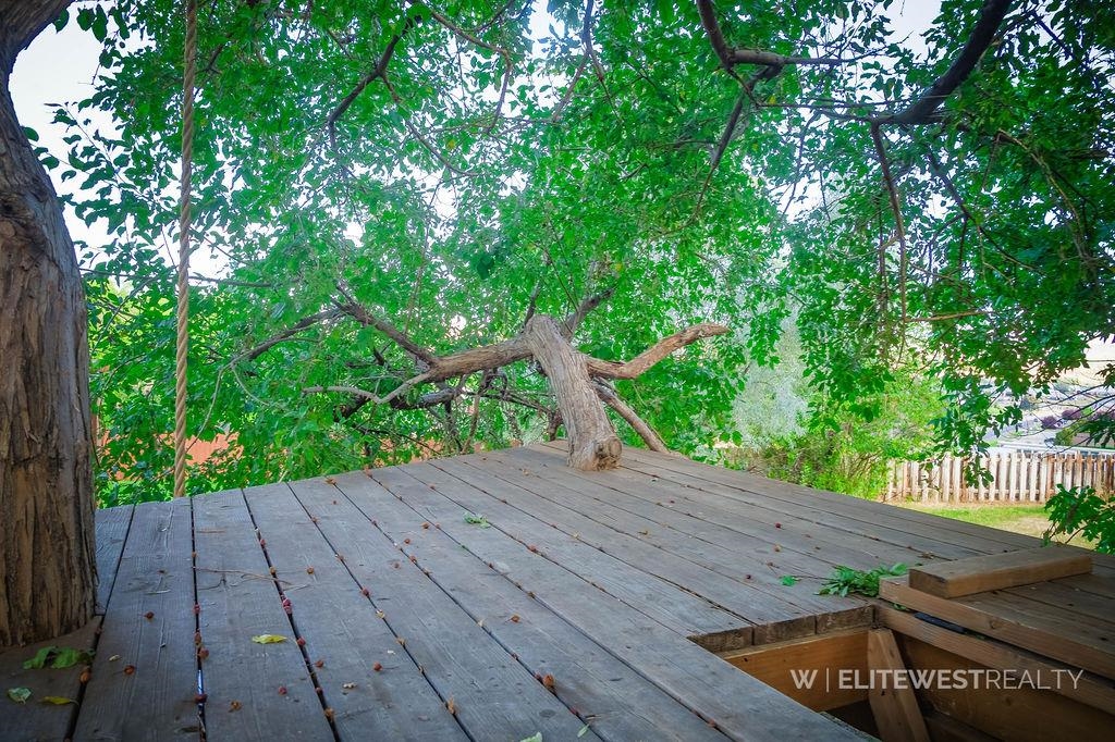 NEW YEAR - NEW PRICE - MOTIVATED SELLERS!! Perched on the rims in a sought-after Cody neighborhood, this 3,424 sq. ft. home blends space, comfort, and absolutely amazing views. The main level features three bedrooms, two bathrooms, and a kitchen/dining area that flows seamlessly into the living room and stunning enclosed sunroom where you'll enjoy unobstructed views of Heart Mountain. Step onto the welcoming back deck to take in the beautiful private yard and breathe in the fresh Wyoming air. You'll appreciate the large lot and the convenience of a garden shed for your tools and sprinkler system for ease of maintenance. For those who enjoy some extra fun, check out the custom-made tree house too! The converted former garage now serves as a charming laundry/pantry space with custom cabinetry, a wine refrigerator, and easy main-floor washer/dryer access. The downstairs offers a great space with endless possibilities whether you envision a game room, hobby space, home gym or theater, and a third bathroom adds to the convenient use of this area. You’ll also find a bonus room complete with your very own bar, plus a large utility room with generous storage and potential for additional rooms or uses. With its unique blend of thoughtful updates, flexible spaces, and a location that captures some of Cody’s best views, this house is ready to welcome you home!