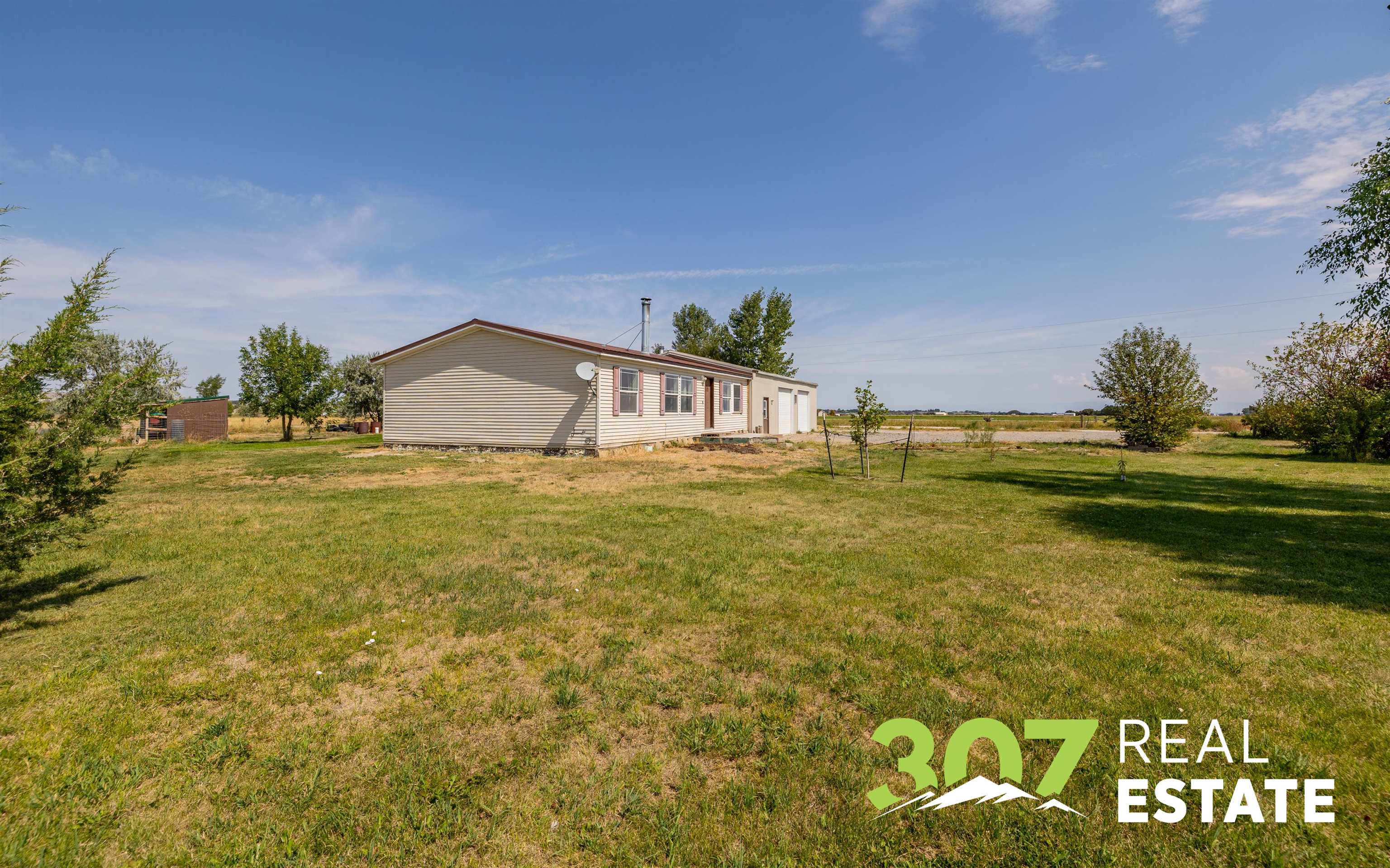 Move-in ready country property in the highly desirable and secluded Willwood area, perfectly situated between Cody and Powell. This 2008 double-wide manufactured home on a permanent foundation offers 3 bedrooms, 2 bathrooms, and a spacious attached two-bay garage with a unique heated storage room in between. Designed for both comfort and function, the property is set on over 5 irrigated acres with beautiful views of the McCullough Peaks. Ideal for horse or livestock enthusiasts, this property features a well-designed corral setup, irrigated pasture or production ground, a horse shelter with hay storage, and a tack shed. With outstanding recreational opportunities in every direction, this property delivers the best of country living with convenience close to town.
