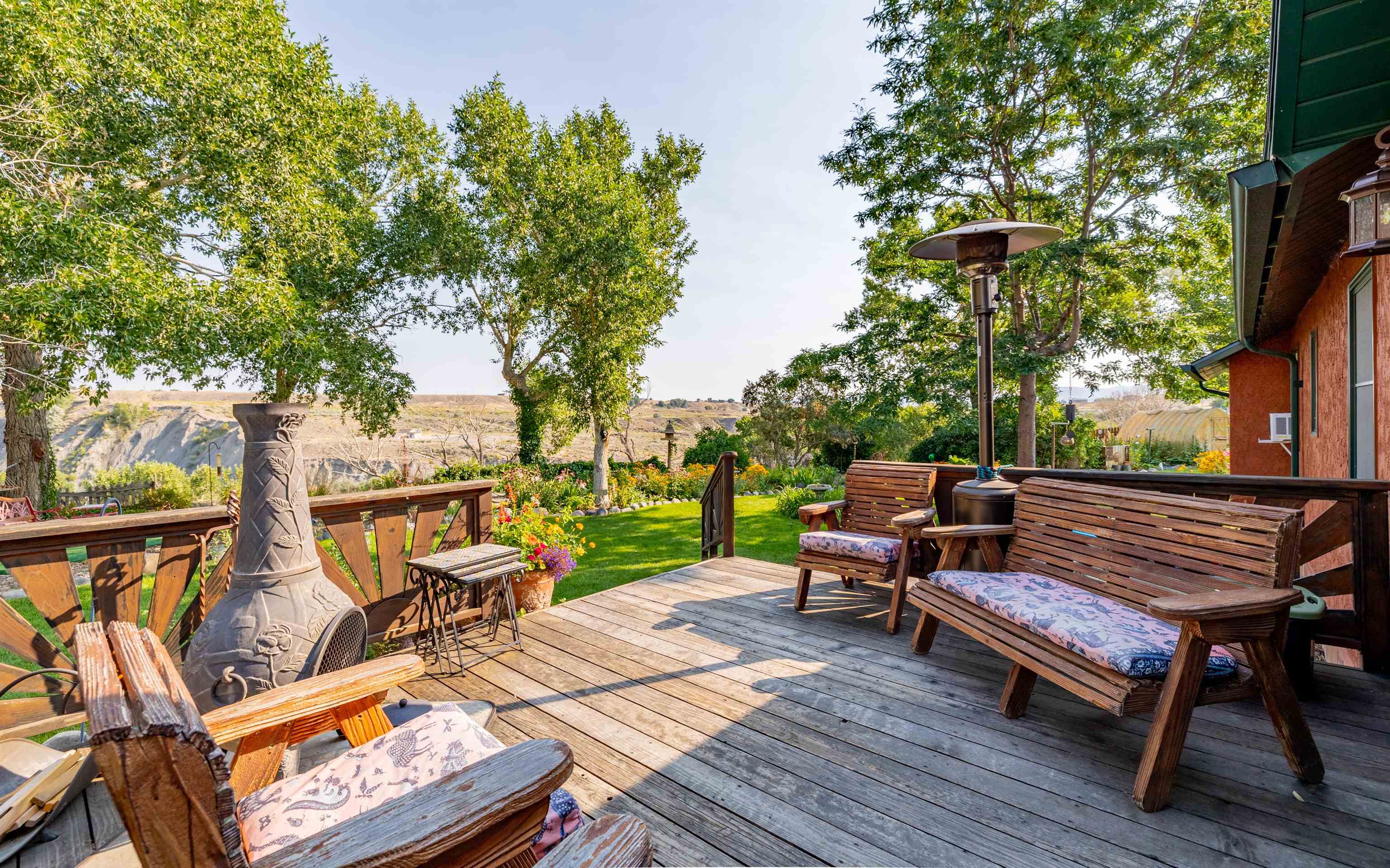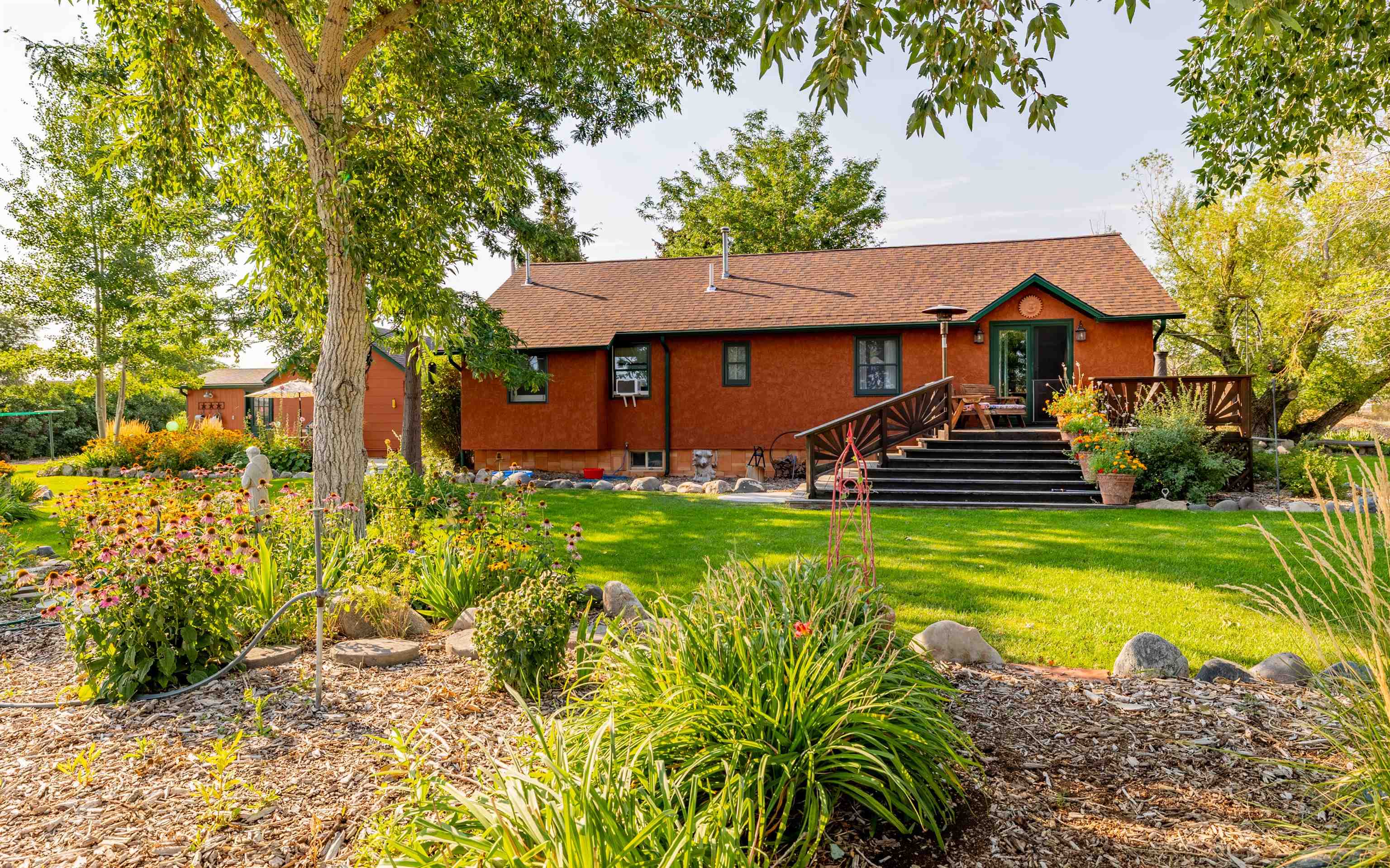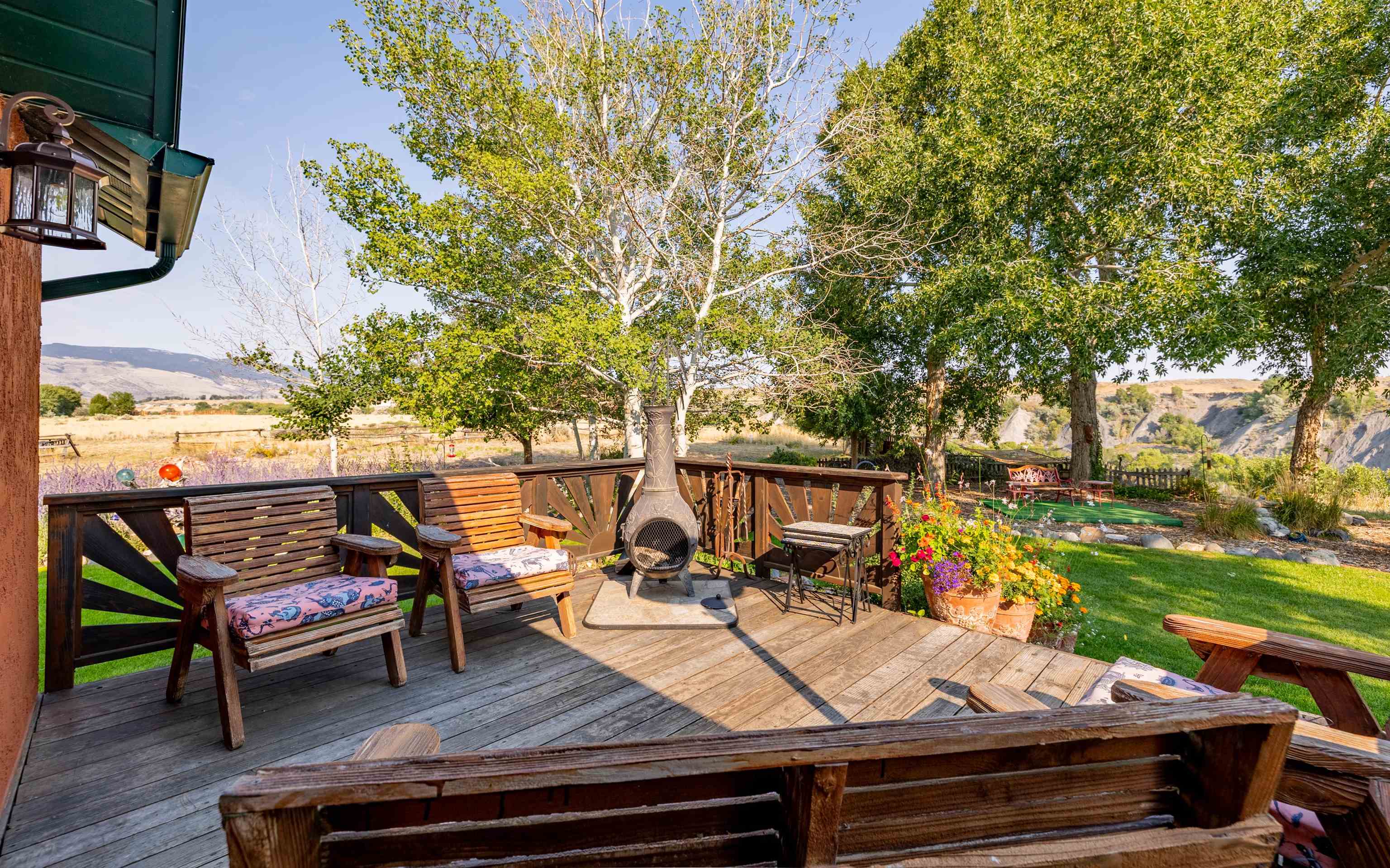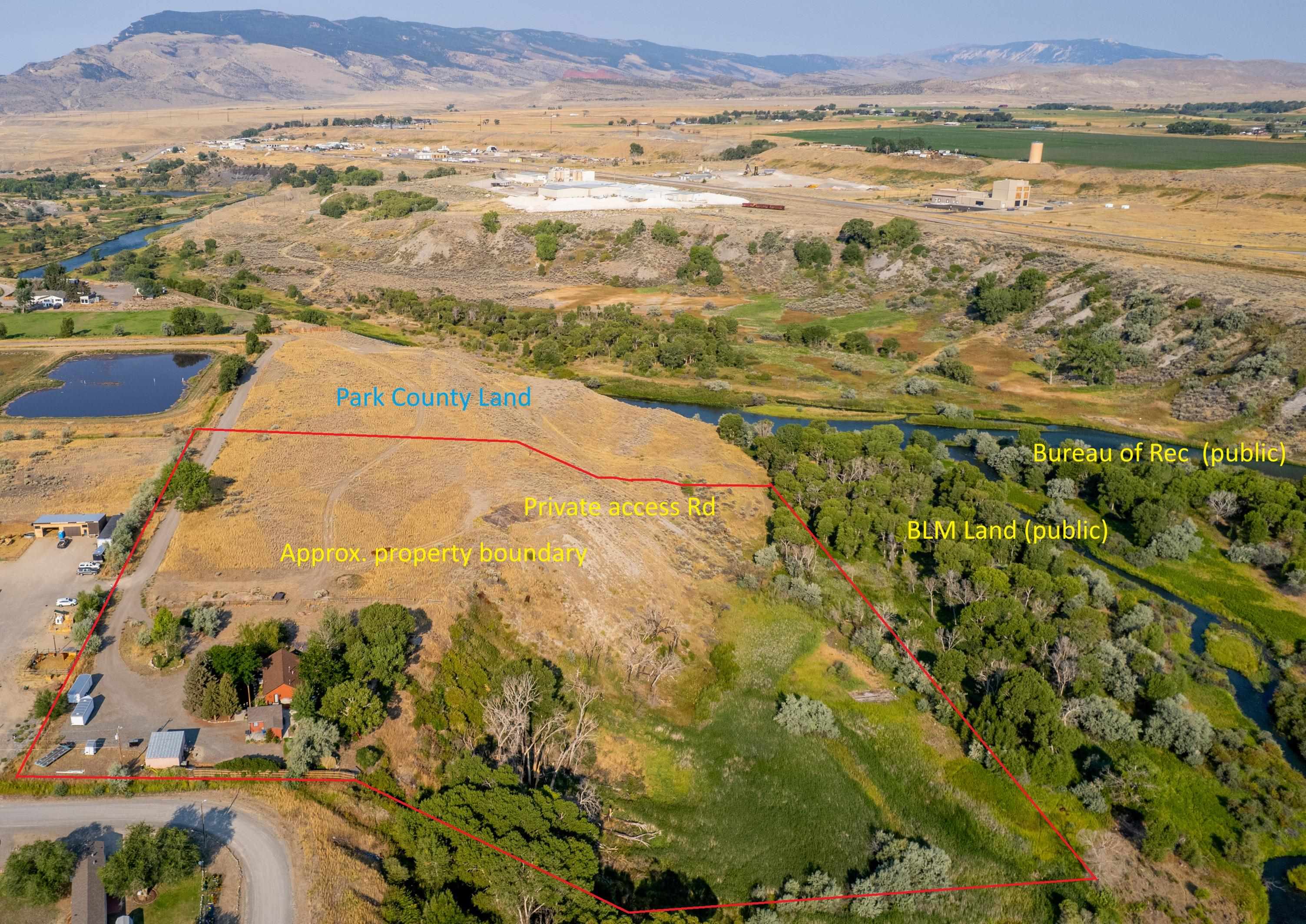 SHOSHONE RIVER ACCESS! This 13 acre property is very close to city limits, but has the benefits of being located in the county and has access to the Shoshone River through Bureau of Reclamation. Beautifully maintained grounds from the relaxing outdoor porches and decks to the beautiful landscaping and walking paths through the flower gardens. Incredible spot to watch thunderstorms roll in and the sunset over the mountains beyond the river. Three bedroom, two bath home has been cherished for years by the current owners. Garage with shop area and a greenhouse. Entertaining in this setting allows the owner to accommodate many people and creatively utilize the space. An ideal place for cultivating a large vegetable or flower garden, enjoy hobbies such as woodworking, art and pottery, outdoor music, FISHING!