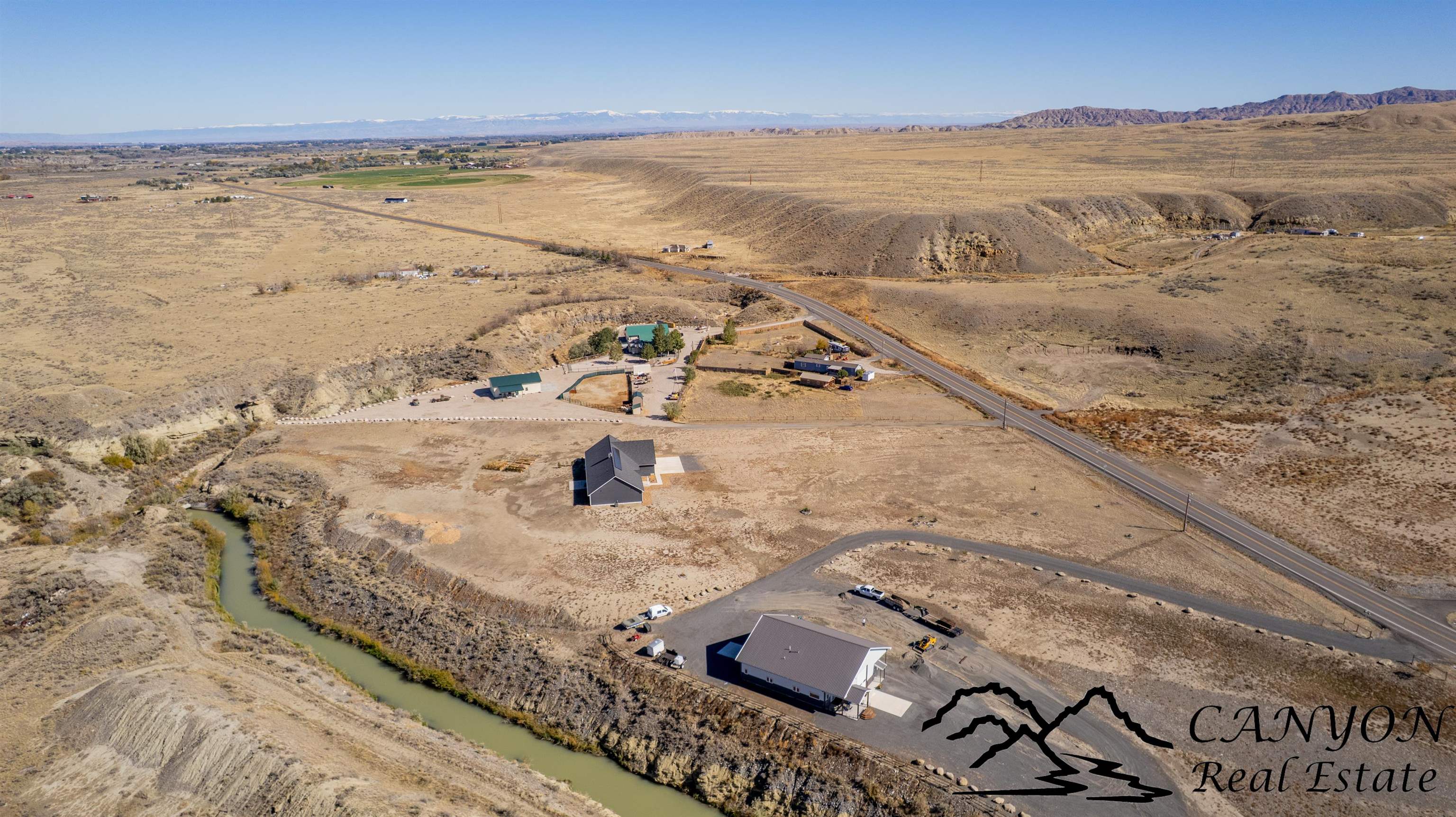 This newly built 3,259± sq. ft. home offers spacious single-level living with 5 bedrooms, 3 full bathrooms, and a half bath. The residence features custom Cherry wood cabinetry and quartz countertops throughout. The open kitchen and dining area include stainless steel appliances, while large bedrooms and wide hallways enhance comfort and accessibility. The home’s high-efficiency design keeps utility costs low, featuring solar panels, a private well, a cozy wood stove adds warmth and comfort, while the mostly finished 1,000± sq. ft. basement with egress windows offers flexible space for living or storage. Additional highlights include an attached 4-car finished garage, RV parking, and natural, low-maintenance landscaping. Horses are welcome, and minimal covenants allow flexibility without the restrictions of an HOA. Enjoy panoramic mountain views just 15 minutes from Powell, 15 minutes from Cody and an hour from Yellowstone National Park. Outdoor enthusiasts will love the nearby Shoshone River for public fishing and McCullough Peak access for ATV adventures.