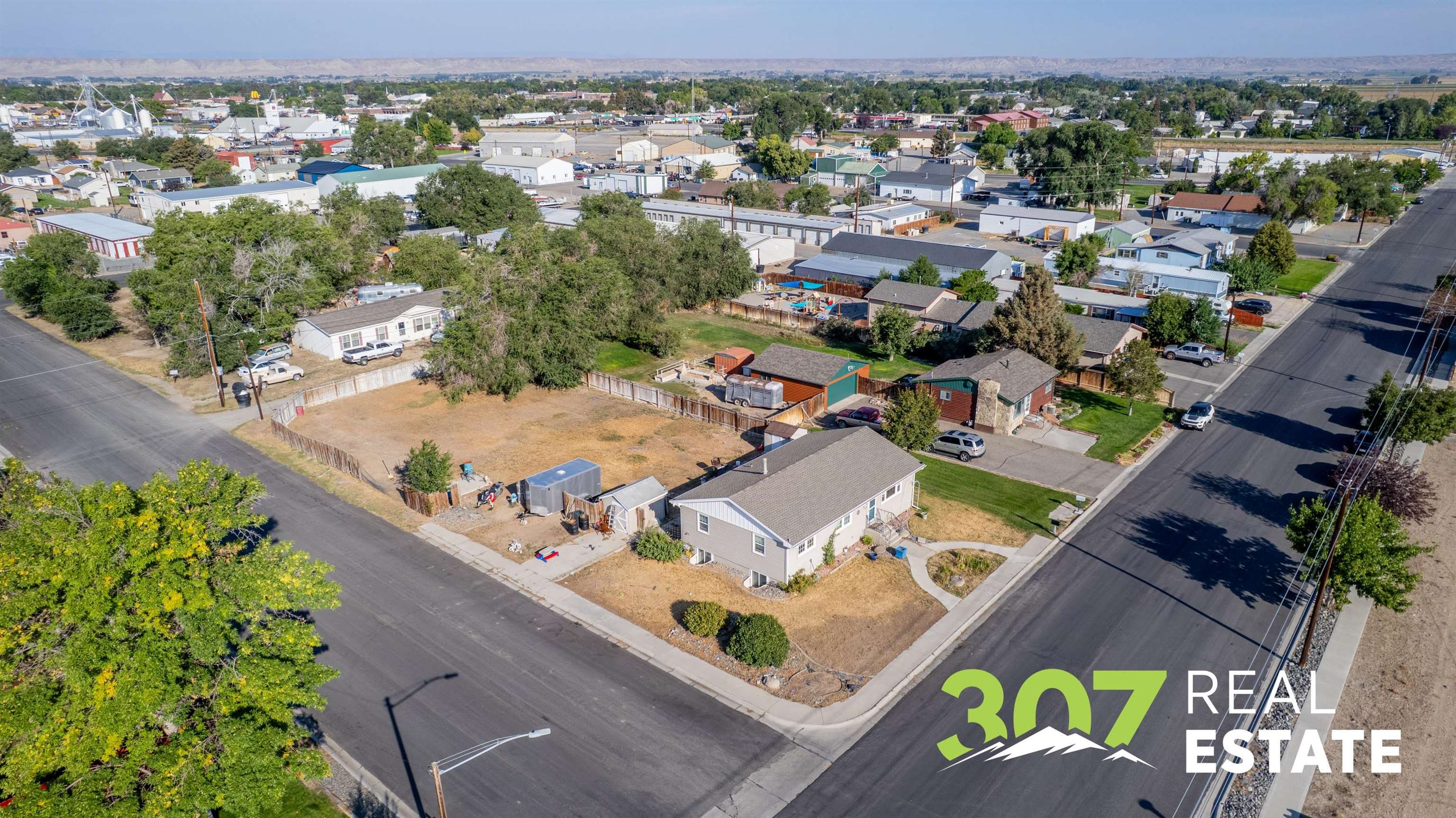 A rare find! This traditional 5-bedroom, 2-bathroom home on an oversized corner lot offers comfortable living combined with incredible business potential. Enjoy the benefits of a newer roof, newer windows and metal siding ensuring low-maintenance ownership. The main floor features a classic layout with a sunny living room, dining room, and a practical U-shaped kitchen with a breakfast bar. The upstairs provides three bedrooms and a full bath, while the finished basement offers a large recreational room, two additional bedrooms, a 3/4 bath, and laundry/storage/utility area. Zoned Powell Industrial Limited, this large corner lot provides room to build a large shop or potentially house a small business (Buyer responsible for investigating City Building Codes for permitted uses). Bring your business home! There is a small storage shed on the property and a well with a brand new pump for the yard. This property offers a fantastic opportunity for a large home and the possibility of operating a business in the same location.