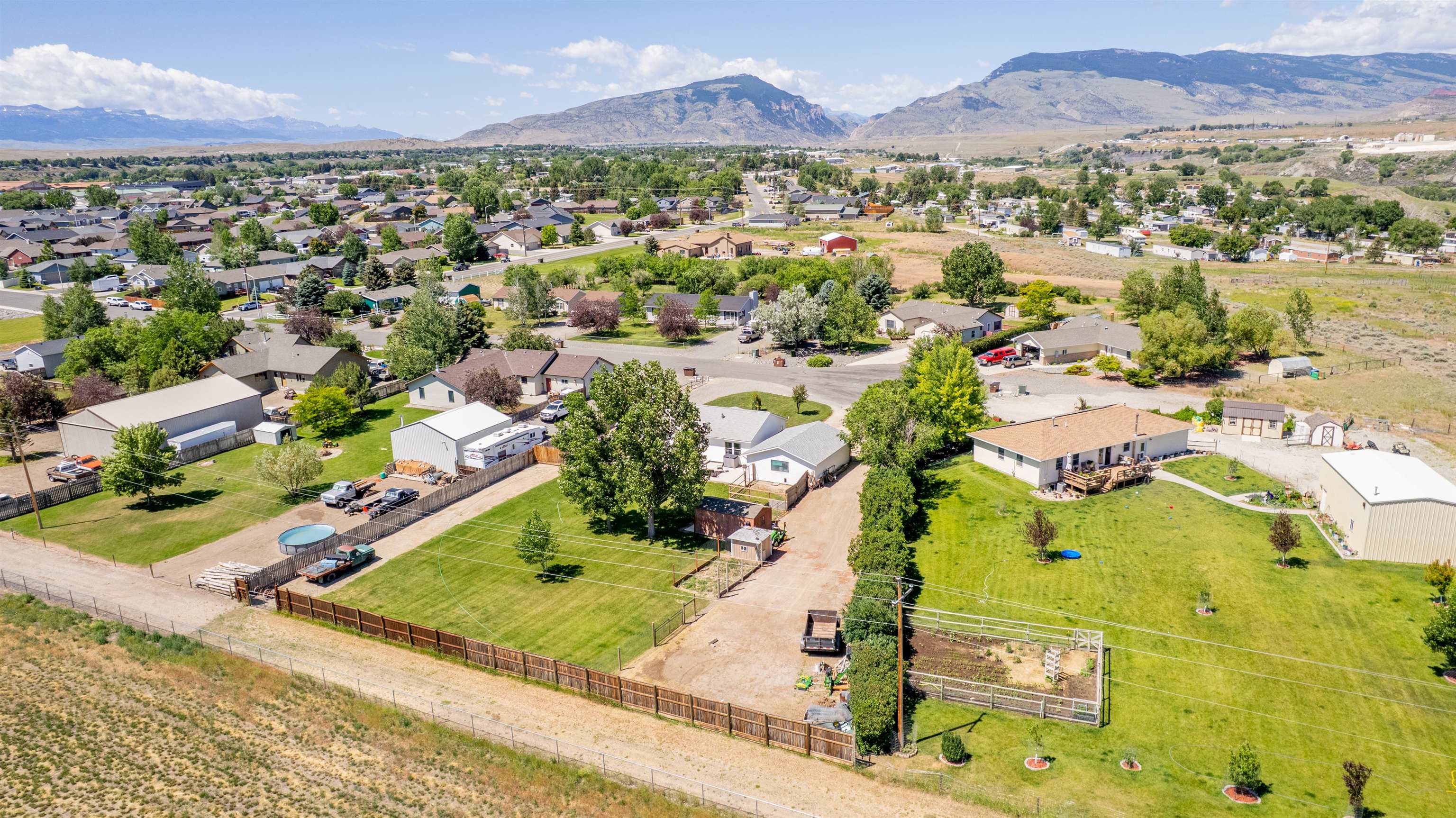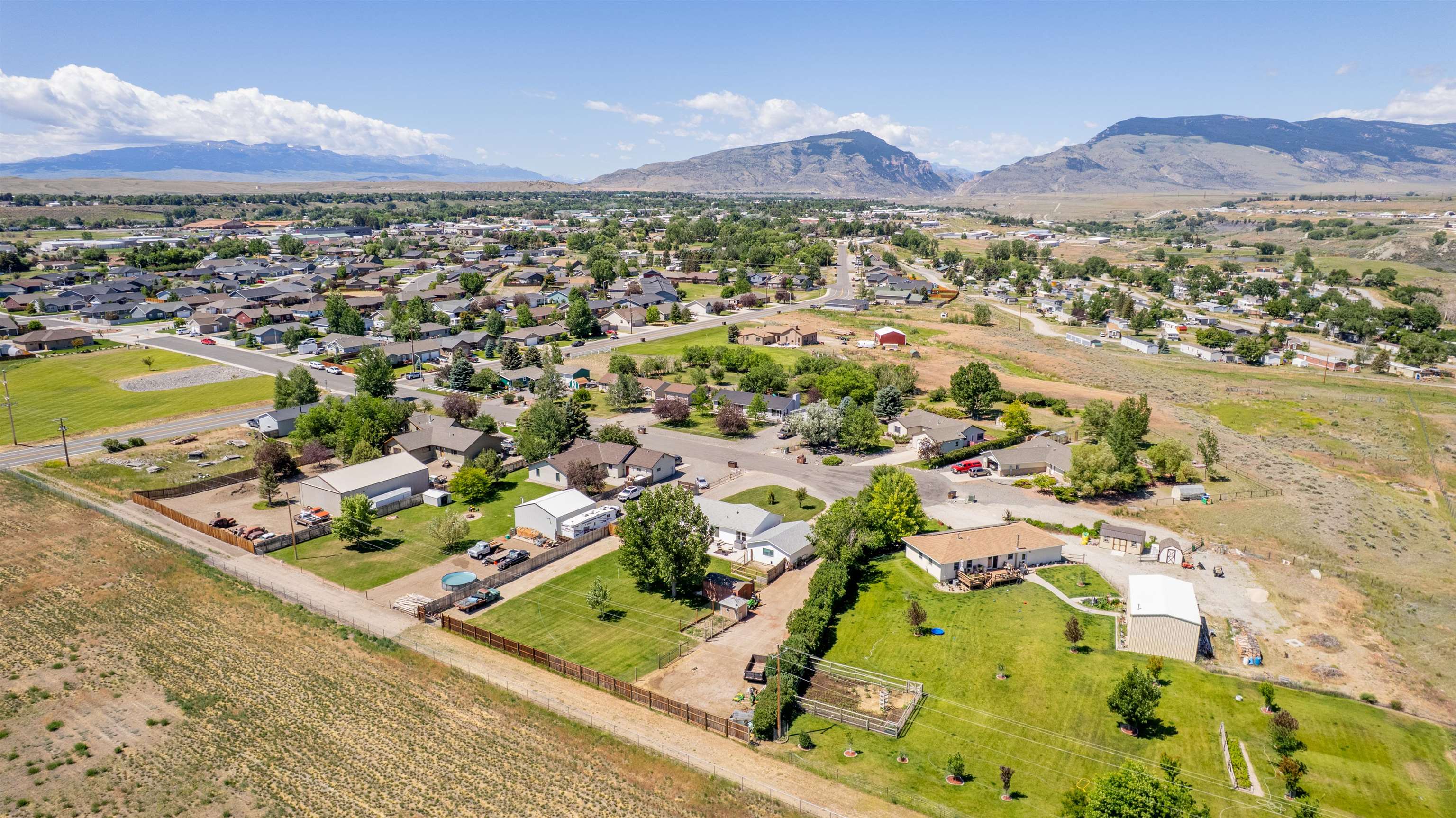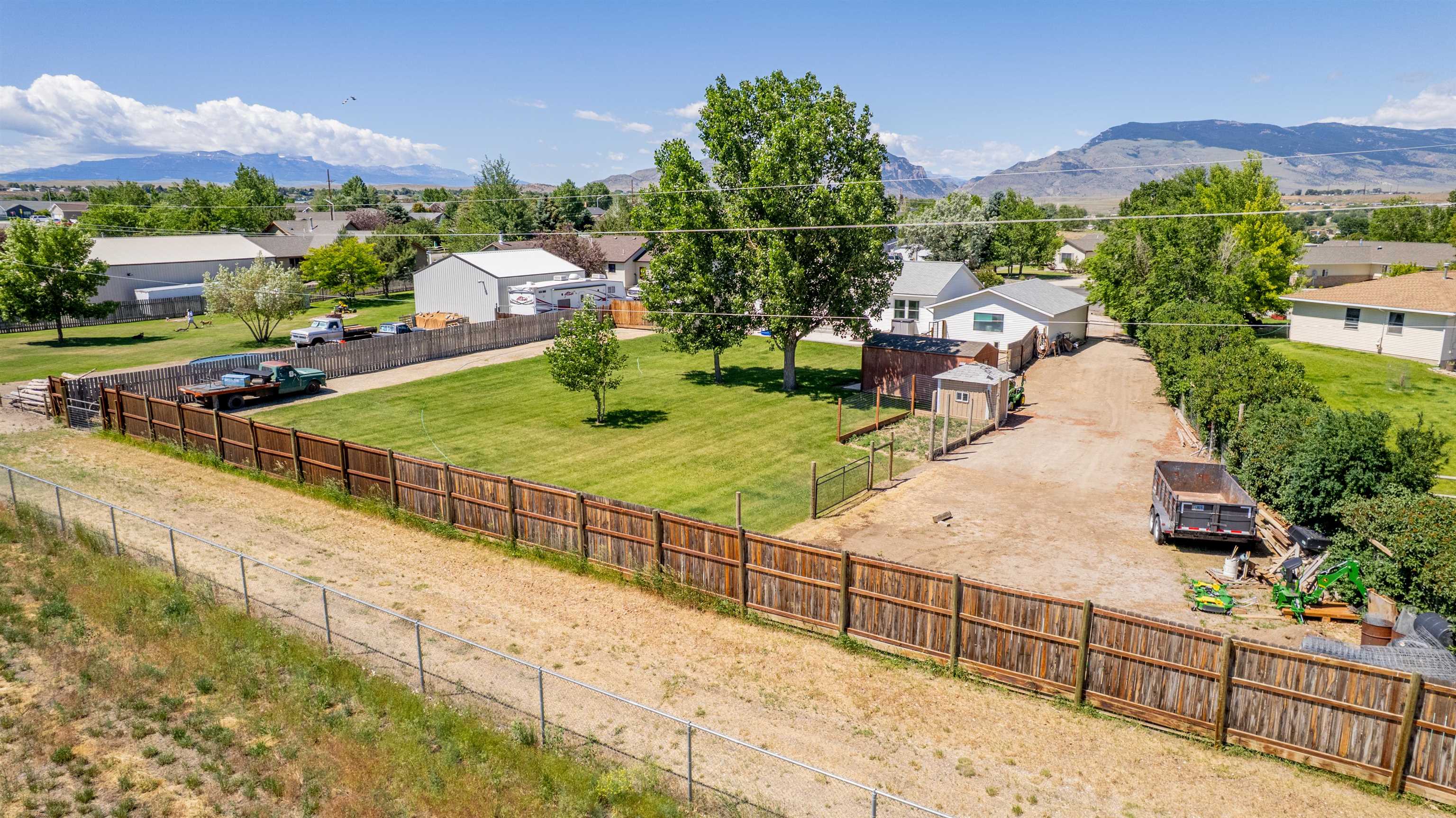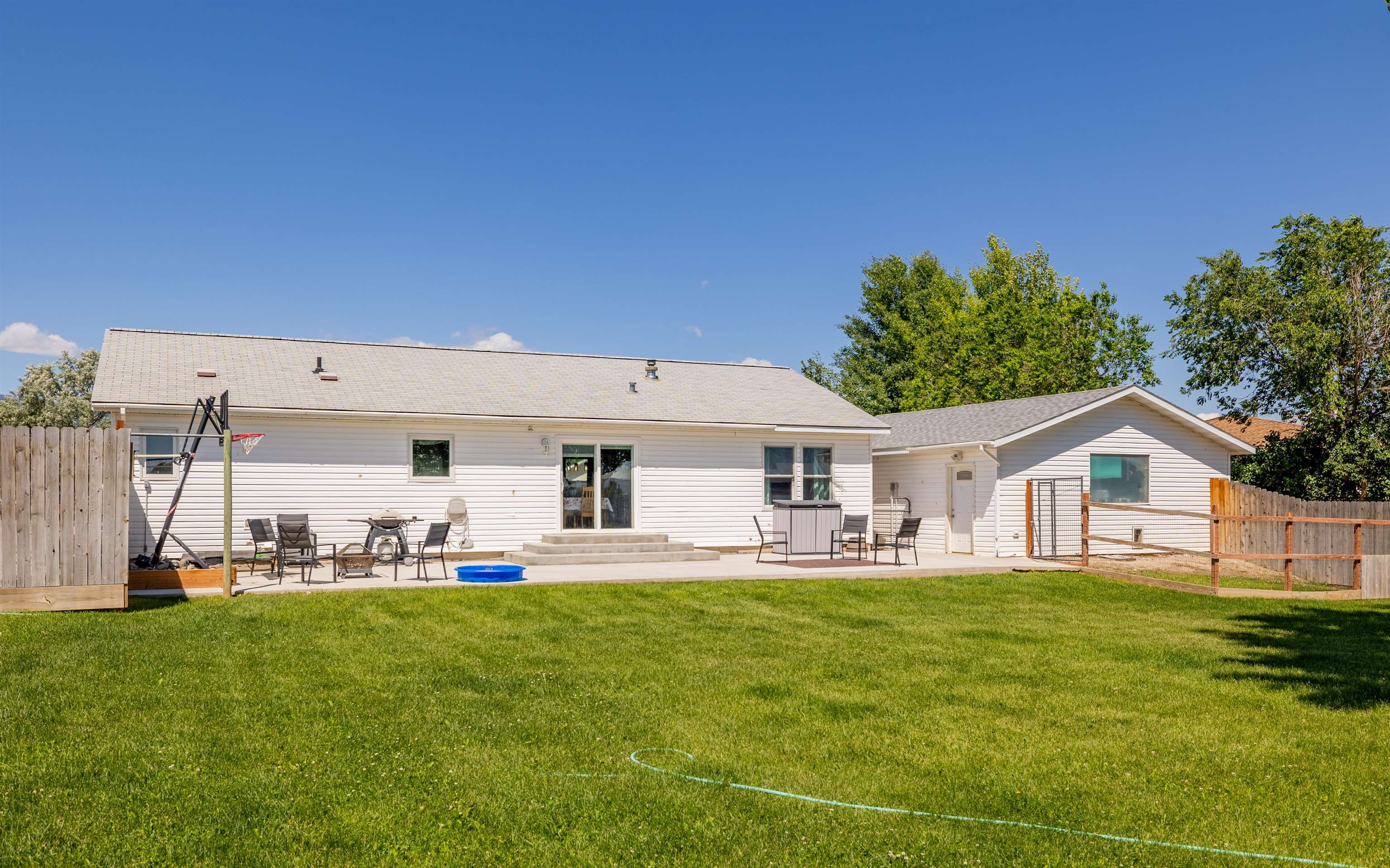 Modern home with vaulted ceilings and high 9' walls. This 3 BR, 2Ba features a detached, oversized garage and a large lot. 0.72 Acre lot with an irrigated yard on a quiet cul-de-sac. Fenced in, private back yard with alley access. Open kitchen with gas range, wood cabinets and modern appliances. Upgraded electrical to support and large water heater and a 50/30 RV plug in on the exterior. Large two car Garage is finished and wired with cable and phone hook up. Beautiful, private back yard with plenty of space for an additional shop building. Gravel drive for RV parking with exterior plugin. Additional gravel drive to safely store equipment.