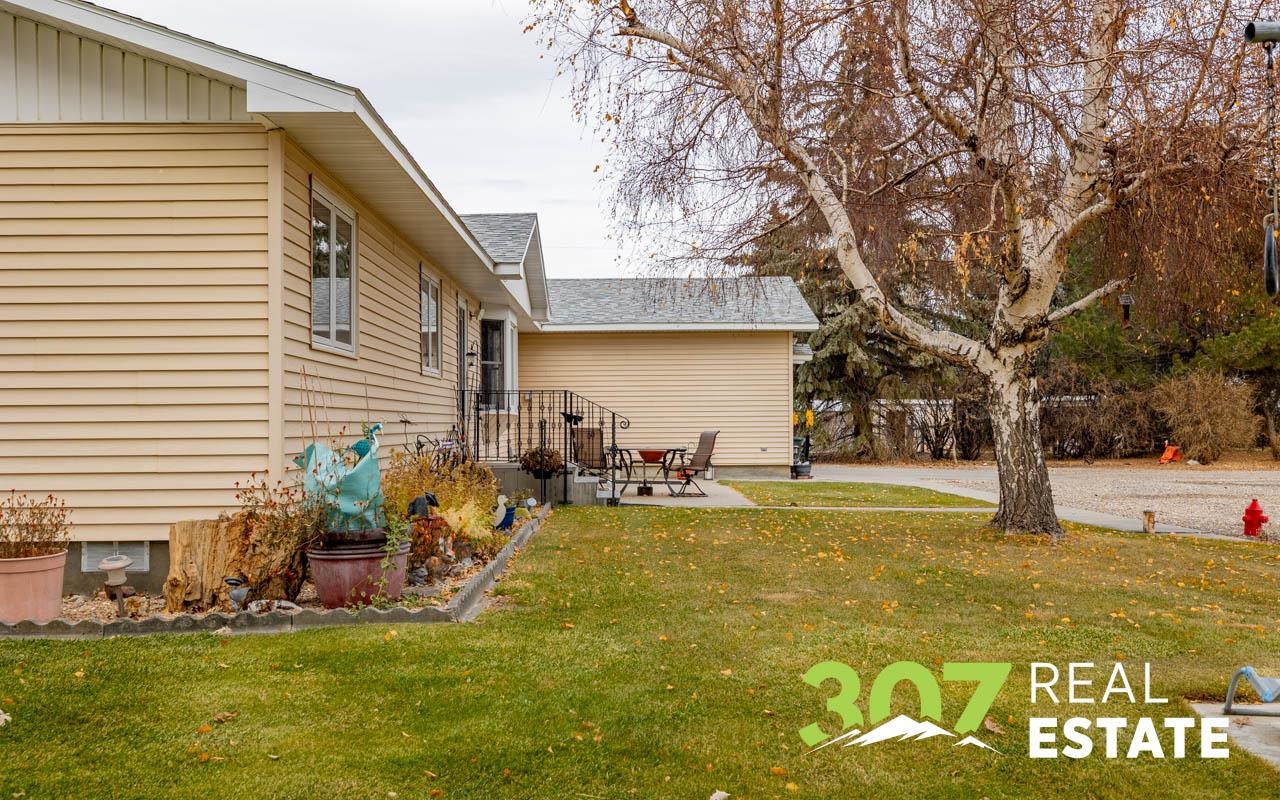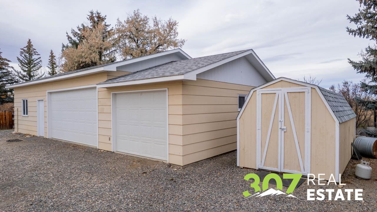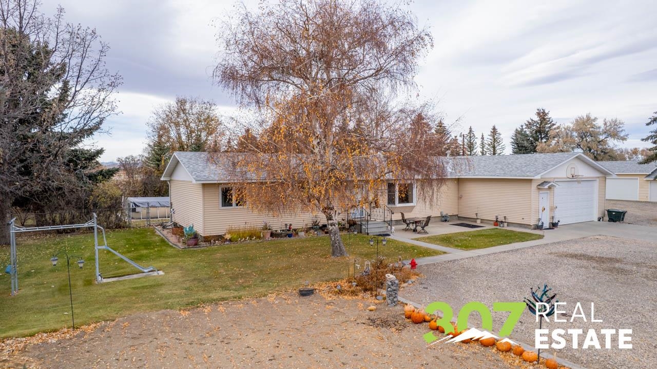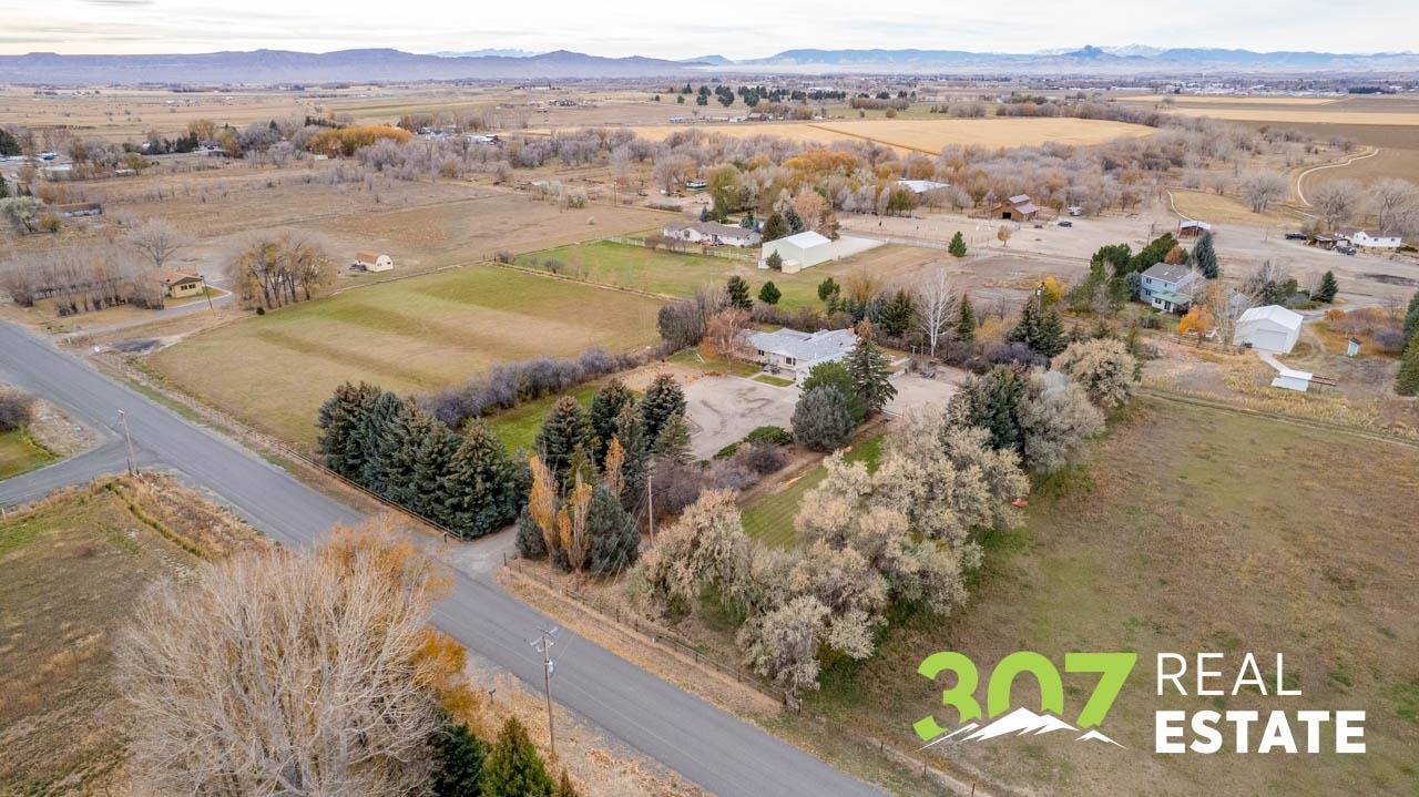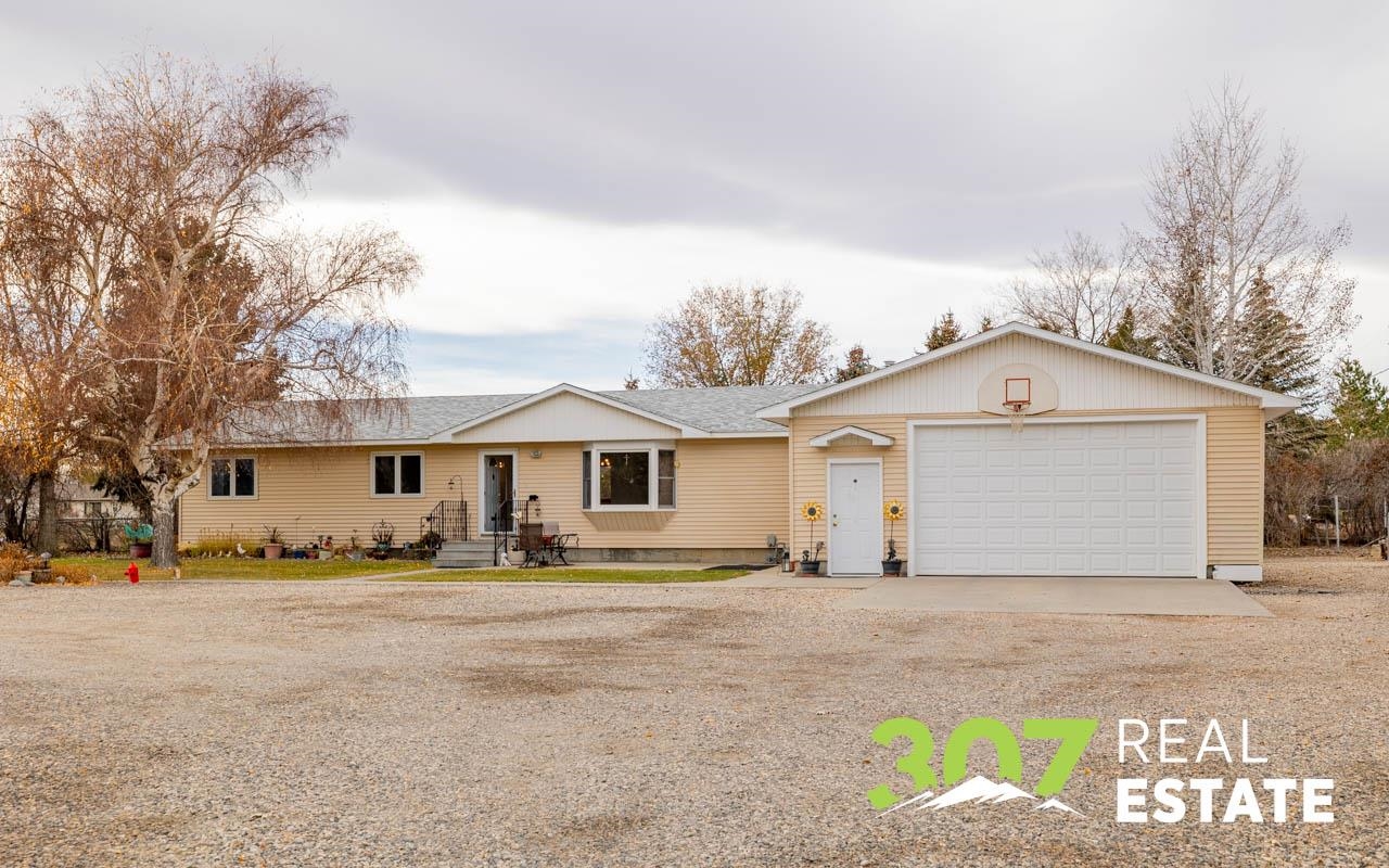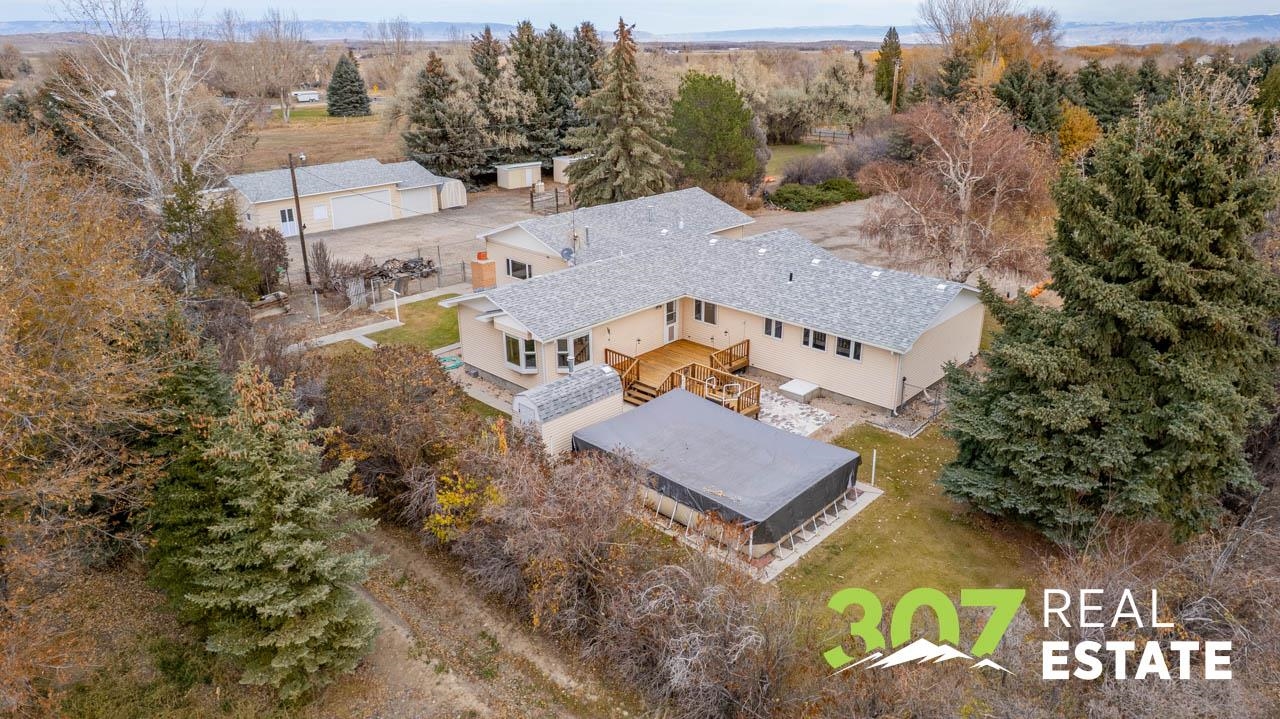 Enjoy the Wyoming views and room to roam on this versatile 4 acre Powell property. The home offers a comfortable layout with 3 bedrooms, 2 bathrooms, including a bath with a walk-in jetted tub and there is an efficient central kitchen with a breakfast bar. A designated dining area flows easily into both the living room and family room, where a beautiful rock fireplace crafted with rocks gathered from the surrounding area creates a striking focal point. A separate recreational room with a pool table adds to the generous interior spaces. The extra-large heated two-car garage provides exceptional convenience. Outside, a second heated detached garage features two additional stalls, a hobby/workroom area, and off the back there is a walk-in cooler and space designed for processing harvested game or other uses. Off the rear of the home, a freshly re-stained deck leads to a large 17’ × 25’ above-ground swimming pool; a nearby shed houses the pool equipment. The property is thoughtfully laid out to offer privacy, with a huge amount of trees and shrubs throughout. A large garden space for the green thumb. Two fenced open pasture areas are ideal for animals and include two small loafing sheds. Additional features include a storage area for hay or firewood, a separate 128 sq. ft. storage building, and a dog kennel. There are numerous improvements and extras across this property, ask for the full list available to serious buyers.