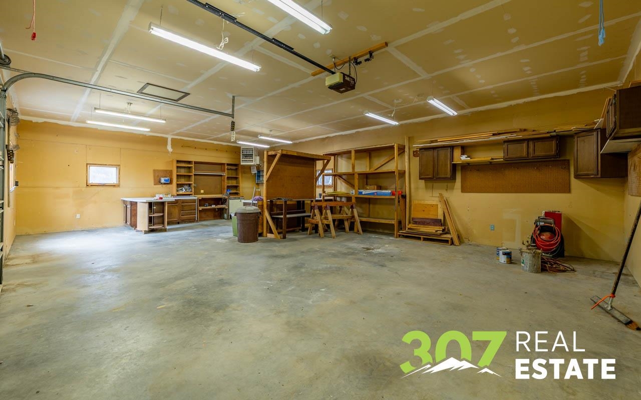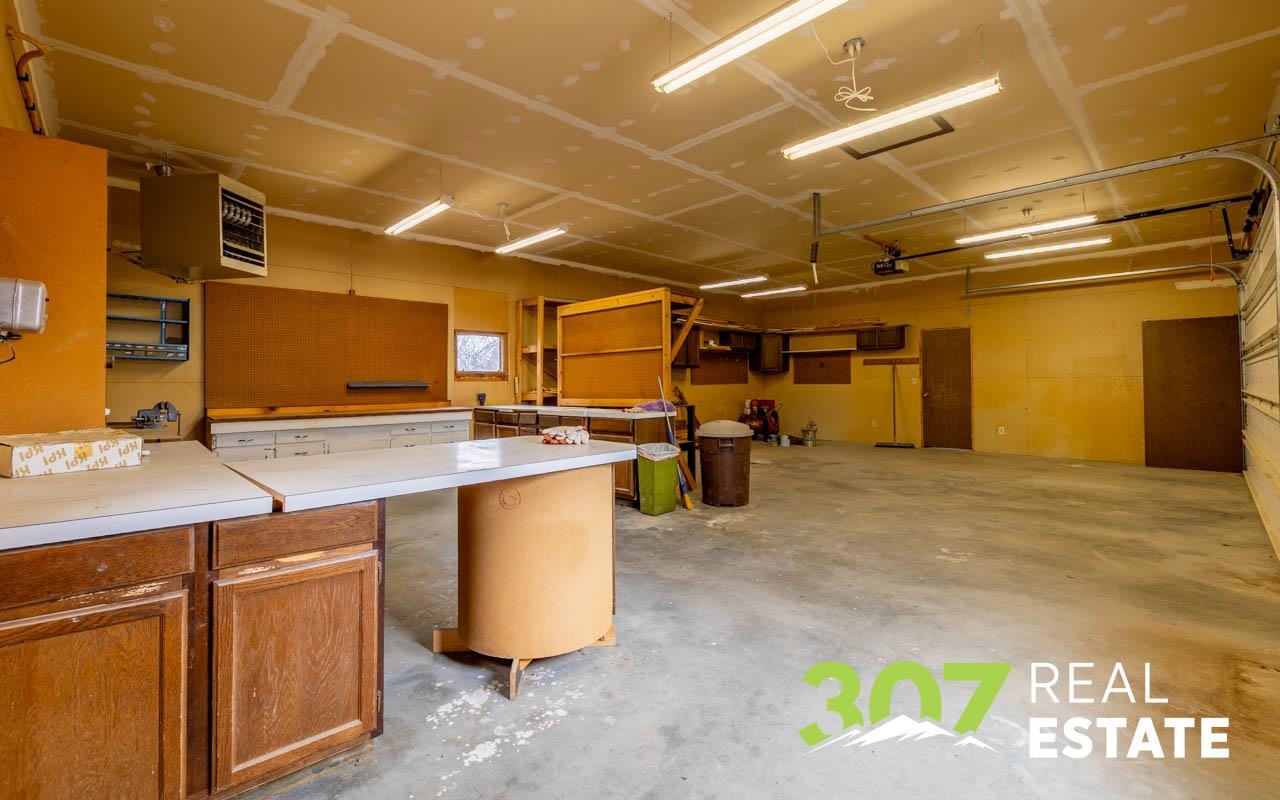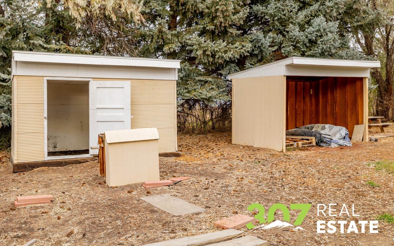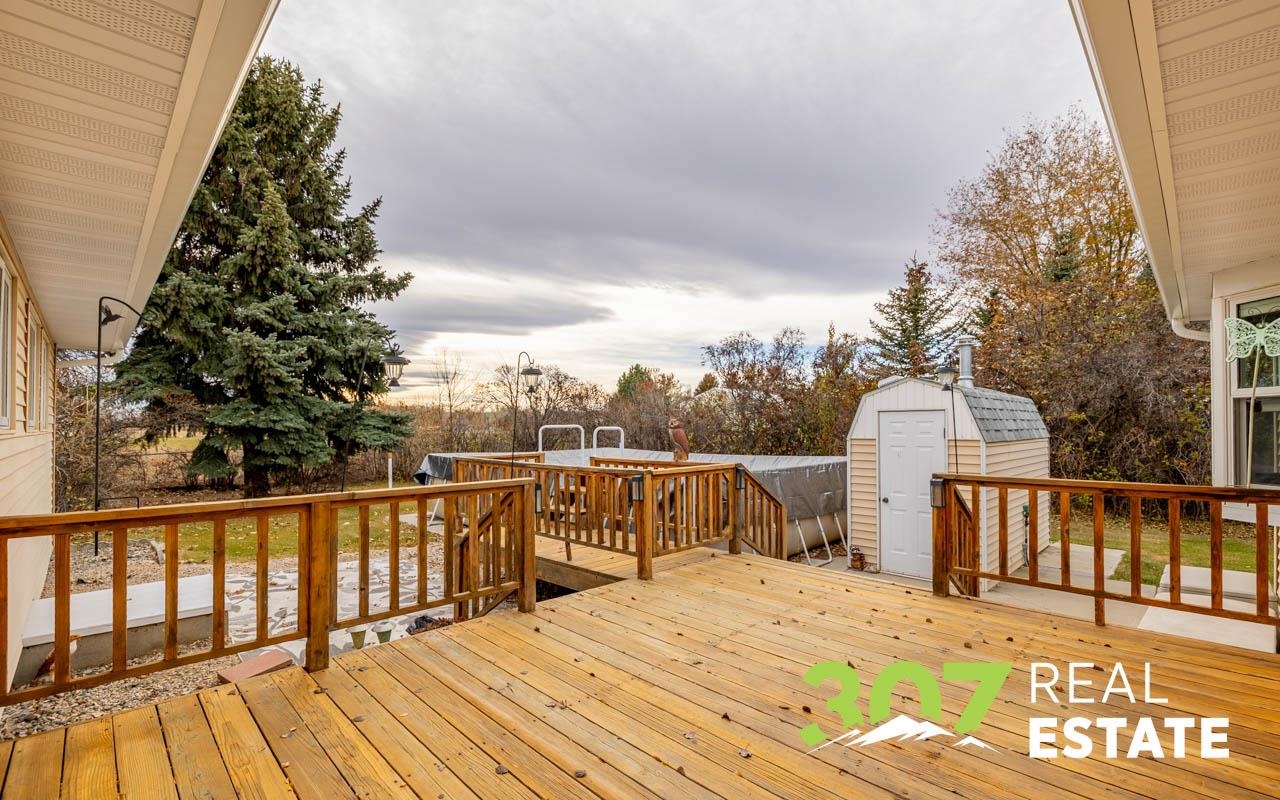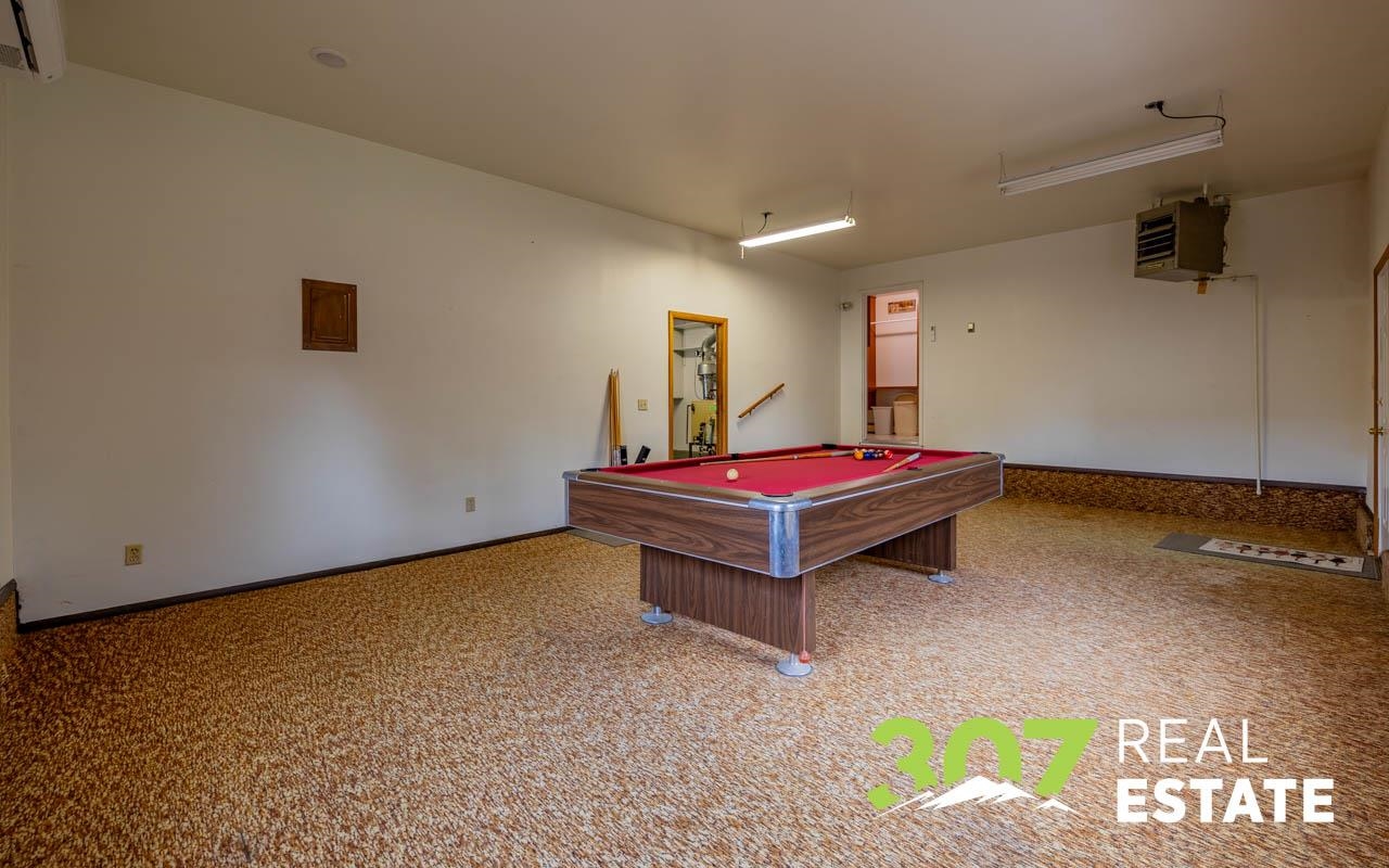 Enjoy the Wyoming views and room to roam on this versatile 4 acre Powell property. The home offers a comfortable layout with 3 bedrooms, 2 bathrooms, including a bath with a walk-in jetted tub and there is an efficient central kitchen with a breakfast bar. A designated dining area flows easily into both the living room and family room, where a beautiful rock fireplace crafted with rocks gathered from the surrounding area creates a striking focal point. A separate recreational room with a pool table adds to the generous interior spaces. The extra-large heated two-car garage provides exceptional convenience. Outside, a second heated detached garage features two additional stalls, a hobby/workroom area, and off the back there is a walk-in cooler and space designed for processing harvested game or other uses. Off the rear of the home, a freshly re-stained deck leads to a large 17’ × 25’ above-ground swimming pool; a nearby shed houses the pool equipment. The property is thoughtfully laid out to offer privacy, with a huge amount of trees and shrubs throughout. A large garden space for the green thumb. Two fenced open pasture areas are ideal for animals and include two small loafing sheds. Additional features include a storage area for hay or firewood, a separate 128 sq. ft. storage building, and a dog kennel. There are numerous improvements and extras across this property, ask for the full list available to serious buyers.