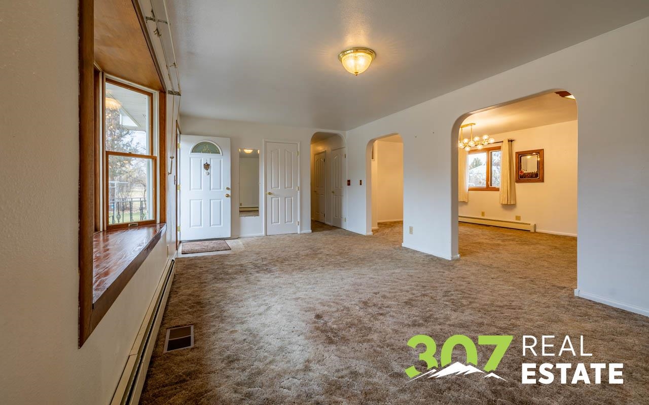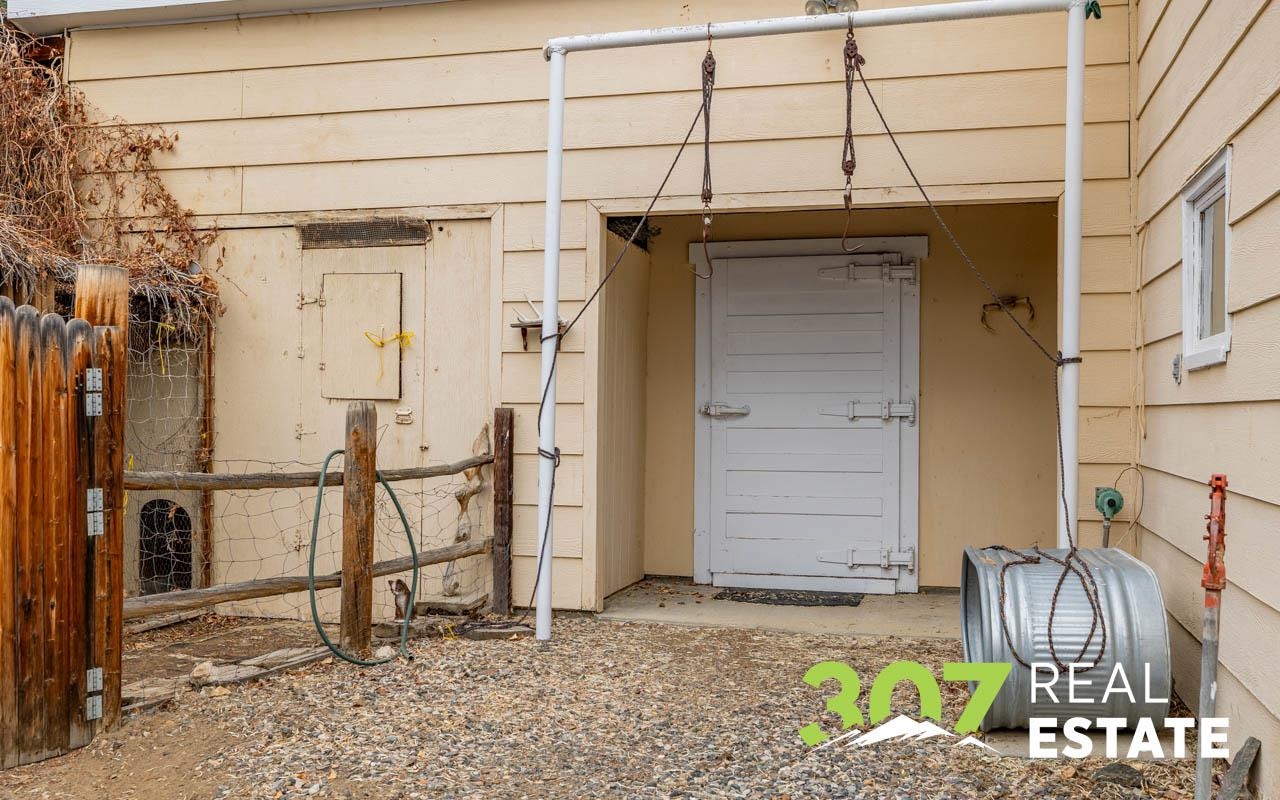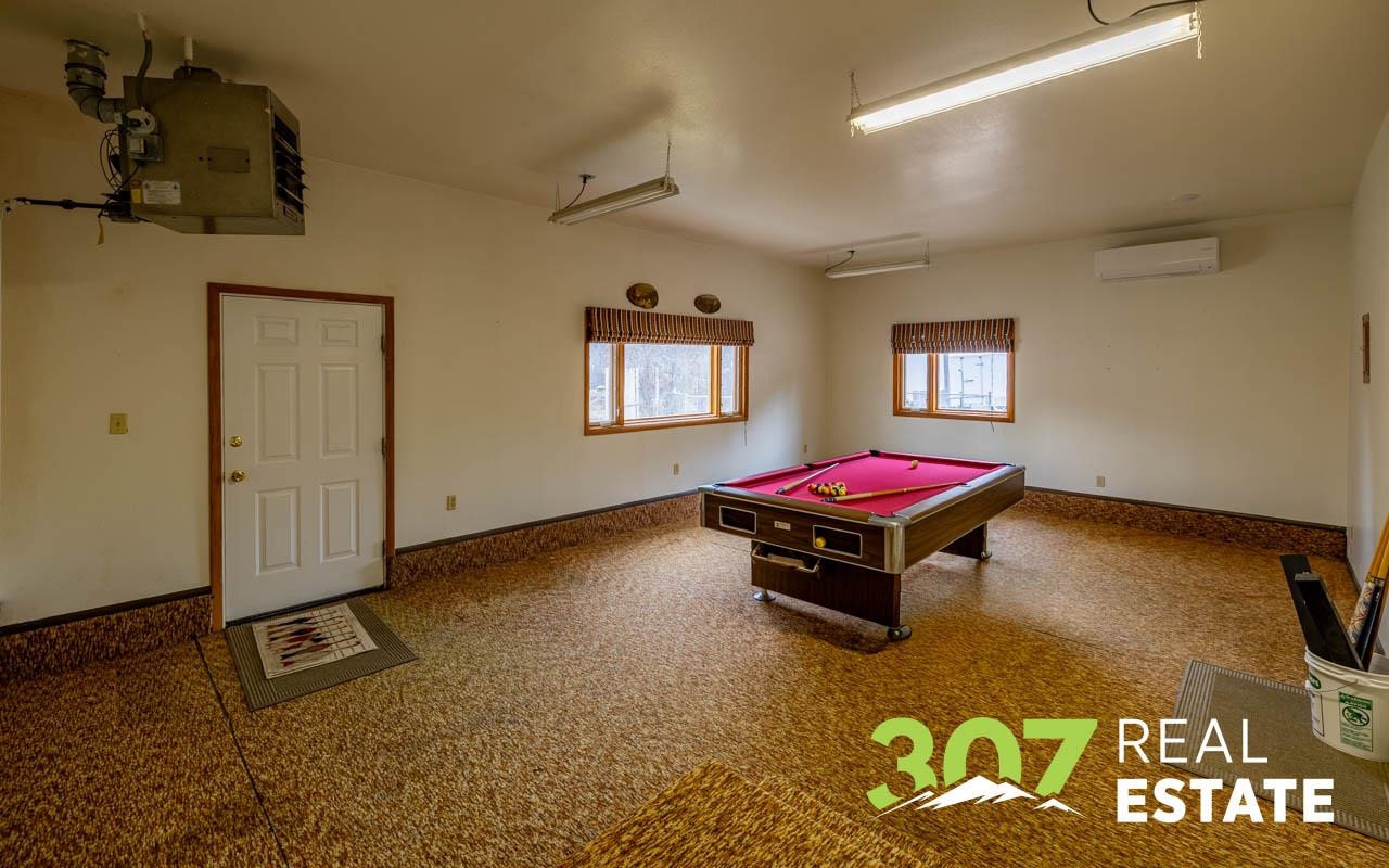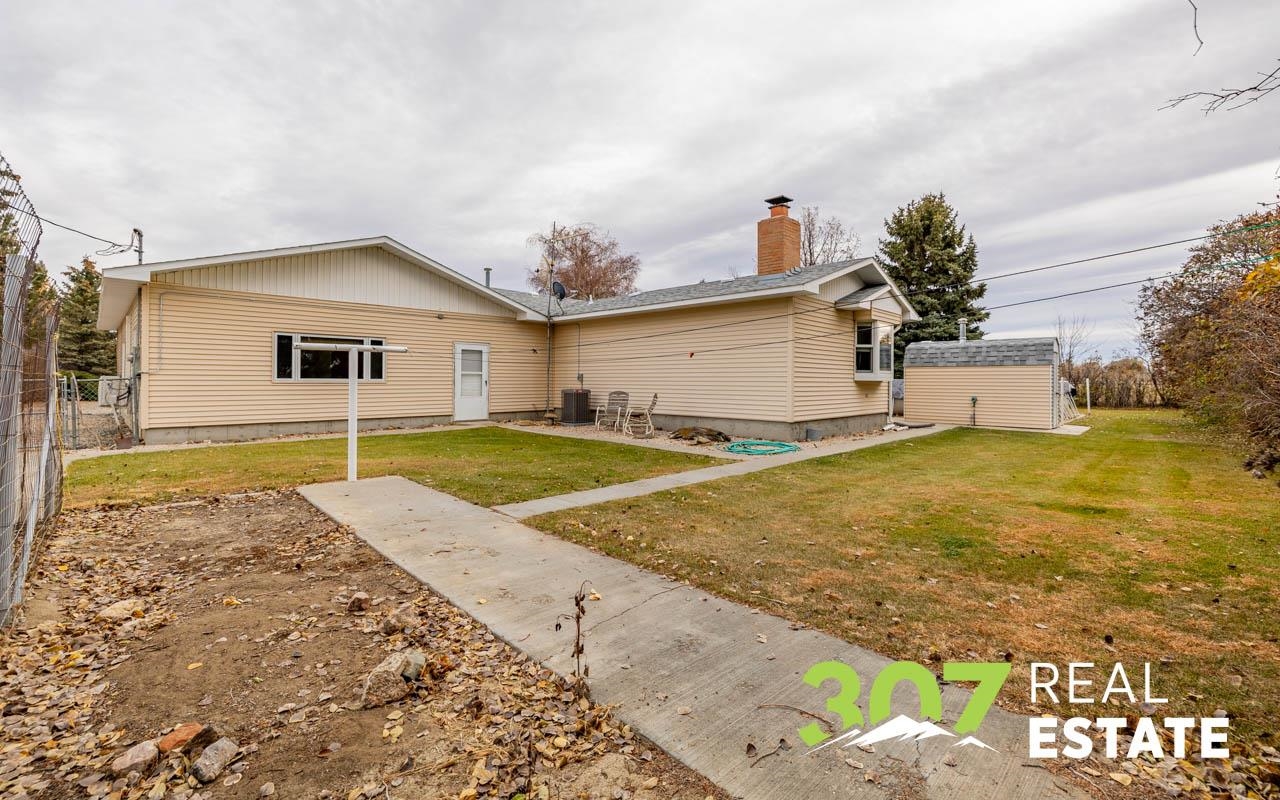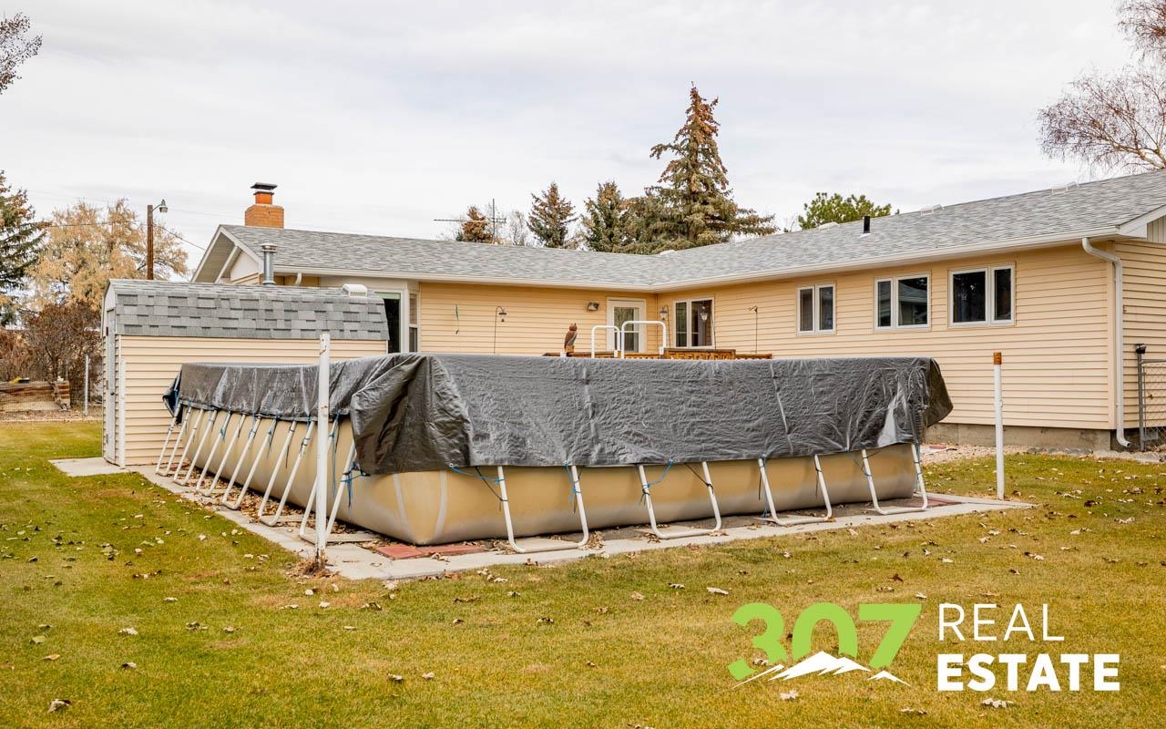 Enjoy the Wyoming views and room to roam on this versatile 4 acre Powell property. The home offers a comfortable layout with 3 bedrooms, 2 bathrooms, including a bath with a walk-in jetted tub and there is an efficient central kitchen with a breakfast bar. A designated dining area flows easily into both the living room and family room, where a beautiful rock fireplace crafted with rocks gathered from the surrounding area creates a striking focal point. A separate recreational room with a pool table adds to the generous interior spaces. The extra-large heated two-car garage provides exceptional convenience. Outside, a second heated detached garage features two additional stalls, a hobby/workroom area, and off the back there is a walk-in cooler and space designed for processing harvested game or other uses. Off the rear of the home, a freshly re-stained deck leads to a large 17’ × 25’ above-ground swimming pool; a nearby shed houses the pool equipment. The property is thoughtfully laid out to offer privacy, with a huge amount of trees and shrubs throughout. A large garden space for the green thumb. Two fenced open pasture areas are ideal for animals and include two small loafing sheds. Additional features include a storage area for hay or firewood, a separate 128 sq. ft. storage building, and a dog kennel. There are numerous improvements and extras across this property, ask for the full list available to serious buyers.
