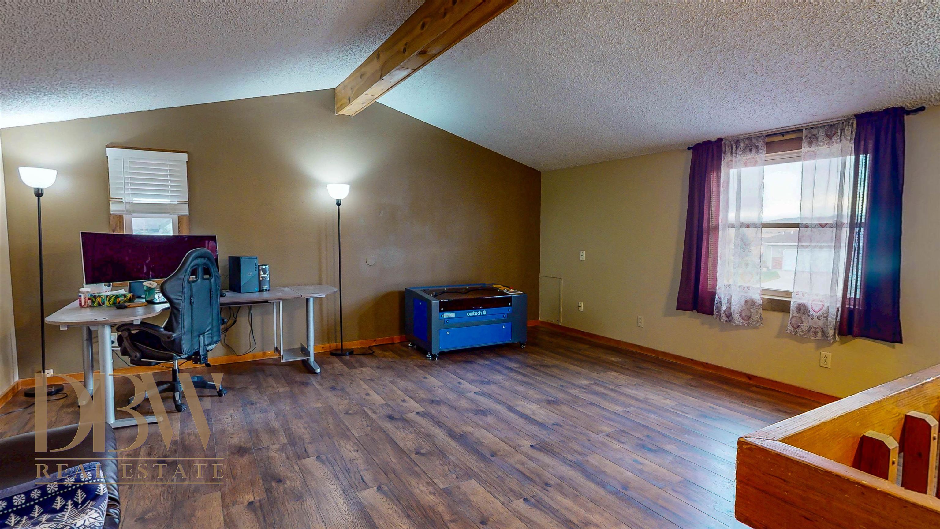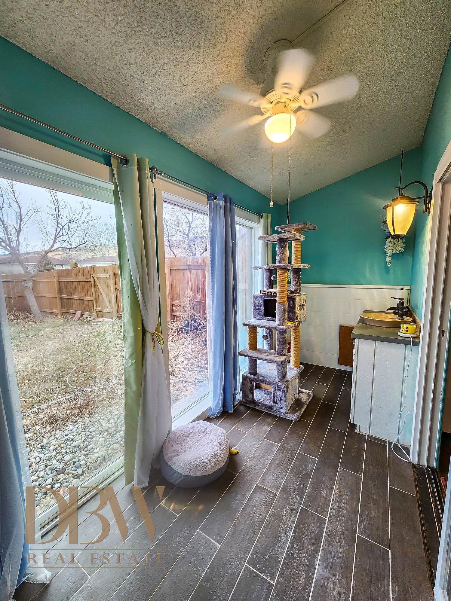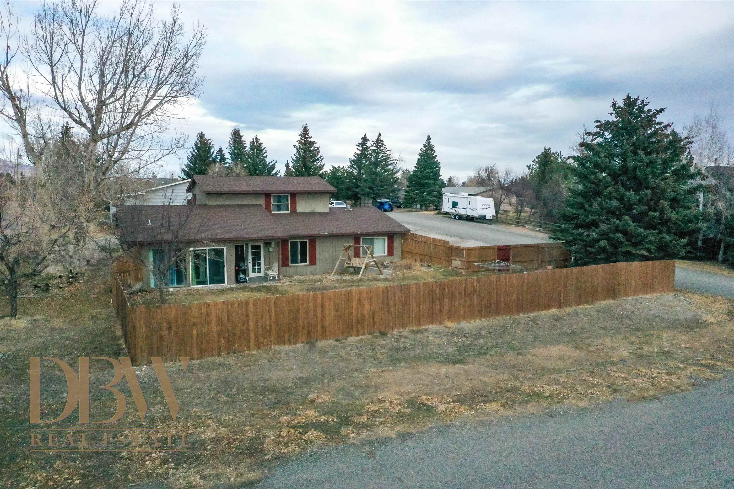 Welcome to this spacious 3-bedroom, 2-bath low-maintenance home located in a desirable neighborhood just a short drive from downtown Cody. Featuring an open floor plan with vaulted ceilings, this home offers just over 2,100 square feet of comfortable living space. Enjoy a private loft with stunning mountain views that is perfect for movie or game nights, a cozy fireplace, and abundant natural light through windows overlooking the sunroom and fully fenced backyard. Additional highlights include an attached two-car garage, a concrete RV parking pad, mature trees, and thoughtful outdoor spaces perfect for relaxing or entertaining.