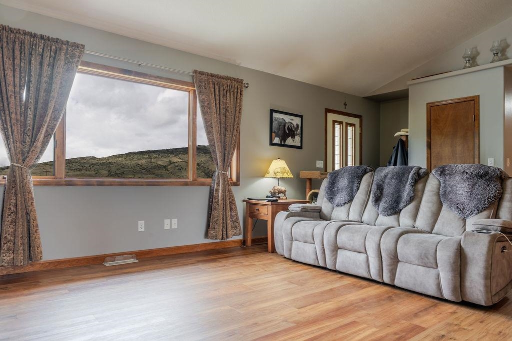 Pride of ownership will introduce you to this comfortable and spacious home. Effective floor planning and well thought out spaces make this home feel even larger than its already impressive square footage. Ample storage in and around the home. A great place to have animals with plenty of outdoor space and water. Loop driveway allows for easy management of trailers or extra vehicles. Ride your horse across the street to the Boot and Bottle Club. One mile to everything you need in town! View the sunrise while having coffee and watching horses play in the pasture. Beautiful mountain sunset views year round from the comfort and warmth of your living room. The road is a priority plow road for schools, city and county for worry free winter access.