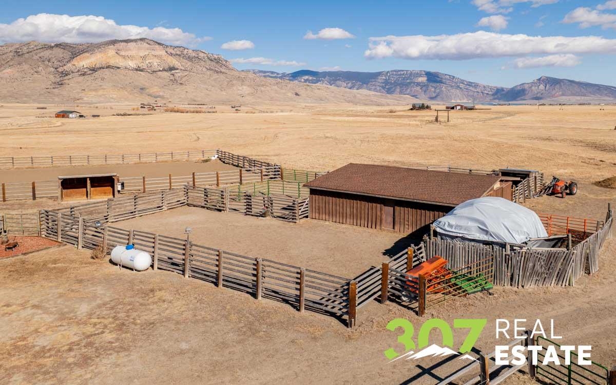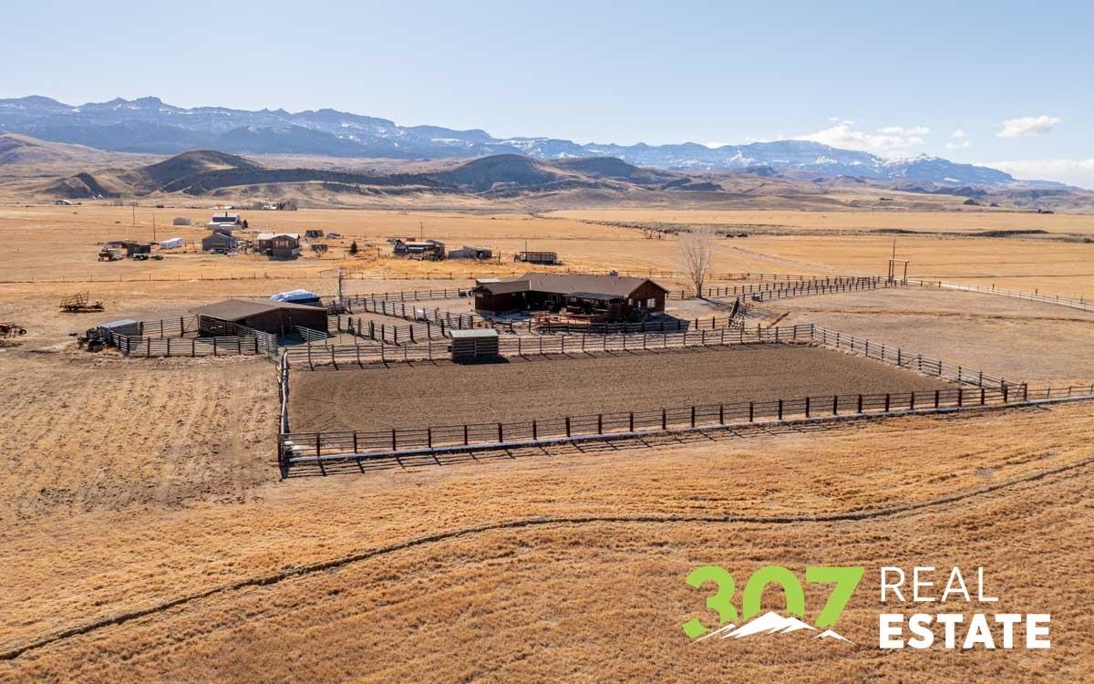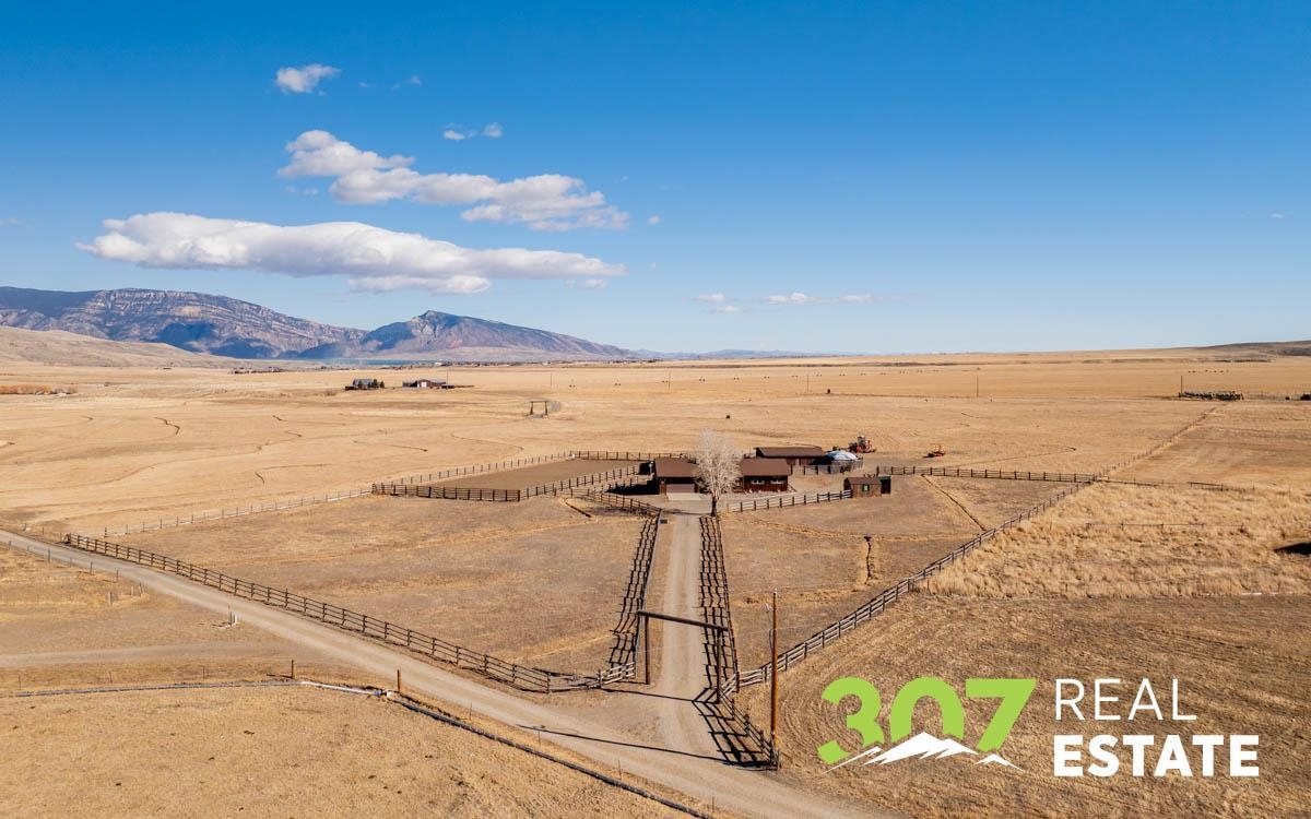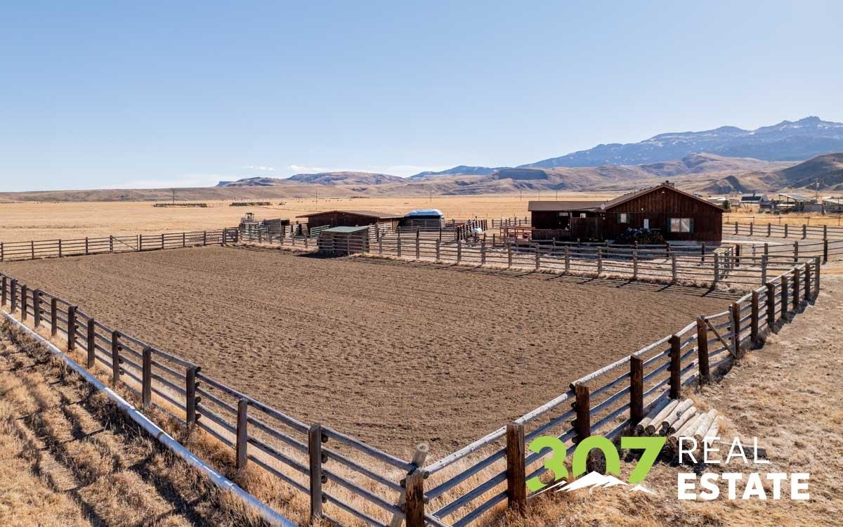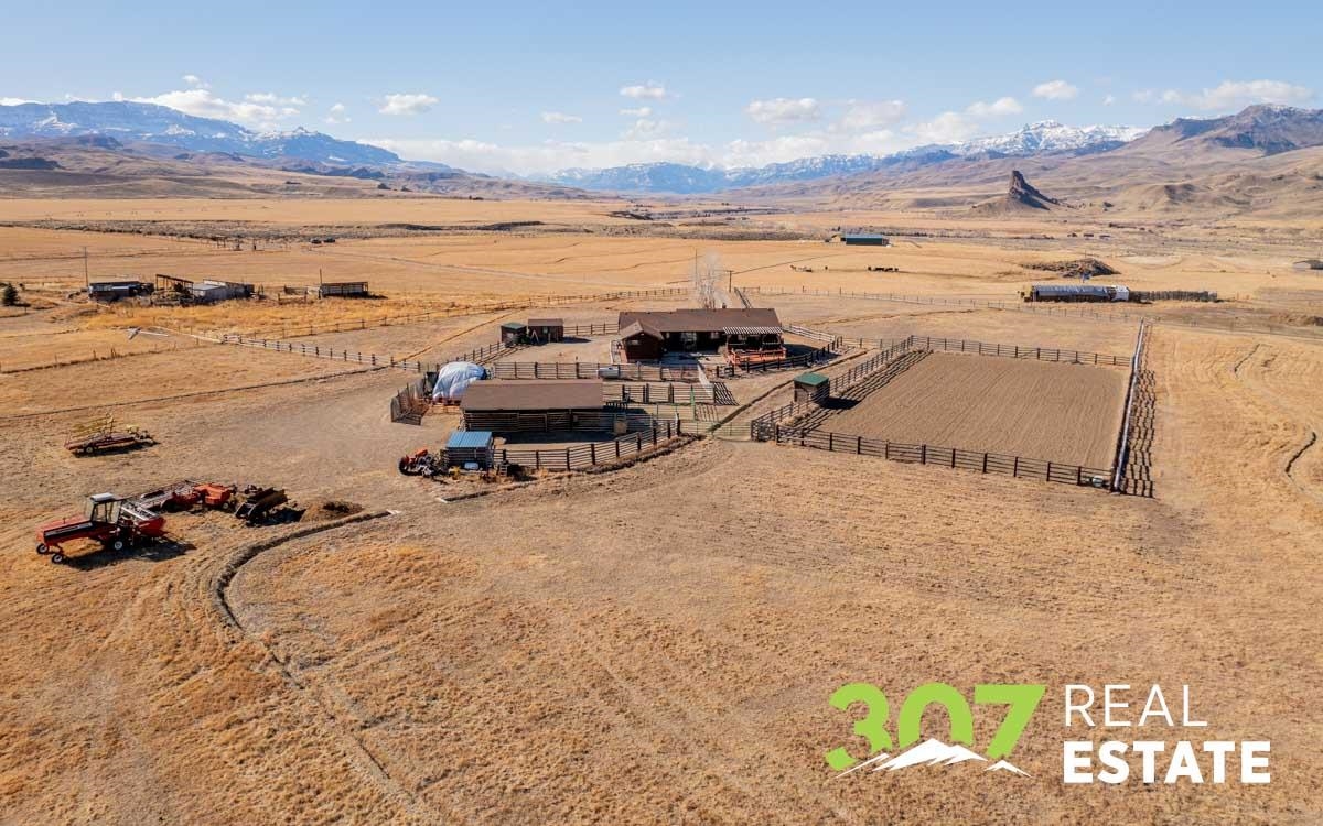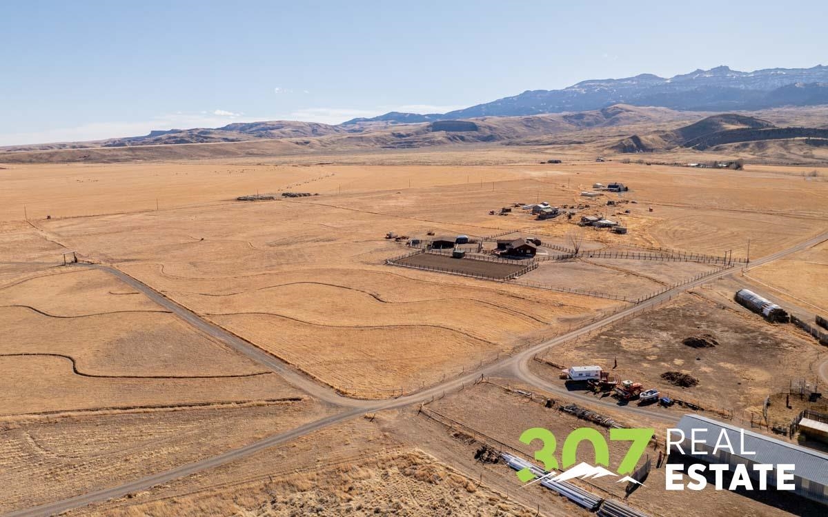 Commanding Southfork views and timeless Wyoming beauty define this exceptional 20+ acre irrigated estate. Perfectly positioned atop a scenic plateau, the ranch-style residence captures breathtaking vistas of Carter Mountain and Castle Rock from its front windows, offering a rare sense of privacy, serenity, and grandeur. The thoughtfully designed home features 3 bedrooms and 3 baths, highlighted by an inviting living room with wood-burning fireplace, a charming country kitchen with adjoining laundry, and seamless access to a multi-level deck ideal for elegant outdoor entertaining or quiet sunset evenings. A private primary suite addition provides a peaceful retreat, while the finished lower level offers a spacious family room, full bath, propane stove, generous storage, and guest accommodations. Equestrian enthusiasts will appreciate the professionally suited horse facilities, including a riding arena, barn with tack room, multiple corrals, and additional storage building — all set within beautifully irrigated acreage. An extraordinary offering where refined country living, sweeping landscapes, and Western lifestyle converge.
