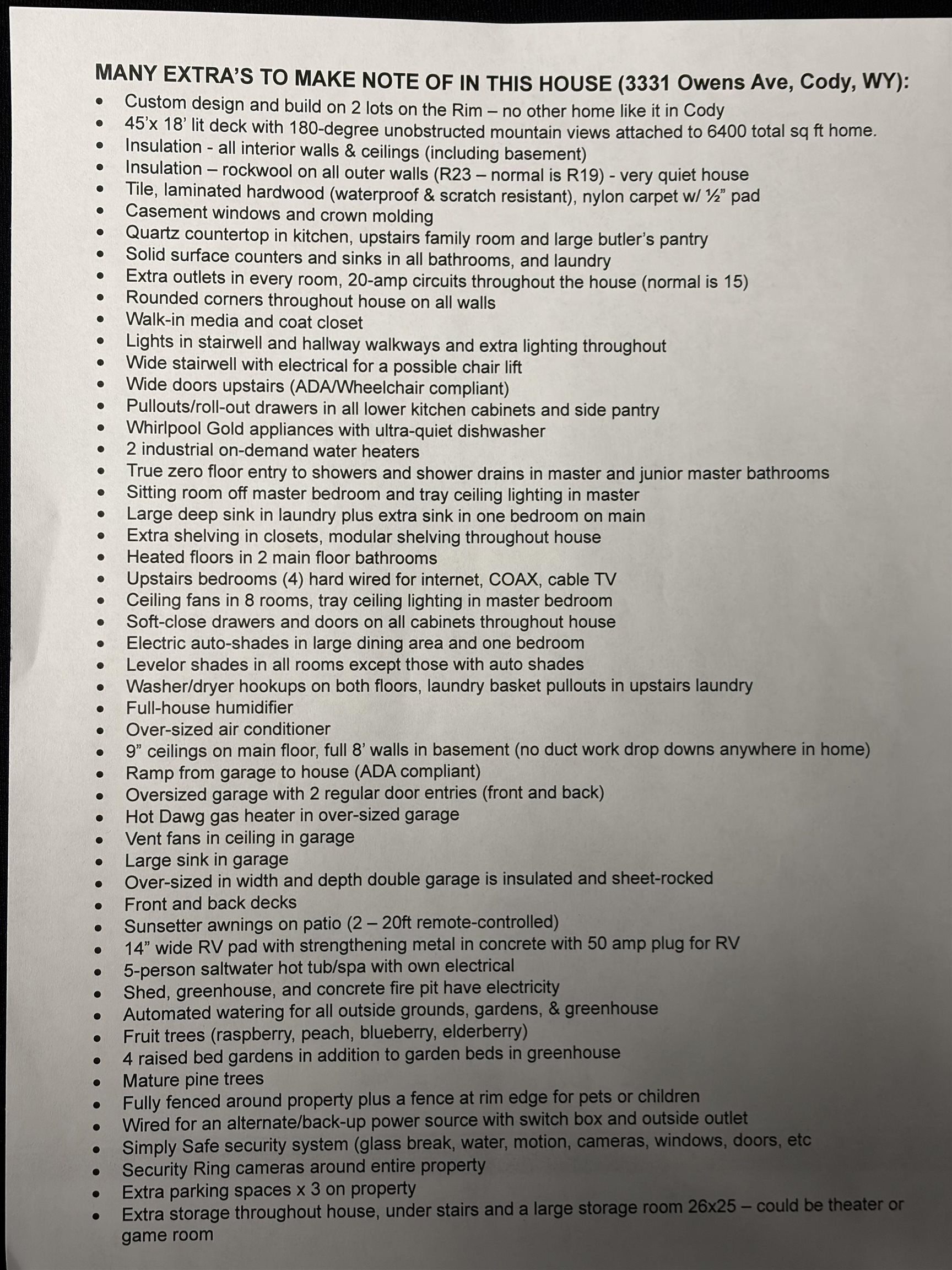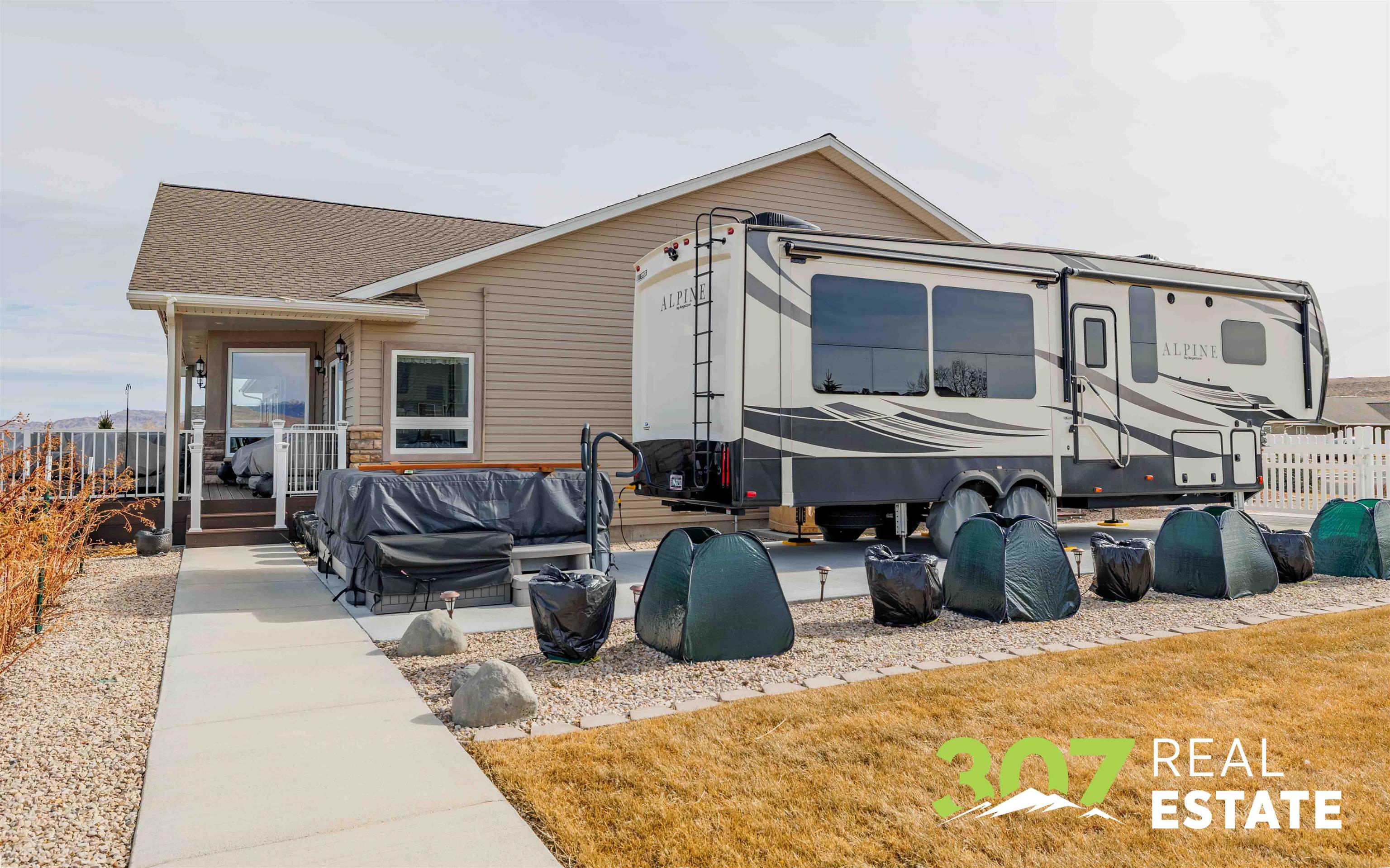 Rare double-rim lot with unmatched views overlooking Cody. This exceptional 7-bedroom, 4-bathroom home offers space, flexibility, and amenities designed for both everyday comfort and memorable entertaining. The main level features a spacious primary suite complete with a walk-through closet leading directly to the laundry area and a beautifully appointed walk-in shower. Three additional bedrooms and two more bathrooms—including a full bath and an oversized ¾ bath—provide generous accommodations for owners and guests. An open-concept living room, kitchen, and dining area flow seamlessly onto a large outdoor balcony, creating the perfect setting to gather, entertain, or simply relax while taking in the sweeping views. The finished basement expands the living space with a second kitchenette, a large family room, two additional bedrooms, a full bathroom, and a dedicated workshop area—ideal for hobbies or projects. You’ll also appreciate the 700± sq. ft. heated and lighted unfinished storage space, offering incredible flexibility for future expansion or organized storage. Outside, the double lot truly shines. Enjoy evenings in the hot tub with panoramic views, take advantage of RV and camper parking, and explore your gardening ambitions with raised garden beds and a greenhouse already in place. With countless thoughtful features and upgrades throughout, this remarkable property must be experienced in person. Ask for the detailed feature sheet when you schedule your private tour.