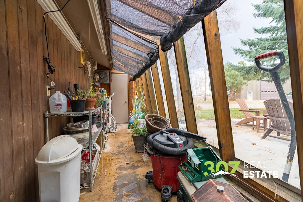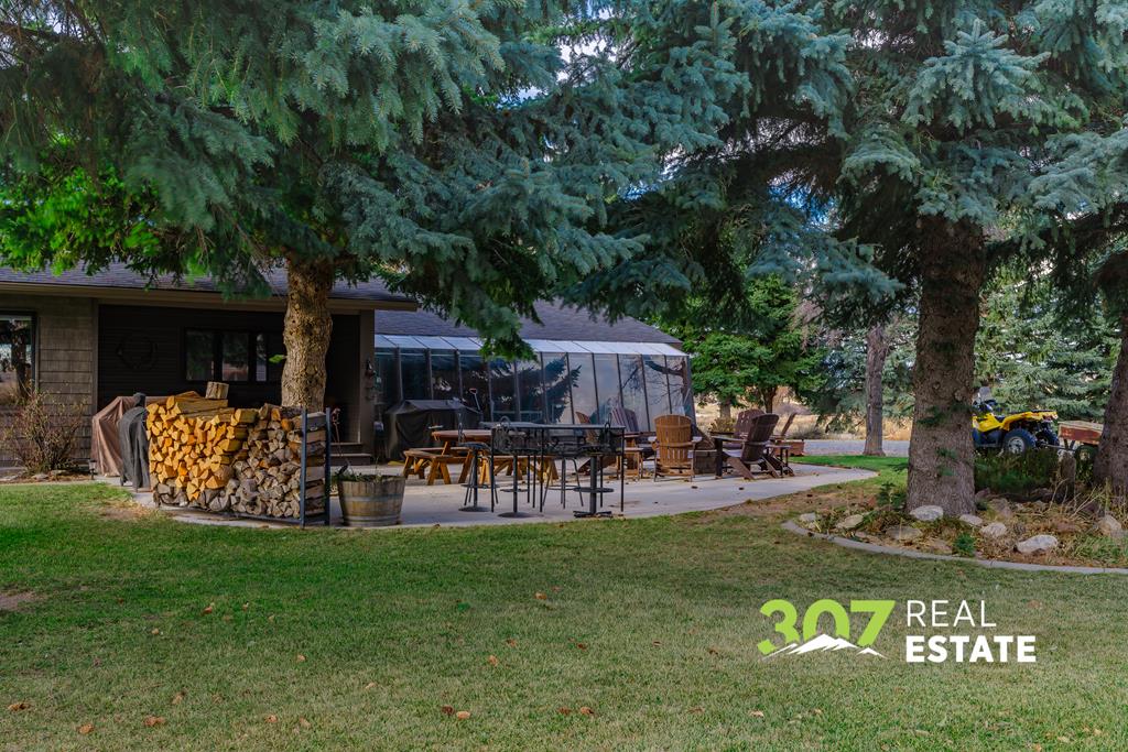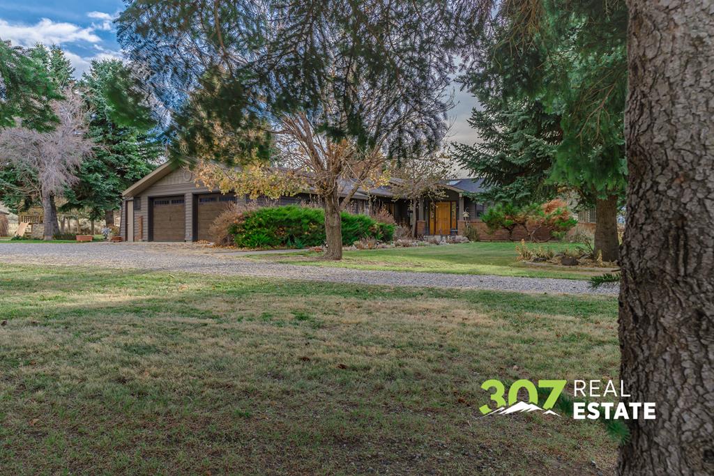 Located only 6 miles from downtown Cody and 3 miles from the airport, this exceptional property offers the perfect balance of convenience and seclusion. Enjoy quick access to town amenities and travel while still embracing the privacy, space, and breathtaking views that define the Wyoming dream. This rare property boasts end of road privacy and a tree lined circular driveway. With no covenants, the possibilities are endless—giving you the freedom to live, expand, or customize. The outbuildings set this property apart, featuring an approx. 30x48 shop, a large barn, and a unique greenhouse attached to the garage. With a fenced yard and expansive pasture space, this property is ideal for horse lovers and animal enthusiasts. The extensive patio area—with its built-in brick fire pit—is perfect for entertaining family and friends under Wyoming’s wide-open skies. Inside, the home exudes character and charm with unique interior brick accents and a custom-built library. The kitchen provides plenty of space to prepare meals and entertain guests. Stay warm during the winter months with two grand wood fireplaces in the living room and master bedroom. The basement bedroom has ample storage, a full bathroom, and a wood stove. The master bedroom is a serene haven boasting an ensuite bathroom and a large built in desk. Natural light floods in from skylights and a wall of windows, emphasizing the luxury and privacy of the space. Beyond the iron gate, your Wyoming dream awaits. Agent Related.