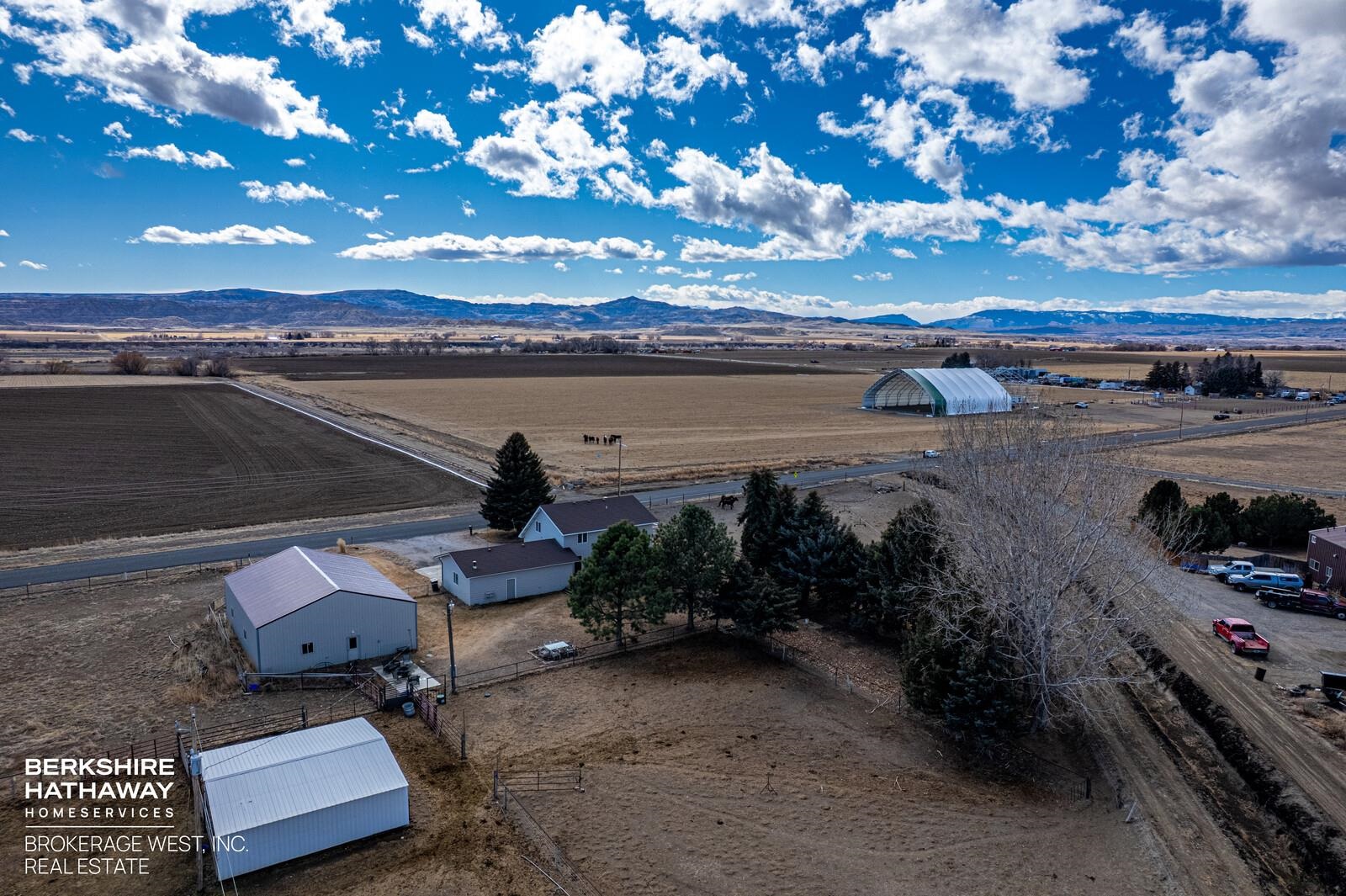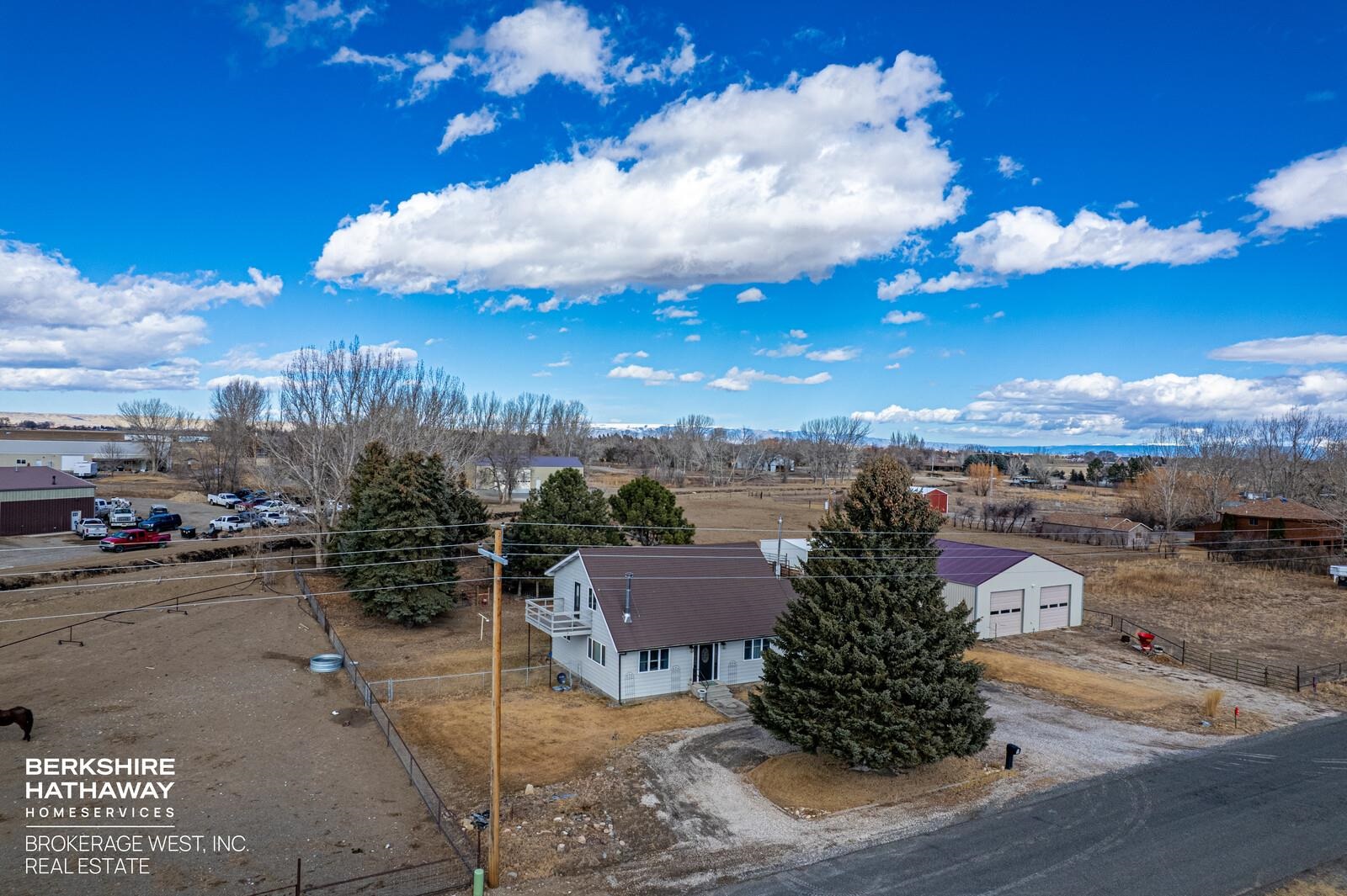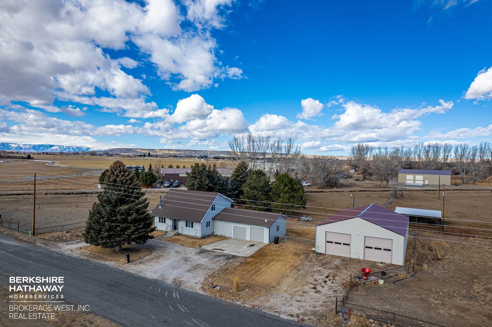 Nice affordable horse property conveniently located between Cody and Powell. Relax in the large private backyard of this cute 3 bedroom 2 bath home. Home has attached 2 car garage and a deck off of the main upstairs bedroom with open views to the west. Upstairs bathroom has soaking tub and separate walk-in shower. Large deck off of eat-in kitchen. Property is 4.06 acres, and is mostly irrigated. Fenced and cross-fenced for livestock, with a loafing shed and tack room. Most fencing is no maintenance continuous fence. In addition to everything else, there is also a 2000 sq. ft. shop for all of your toys or handyman projects