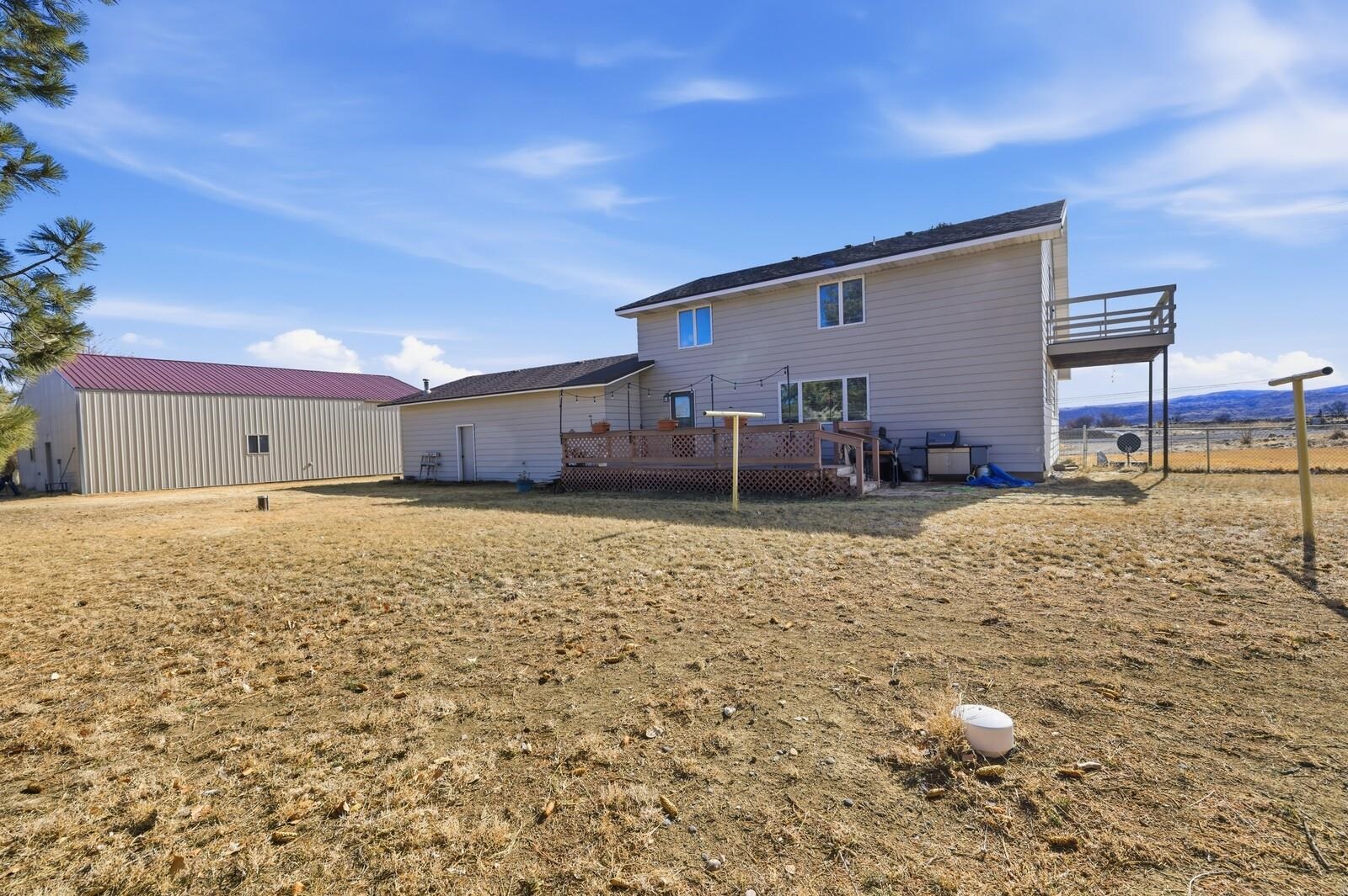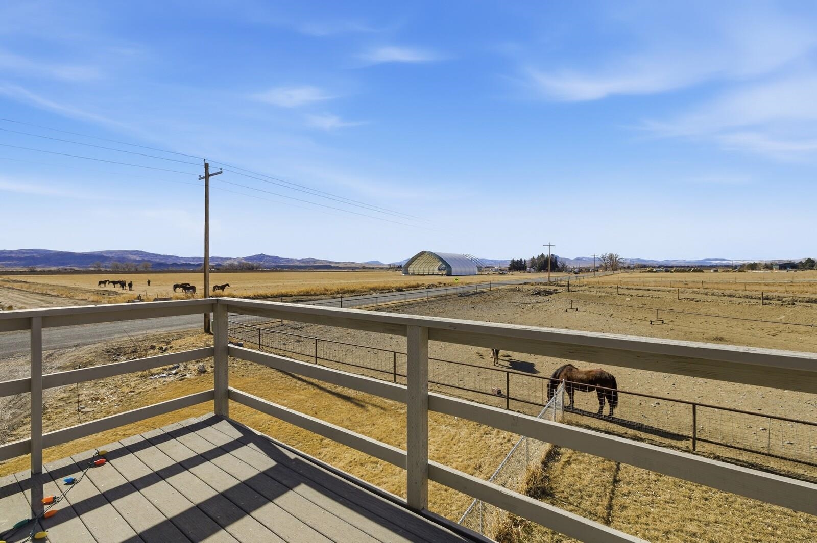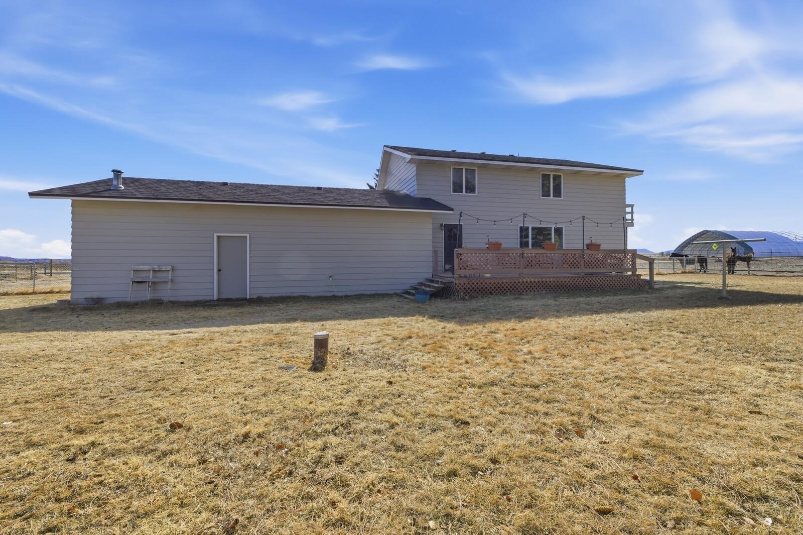 Nice affordable horse property conveniently located between Cody and Powell. Relax in the large private backyard of this cute 3 bedroom 2 bath home. Home has attached 2 car garage and a deck off of the main upstairs bedroom with open views to the west. Upstairs bathroom has soaking tub and separate walk-in shower. Large deck off of eat-in kitchen. Property is 4.06 acres, and is mostly irrigated. Fenced and cross-fenced for livestock, with a loafing shed and tack room. Most fencing is no maintenance continuous fence. In addition to everything else, there is also a 2000 sq. ft. shop for all of your toys or handyman projects