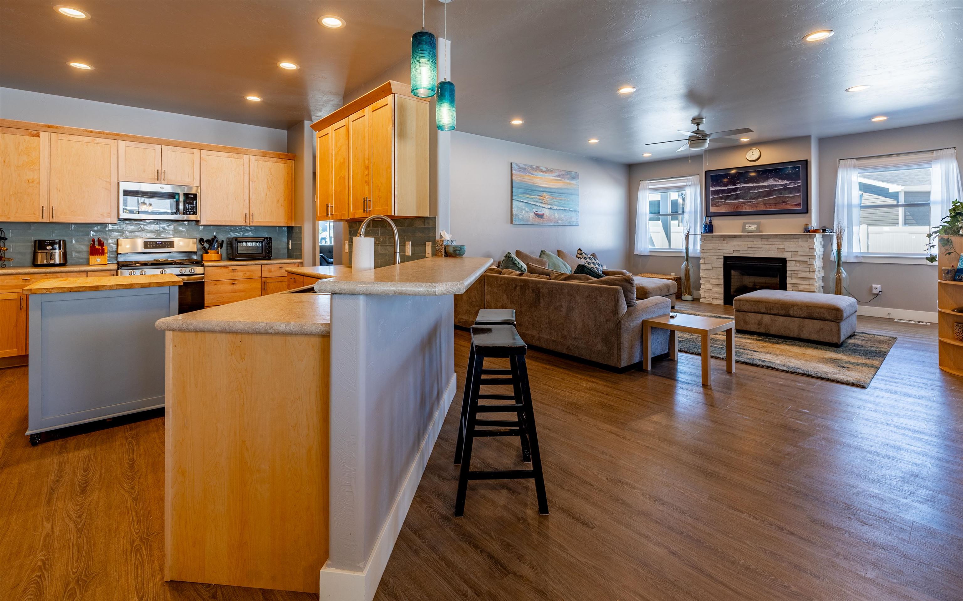 This 4 bedroom 2 bath home is located in a quiet cul de sac on Powell's west end. Built in 2021 it offers 2187 sq. ft. of comfortable living space all on one level with modern finishes throughout. Vaulted ceilings, recessed lighting and ample windows offer a bright and cheerful atmosphere. There's an inviting gas fireplace to warm the cold Wyoming nights. The exterior is designed for minimal maintenance with stone and earth tone siding giving a subtle Southwest feel.