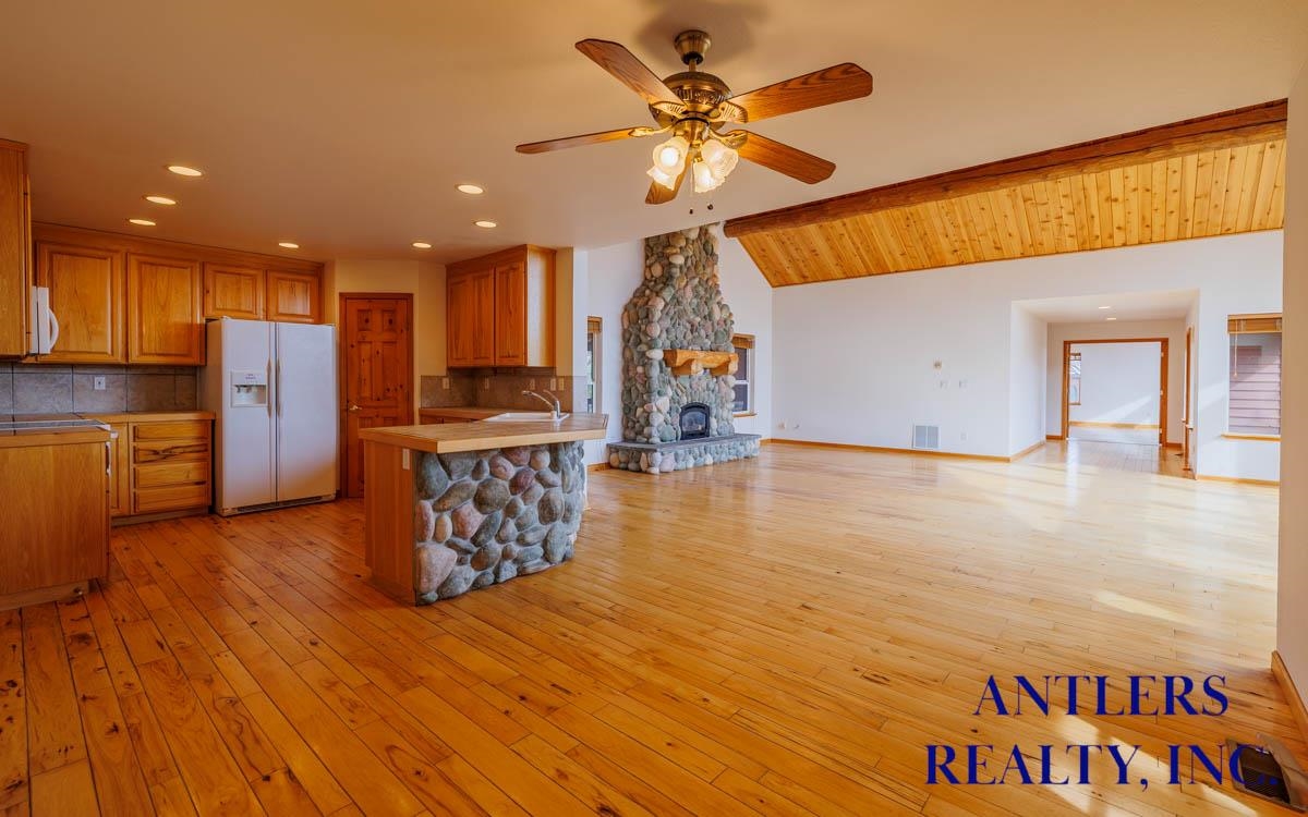 This 3-bedroom, 2-bath home features beautiful wood floors throughout the main living areas, adding warmth, durability, and a timeless finish. A stone fireplace anchors the living room, creating an inviting focal point. The open layout provides functional spaces for everyday living and entertaining, while the kitchen offers ample cabinet and counter space with easy access to the dining and living areas. The primary bedroom includes a private bath and a huge walk-in closet, providing generous storage and a comfortable retreat. Two additional bedrooms offer flexibility for a variety of uses. Outside, the landscaped yard features mature trees and space to enjoy the outdoors. A 3-car garage adds plenty of room for vehicles, storage, or hobbies.