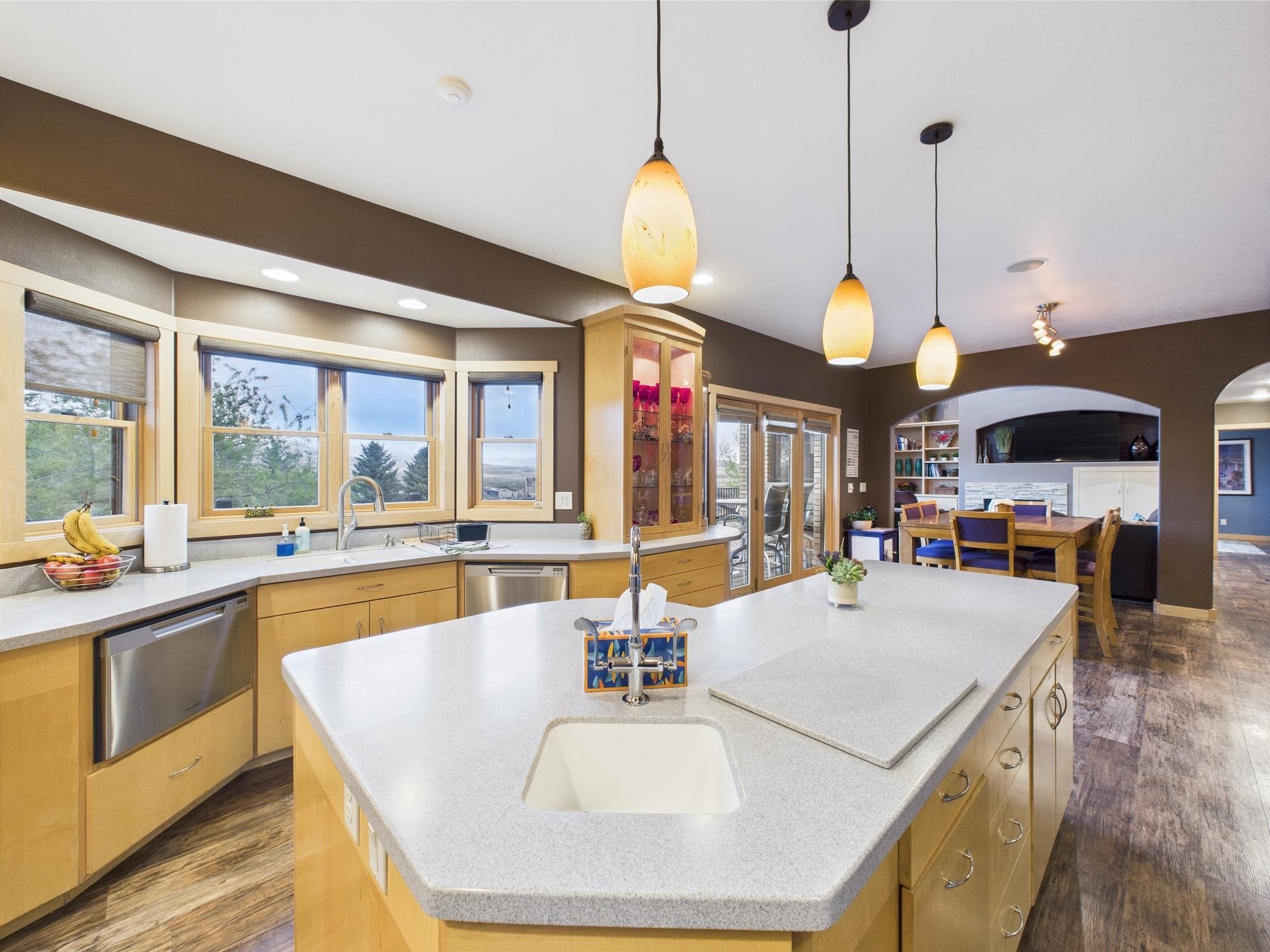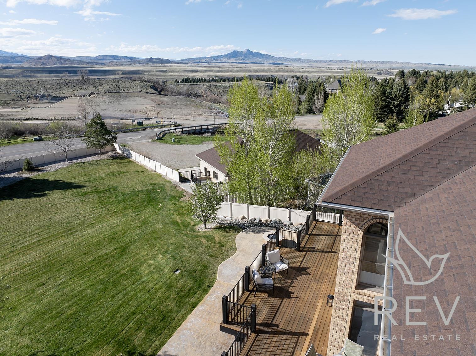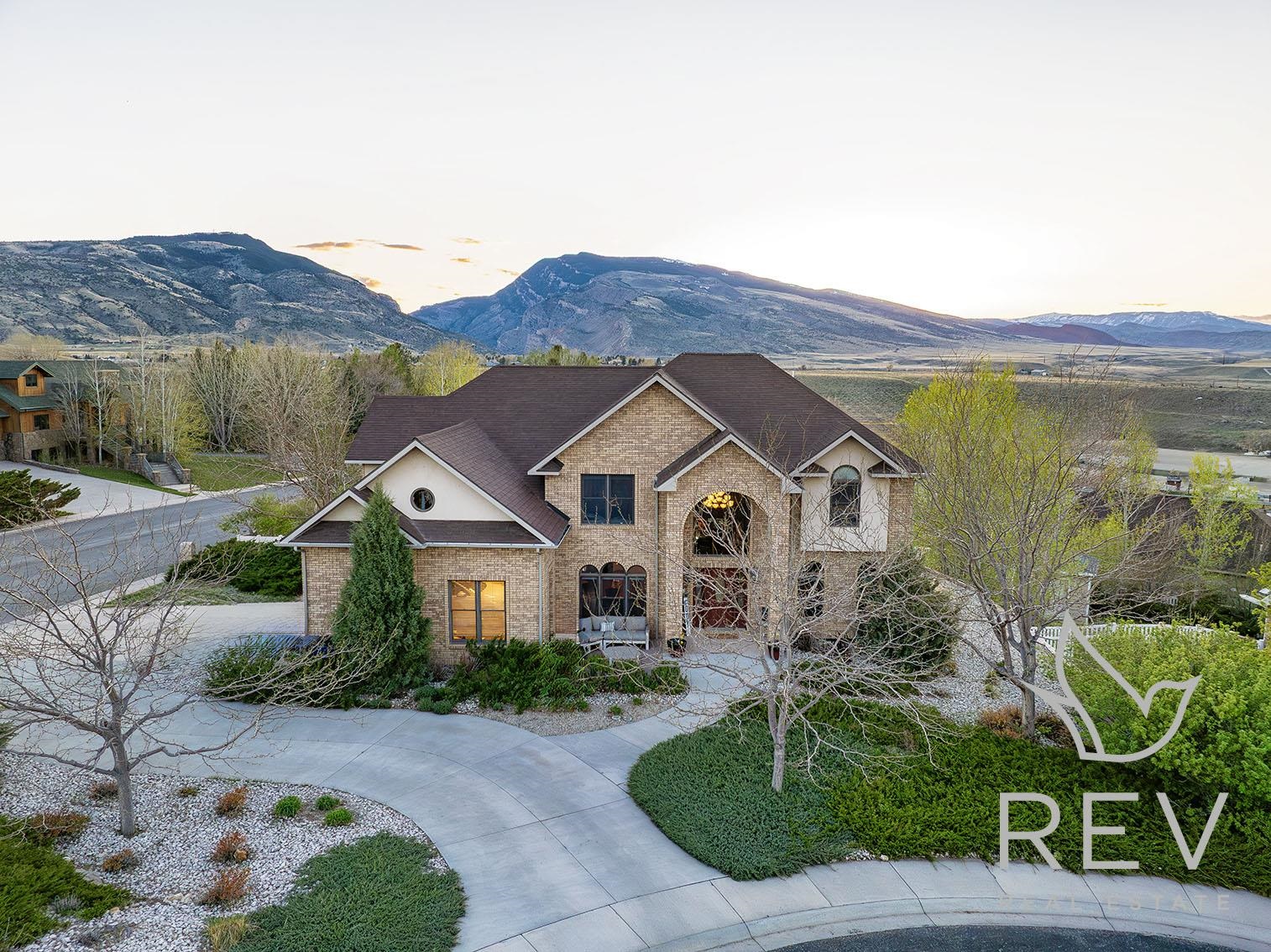 First Time on the Market – Luxury Custom Home with Sweeping Heart Mountain Views Welcome to this exquisite custom-built luxury home, proudly offered for the first time. Situated on 1.39 meticulously landscaped acres across three lots, this one-of-a-kind property offers unmatched craftsmanship, comfort, and panoramic views of Heart Mountain and the Cody countryside. Designed for elegant living and entertaining, the main level features a chef’s kitchen complete with custom cabinetry, a large walk-in pantry, two-drawer dishwasher, extra warming oven, and premium appliances. A spacious deck off the kitchen is ideal for outdoor dining and taking in the breathtaking views. The main floor also includes a formal dining room, a formal sitting room, a cozy living room with gas fireplace, and a versatile bedroom/office, plus a stylish half bath. Upstairs, you’ll find three generously sized bedrooms and two full bathrooms, including a spacious master suite with a serene seating area. The luxurious en suite bath boasts a jetted soaking tub, separate shower, custom double vanity, and an expansive walk-in closet with built-in dresser and shelving. The walk-out lower level expands your living space with a large family room and wet bar with minifridge, a game/media room, a full bathroom, and a large bedroom currently used as a fitness room. Step outside to the stamped concrete patio featuring a built-in gas fire pit and hot tub—perfect for relaxing or entertaining under the Wyoming sky.