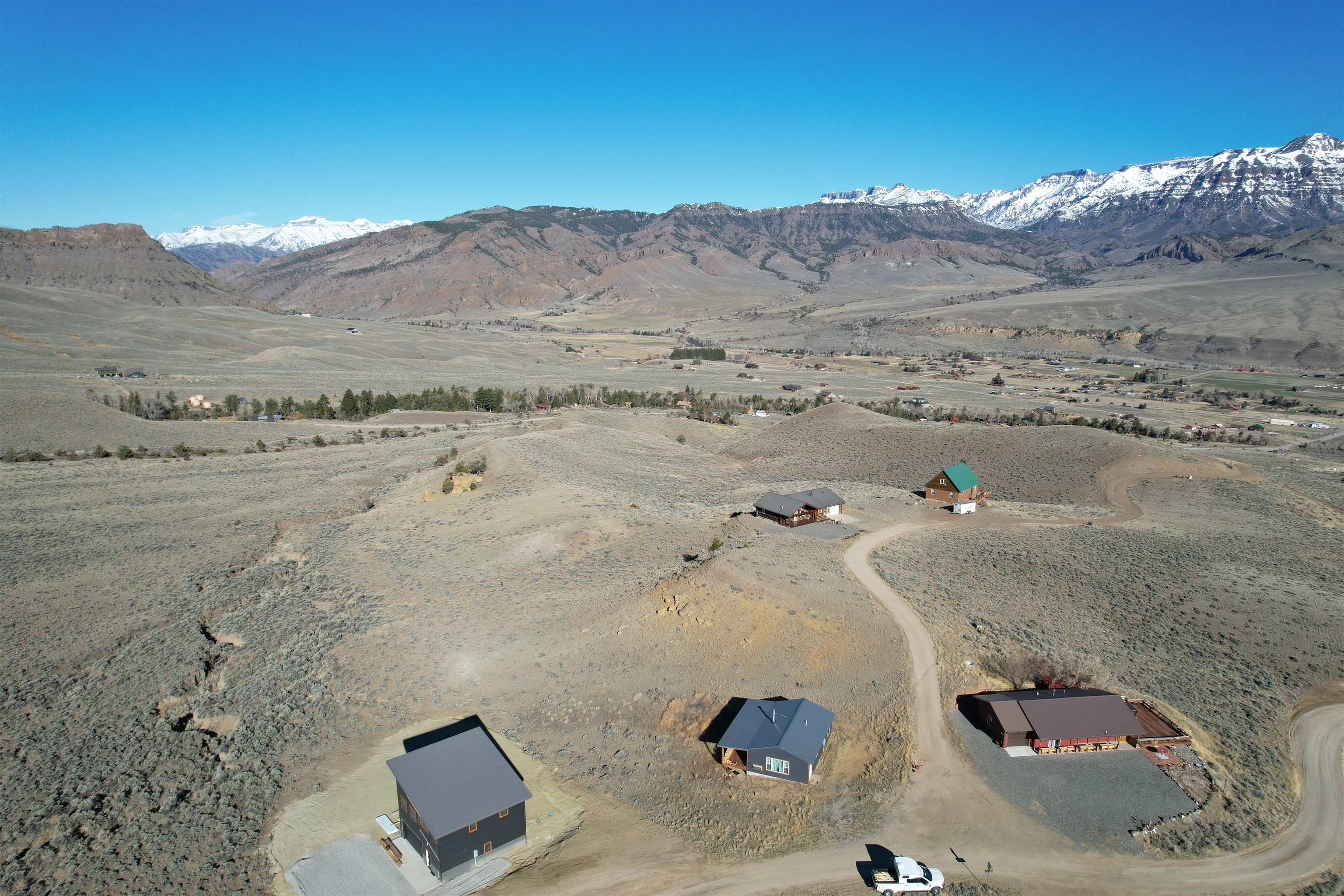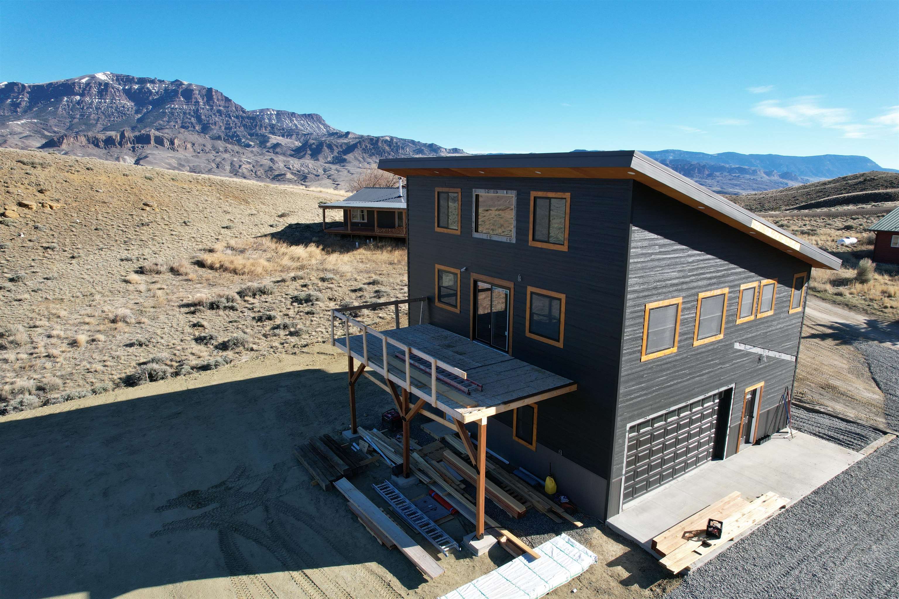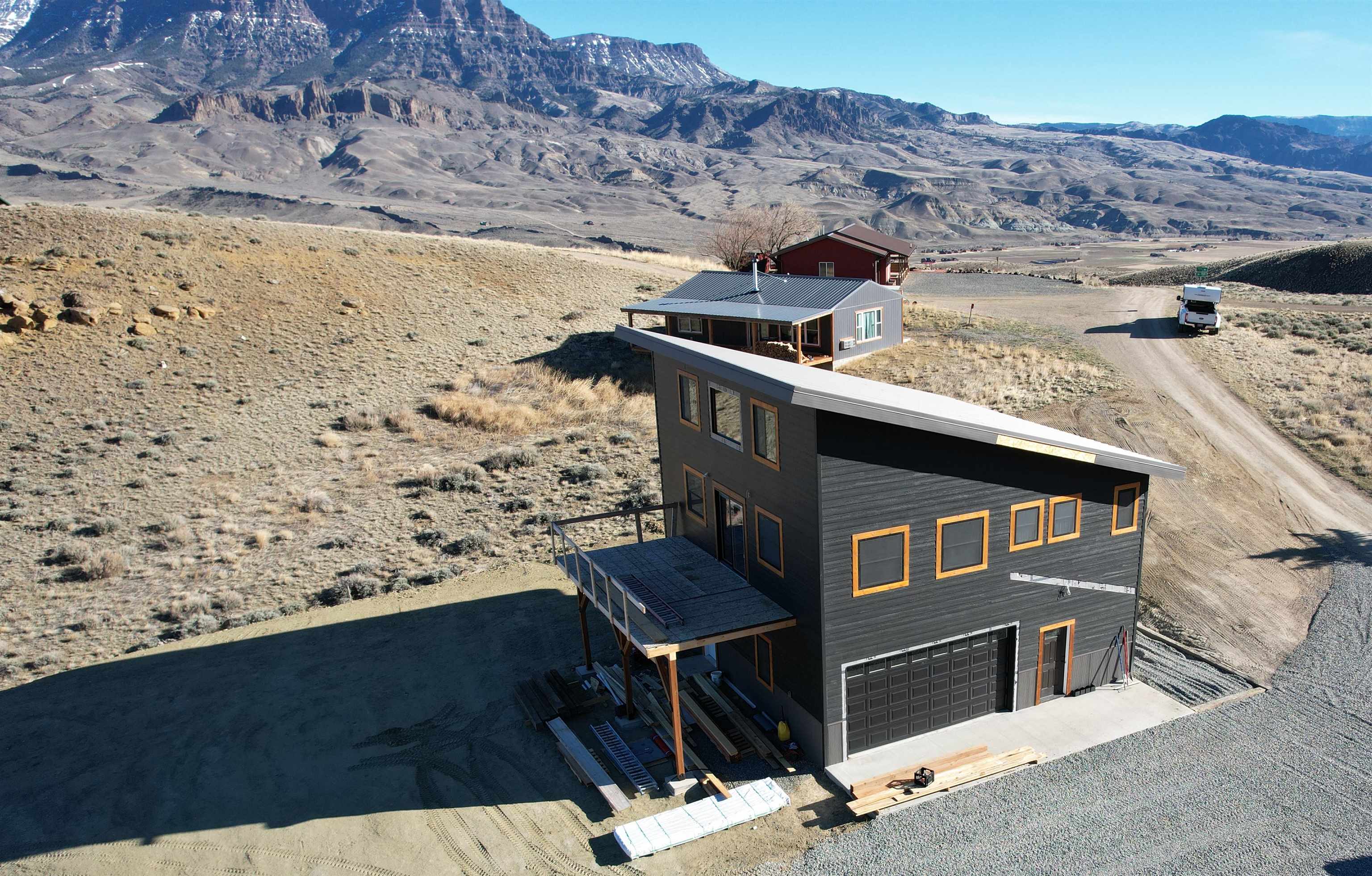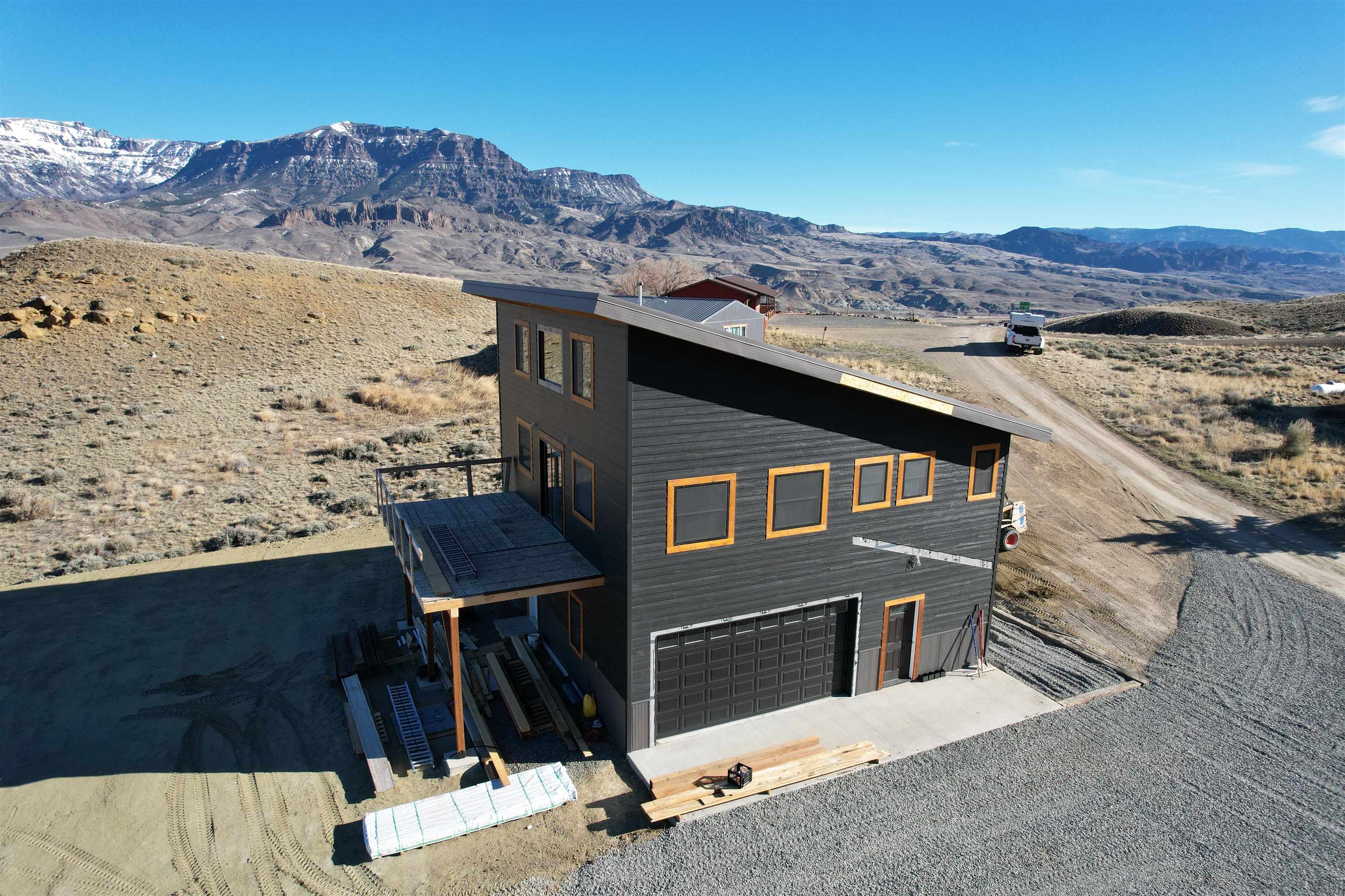Newly constructed modern mountain home with majestic mountain views of the Northfork Valley. Large windows throughout the home to enjoy the expansive landscape. This custom home has tongue and groove walls, 6 panel wood doors, 18 foot ceilings in the great room, 10 foot ceiling in the bedrooms, The siding is LP Smart Sidiing and steel wainscoting. The modern kitchen has quartz countertops, with a breakfast bar. Enjoy the pellet stove on the chilly winter evenings... quiet, peaceful, relaxing. There is a large deck to BBQ with friends and take in the scenery. Located 30 minutes from Yellowstone National Park and approx 25 minutes from Cody, WY for all your shopping, dining, and entertainment. The Shoshone River is 10 minutes away for blue-ribbon flyfishing. Public land in all directions for hiking, biking, camping, and enjoying the out of doors. This new home is a must see, spacious, quality built. Completion date approx. June 5.