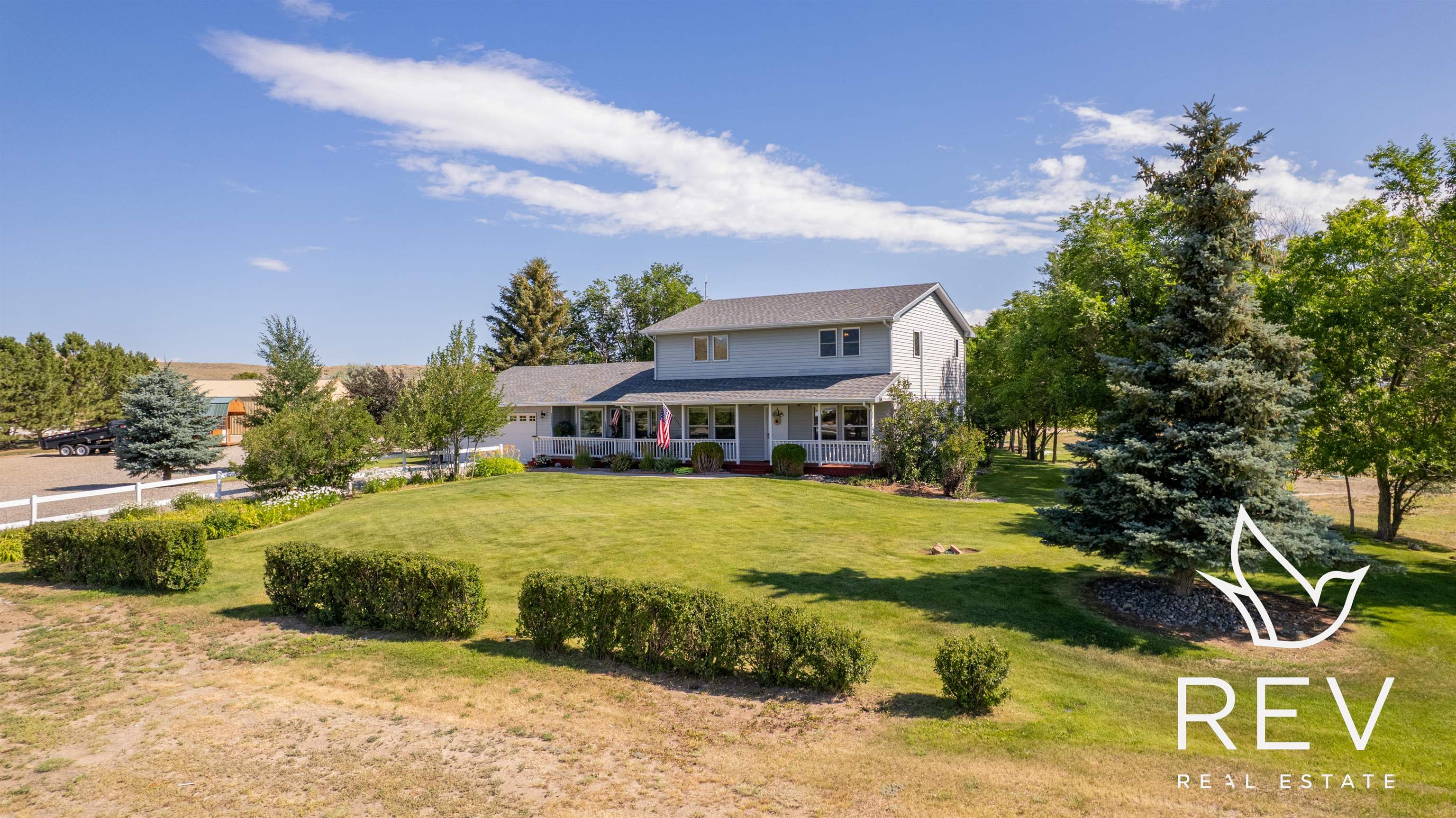 Set on 3.21 acres, this beautifully maintained property offers a balance of privacy and convenience. Mature pine and fruit trees create a serene, park-like setting, perfect for enjoying the outdoors in every season. Inside, the spacious layout features 6 bedrooms and 4 bathrooms, along with two versatile bonus rooms—ideal for a home office, formal dining space, or hobby room. Granite countertops, a newer roof, and numerous upgrades add both style and peace of mind. The expansive great room in the basement, complete with a kitchenette, provides an excellent space for entertaining or accommodating guests. Take in stunning views of Carter Mountain from the covered front porch, the perfect spot to unwind. The property also includes a 1,200 sq ft heated shop, offering ample space for storage, projects, or additional parking. An equipment shed provides room for tractors or can easily be adapted for horses or livestock. Ideal country living with the convenience of town just minutes away.