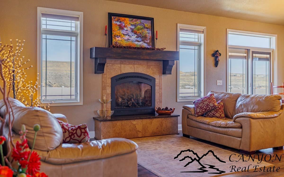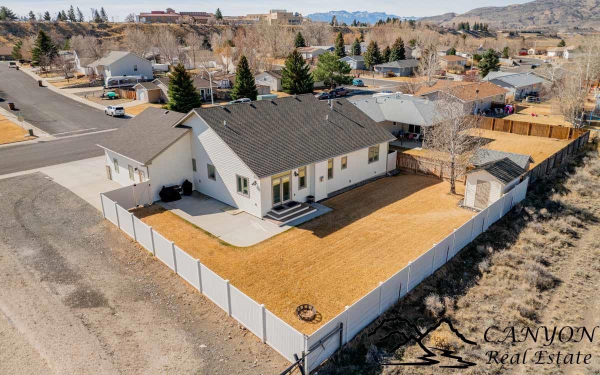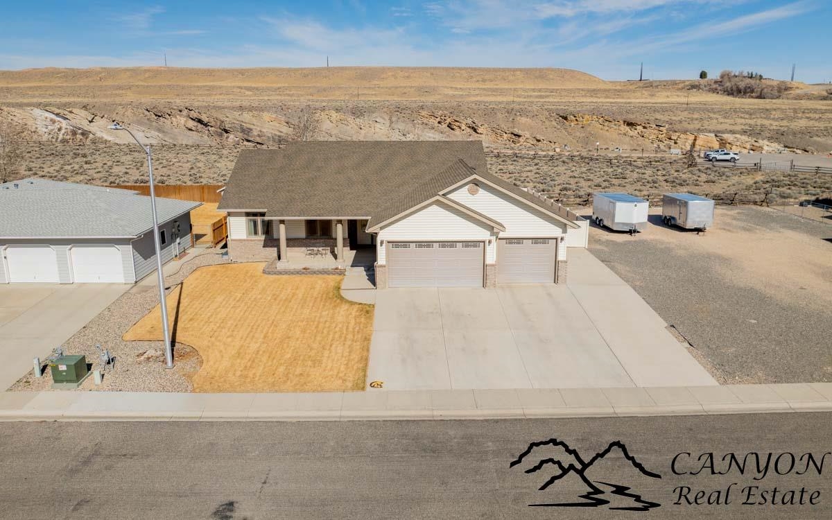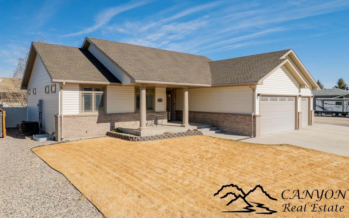 This exceptional 3,366 sq ft home offers spacious, comfortable living in a fantastic location—the property is a short stroll to the Paul Stock Trail, where miles of scenic walking paths lead to outstanding public river access along the Shoshone River, boasting premier trout fishing. Enjoy the rare feeling of owning riverfront acreage without the maintenance, while privately owned land behind the property preserves open space and views. Inside, the home features vaulted ceilings, 5 spacious bedrooms, and 3 full bathrooms, highlighted by warm, upscale finishes throughout. Luxury vinyl flooring and a striking stone gas fireplace anchor the inviting main living area, while the thoughtfully designed floorplan creates seamless flow for both everyday living and entertaining. The kitchen is well-appointed with double ovens, generous workspace, and easy connection to the dining and living spaces. The fully finished lower level includes a wet bar and expansive gathering area, ideal for hosting, game nights, or relaxed evenings. Additional highlights consist of a finished 3-car attached garage, RV parking, vinyl fencing, and full city services for convenience and ease of living. This property offers rare access to trails, river recreation, and Wyoming’s outdoor lifestyle right out your back door, matched by a well-maintained home that delivers space, comfort, and everyday functionality. It’s a unique opportunity where both the setting and the home itself truly stand out.