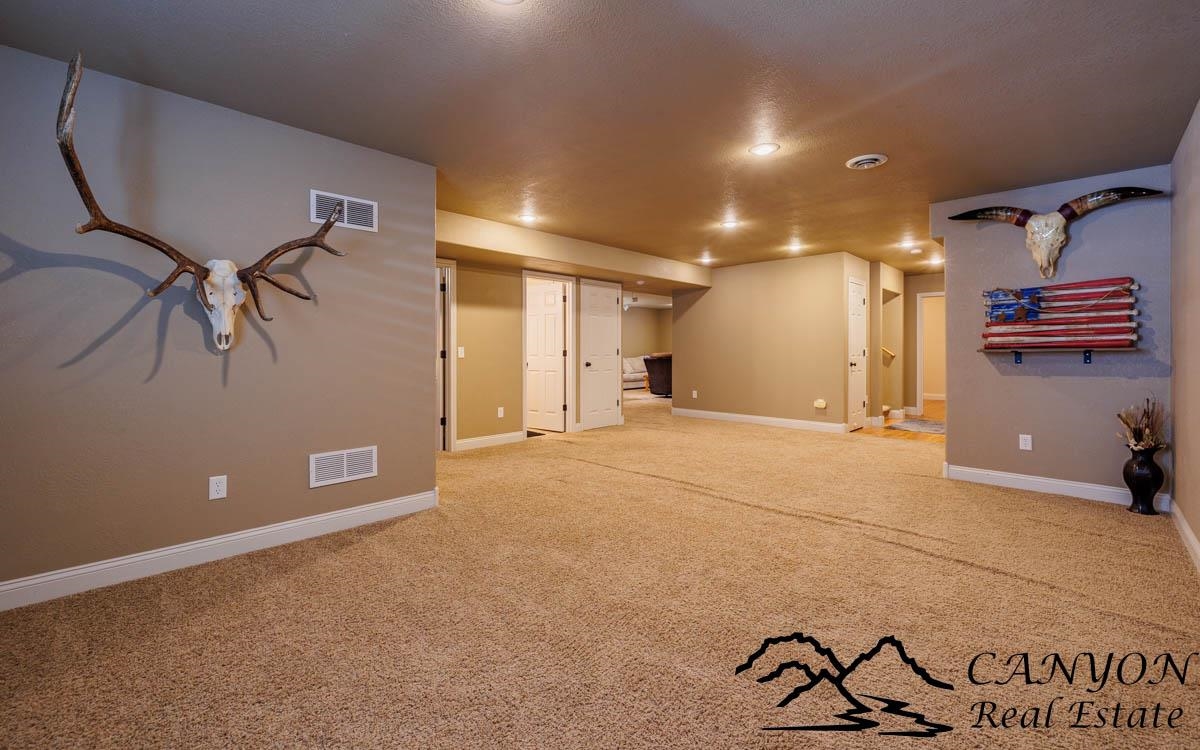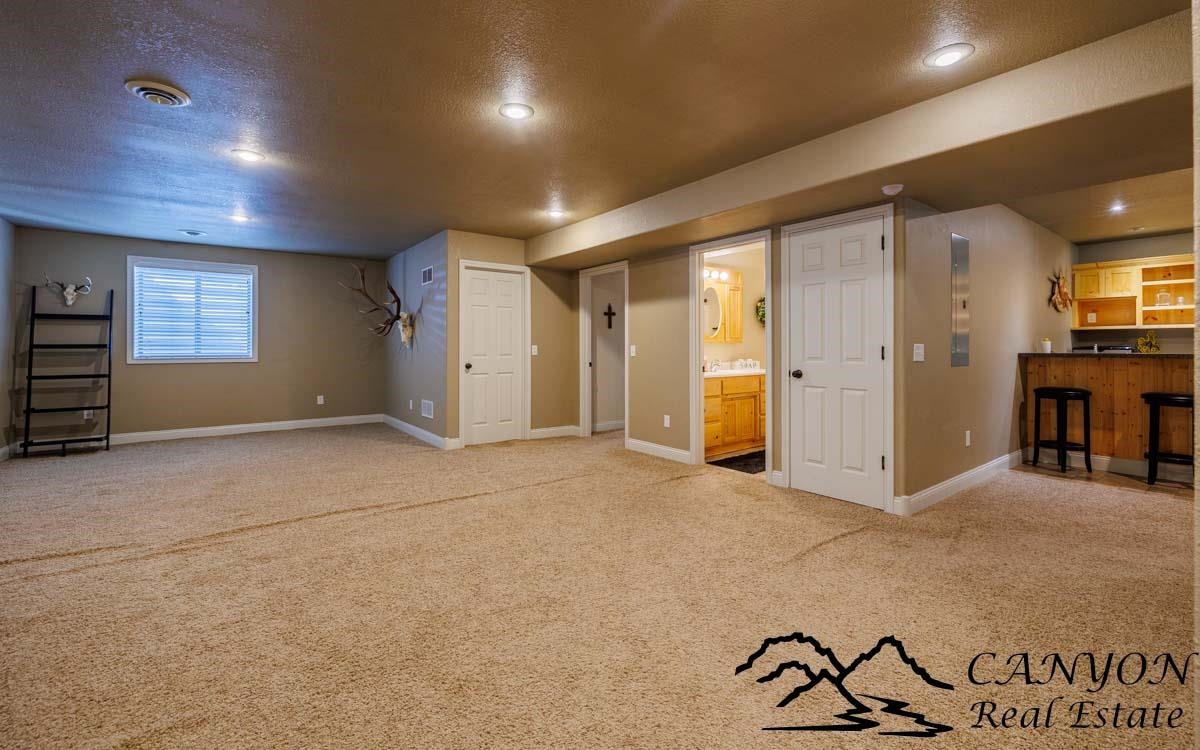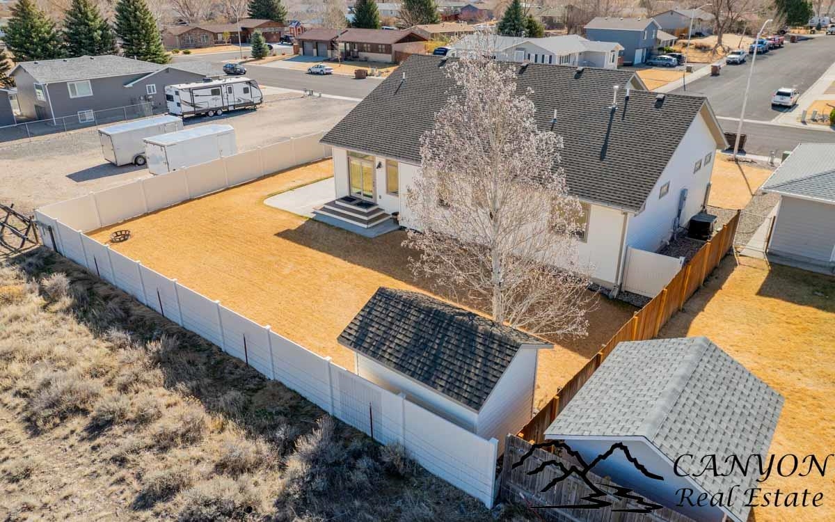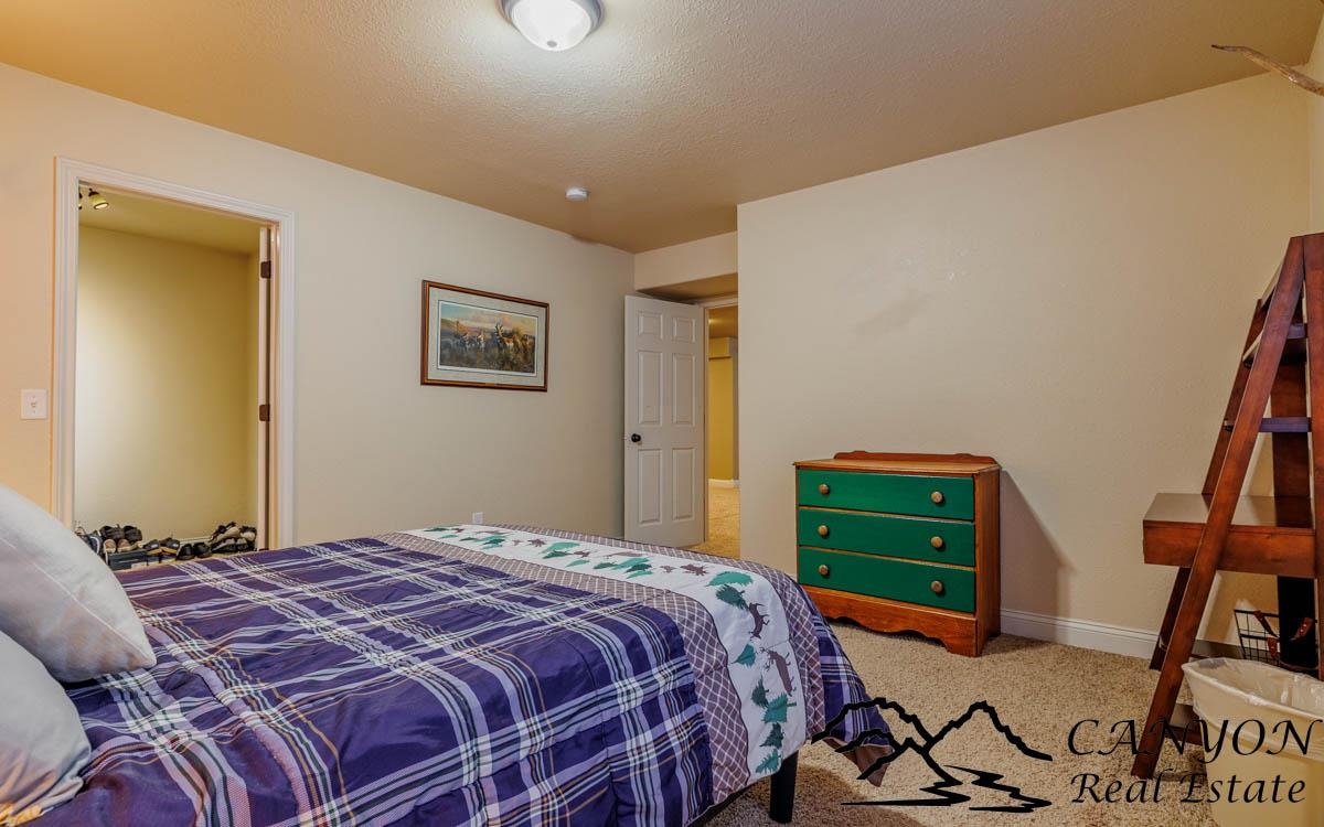 This exceptional 3,366 sq ft home offers spacious, comfortable living in a fantastic location—the property is a short stroll to the Paul Stock Trail, where miles of scenic walking paths lead to outstanding public river access along the Shoshone River, boasting premier trout fishing. Enjoy the rare feeling of owning riverfront acreage without the maintenance, while privately owned land behind the property preserves open space and views. Inside, the home features vaulted ceilings, 5 spacious bedrooms, and 3 full bathrooms, highlighted by warm, upscale finishes throughout. Luxury vinyl flooring and a striking stone gas fireplace anchor the inviting main living area, while the thoughtfully designed floorplan creates seamless flow for both everyday living and entertaining. The kitchen is well-appointed with double ovens, generous workspace, and easy connection to the dining and living spaces. The fully finished lower level includes a wet bar and expansive gathering area, ideal for hosting, game nights, or relaxed evenings. Additional highlights consist of a finished 3-car attached garage, RV parking, vinyl fencing, and full city services for convenience and ease of living. This property offers rare access to trails, river recreation, and Wyoming’s outdoor lifestyle right out your back door, matched by a well-maintained home that delivers space, comfort, and everyday functionality. It’s a unique opportunity where both the setting and the home itself truly stand out.