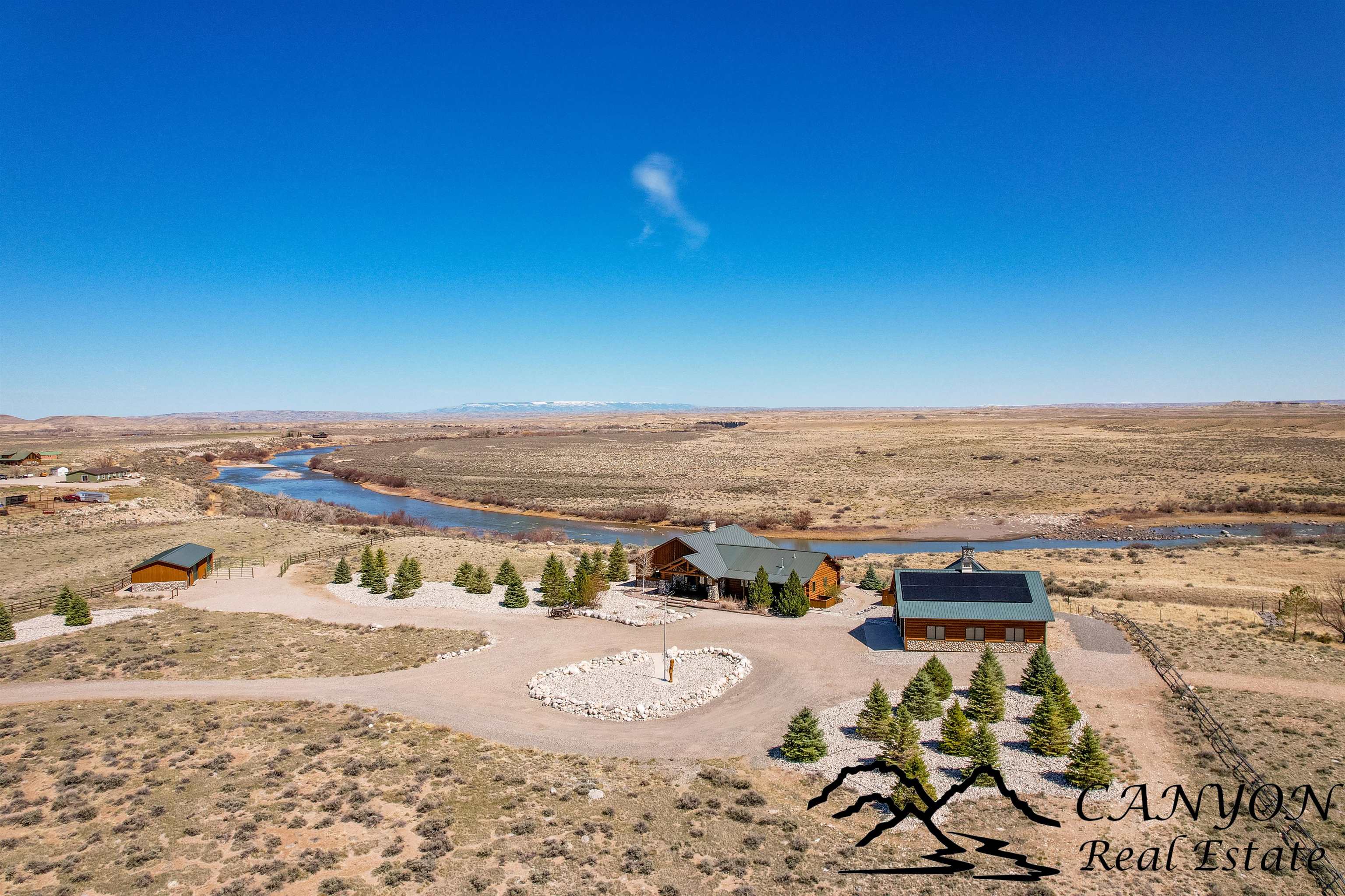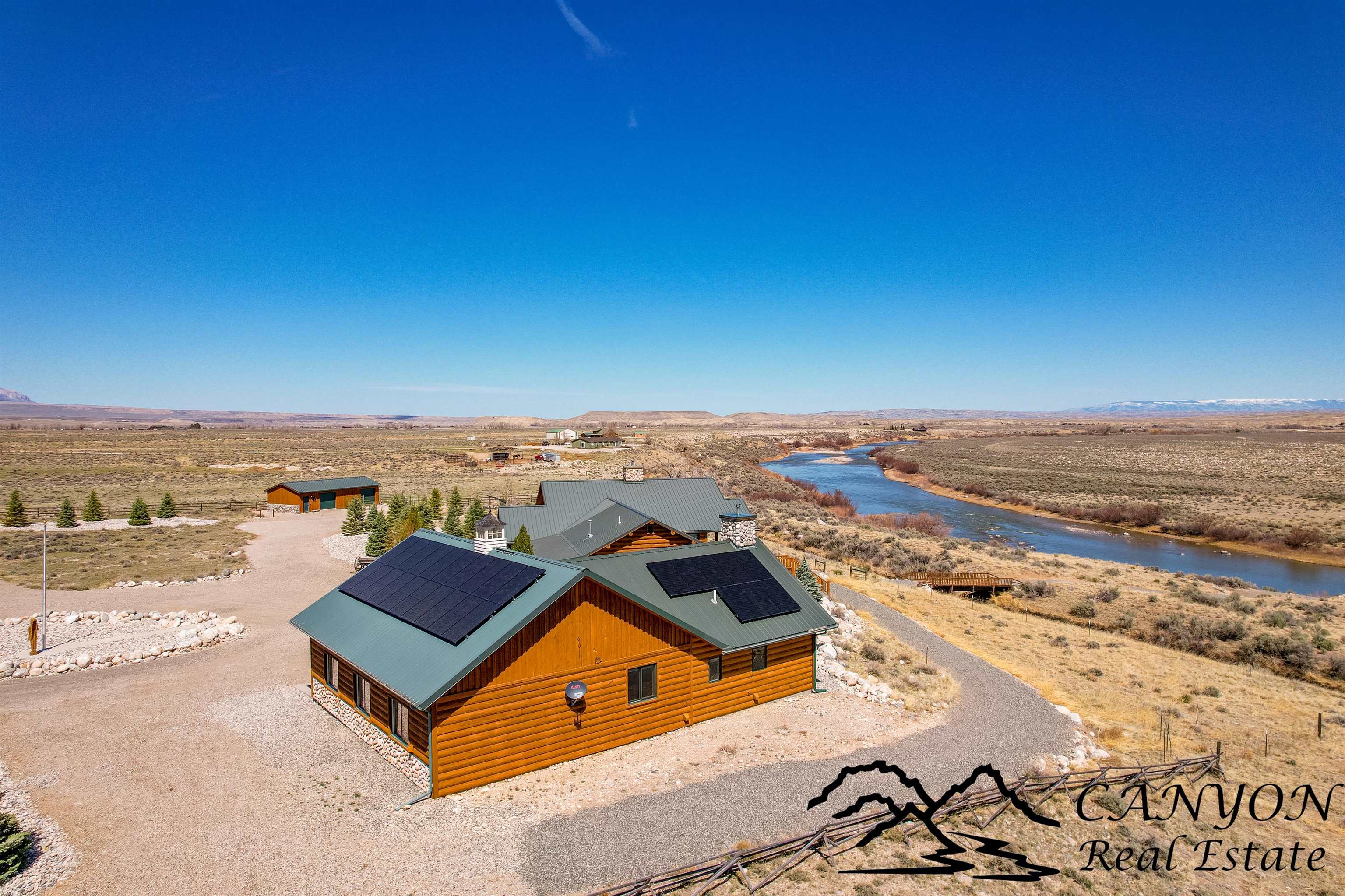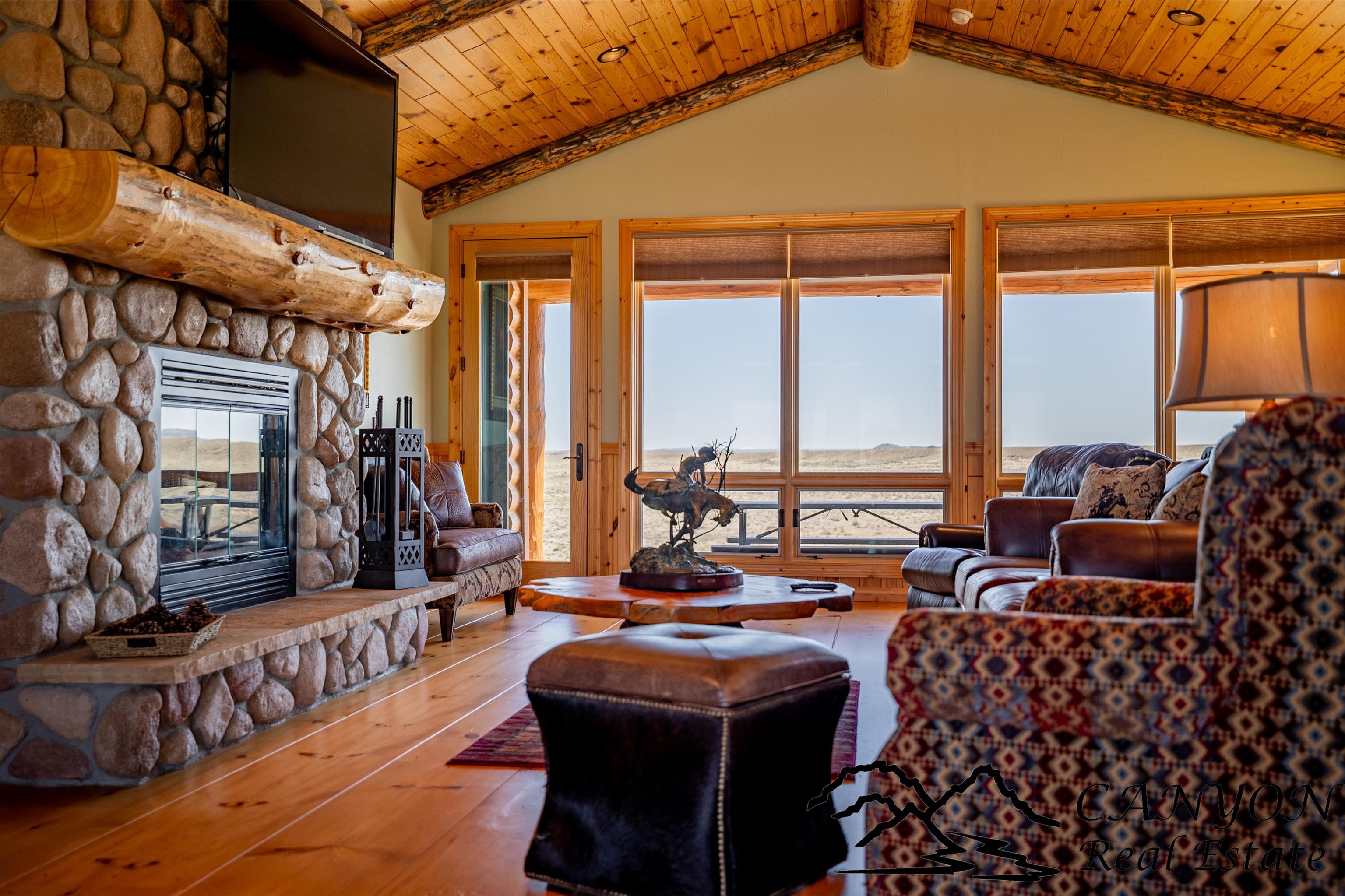 Welcome to Gold Bar River Ranch—an exceptional 18-acre riverfront estate in Clark, Wyoming, offering luxury living in a breathtaking natural setting. The open-concept main home features a spacious great room with a massive river rock fireplace and large windows that frame the Clarks Fork River and Beartooth Mountains. The gourmet kitchen includes custom hickory cabinets, granite countertops, stainless steel appliances, double ovens, and a breakfast bar. The main floor boasts wood and tile flooring, a master suite with private deck access, two walk-in closets, built-in dressers, and a spa-style bath with steam shower, rain head, and double granite vanity. Additional spaces include a guest bedroom and full bath upstairs, plus a downstairs guest suite, family room, and laundry. The attached guest house features 3 bedrooms, a bath, and a kitchenette. A solar backup system is installed with 38kw Generac battery backup and is grid-tied. There is also dual HVAC and water heaters. Outdoors, enjoy Trex decking, landscaped grounds, horse facilities with a barn and heated tack room, and direct access to a scenic river deck. Located near public land, Shoshone National Forest, and Yellowstone—perfect for fishing, horseback riding, and year-round recreation.
