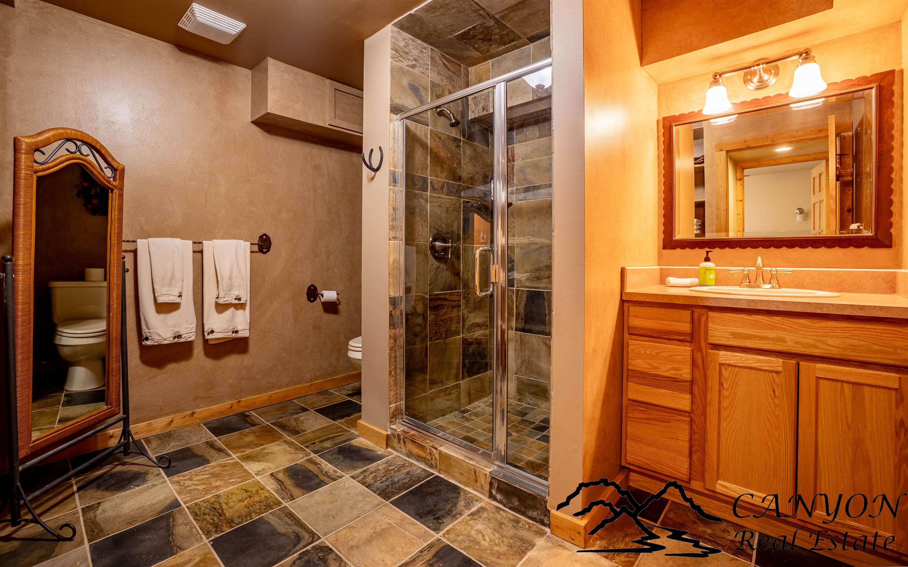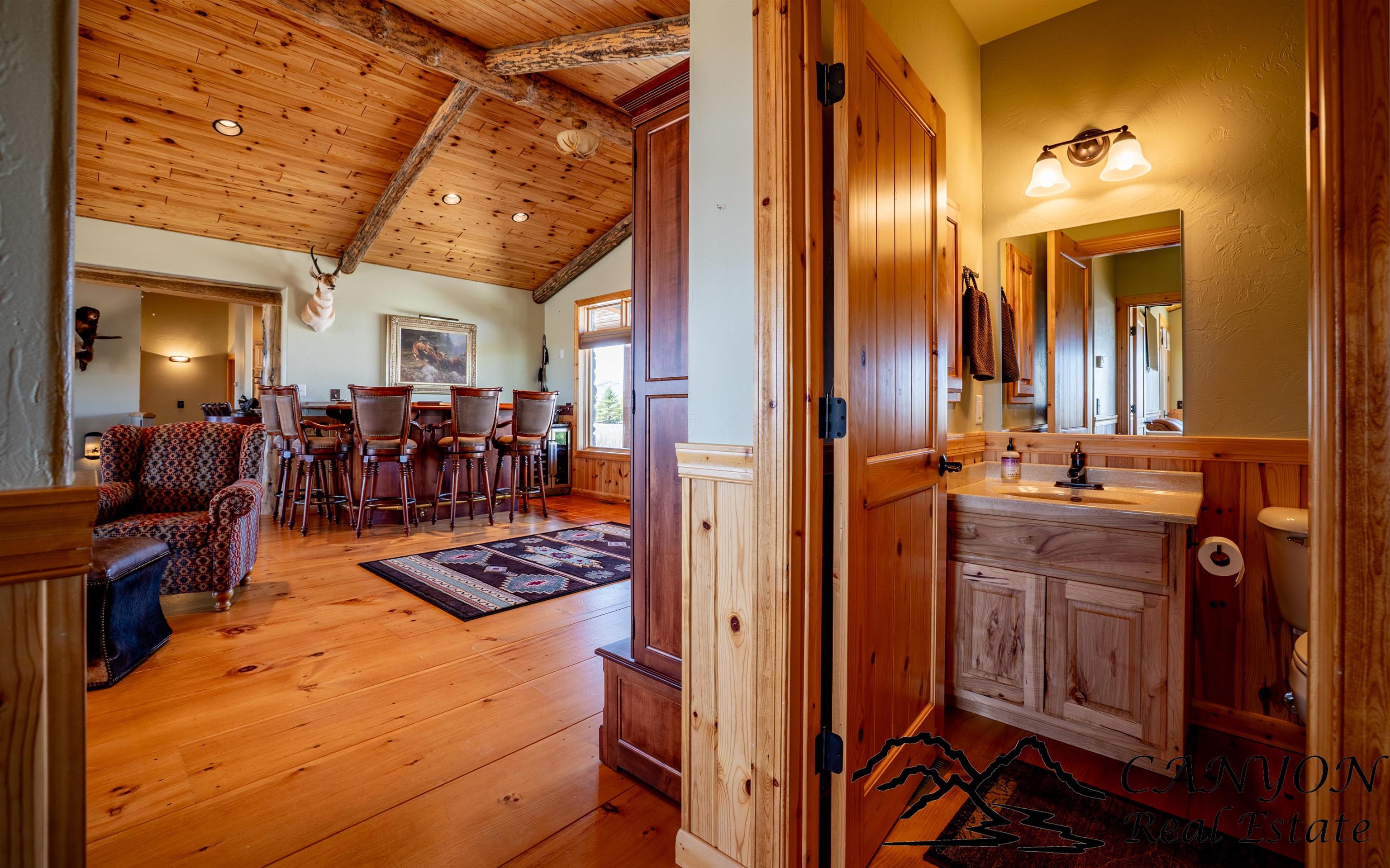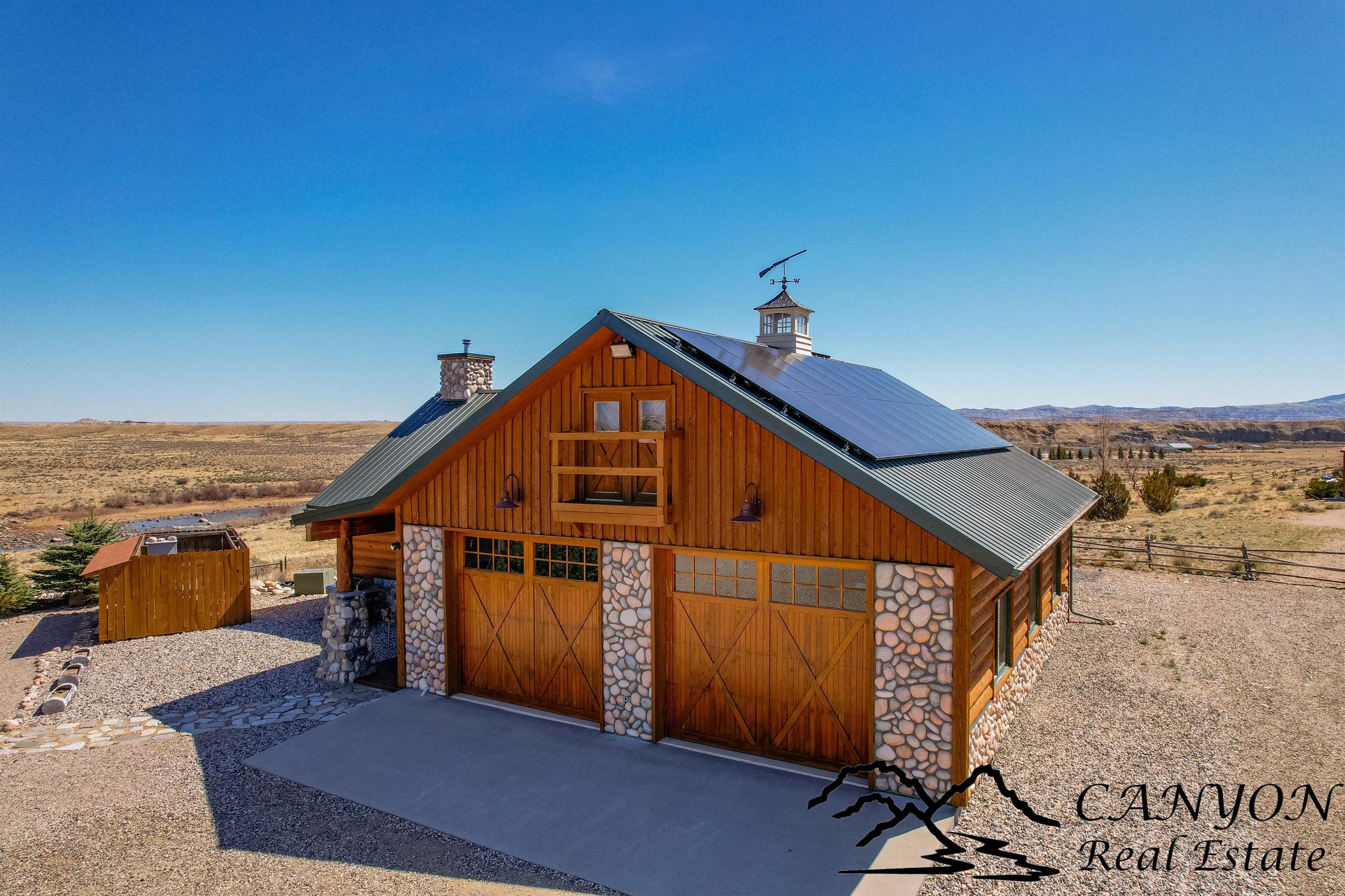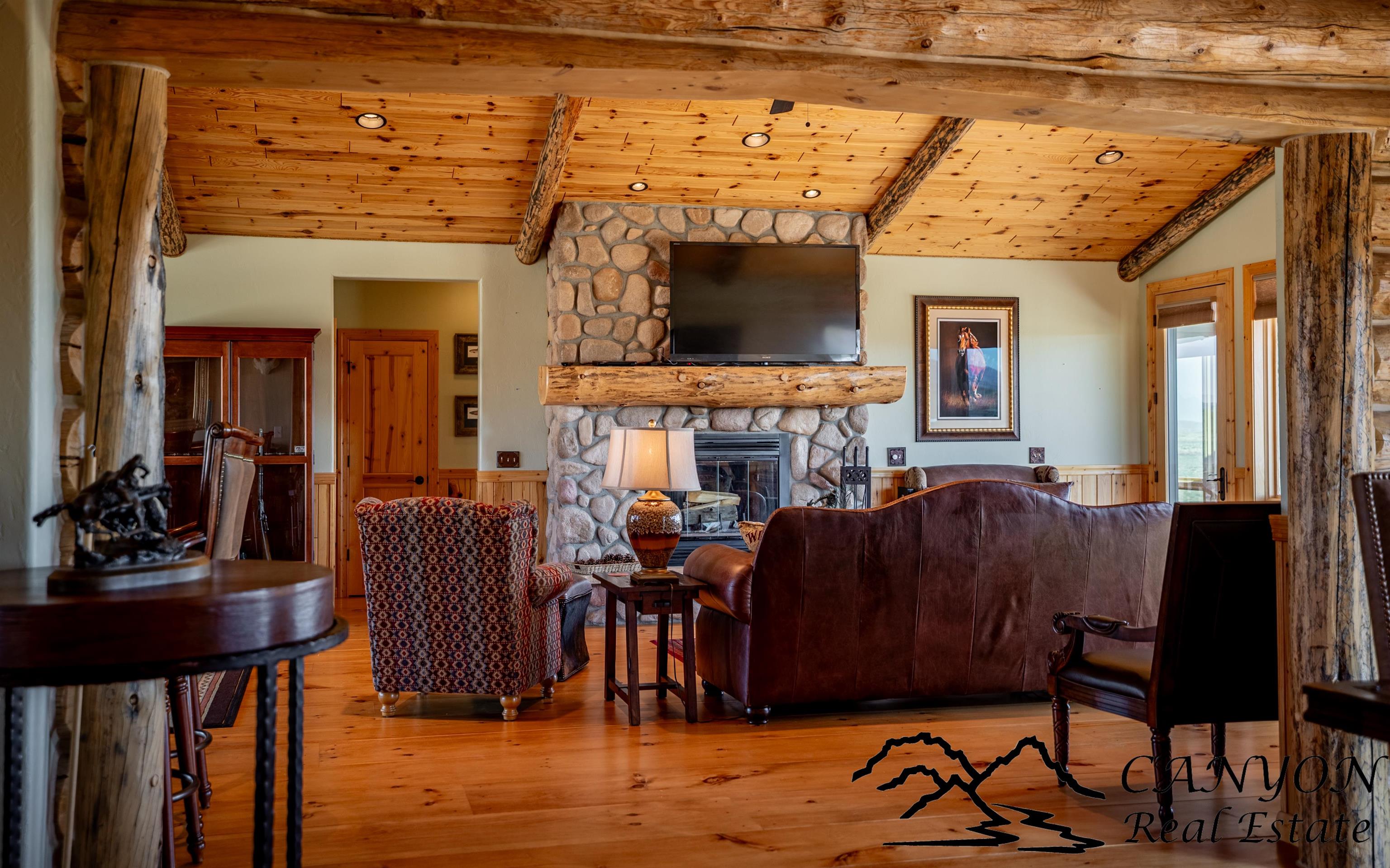 Welcome to Gold Bar River Ranch—an exceptional 18-acre riverfront estate in Clark, Wyoming, offering luxury living in a breathtaking natural setting. The open-concept main home features a spacious great room with a massive river rock fireplace and large windows that frame the Clarks Fork River and Beartooth Mountains. The gourmet kitchen includes custom hickory cabinets, granite countertops, stainless steel appliances, double ovens, and a breakfast bar. The main floor boasts wood and tile flooring, a master suite with private deck access, two walk-in closets, built-in dressers, and a spa-style bath with steam shower, rain head, and double granite vanity. Additional spaces include a guest bedroom and full bath upstairs, plus a downstairs guest suite, family room, and laundry. The attached guest house features 3 bedrooms, a bath, and a kitchenette. A solar backup system is installed with 38kw Generac battery backup and is grid-tied. There is also dual HVAC and water heaters. Outdoors, enjoy Trex decking, landscaped grounds, horse facilities with a barn and heated tack room, and direct access to a scenic river deck. Located near public land, Shoshone National Forest, and Yellowstone—perfect for fishing, horseback riding, and year-round recreation.