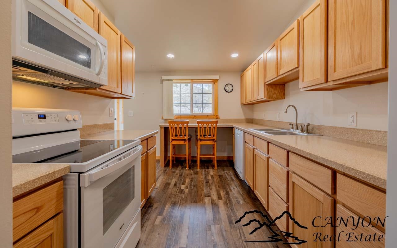 Located in the charming and welcoming town of Meeteetse, this well-kept townhome offers comfortable living, thoughtful updates, and exceptional value. Completely remodeled approximately four years ago, the home features extensive upgrades including new plumbing, electrical, furnace, appliances, drywall, and solid oak kitchen cabinetry. With 2,068 finished square feet- including 1,144 sq ft on the main level and an additional 924 sq ft of finished lower-level space- the home offers flexibility and room to spread out while remaining easy to maintain. The main level features an open and inviting layout with a kitchen, living room, dining area, and bright sunroom ideal for relaxing year-round. An oversized bedroom with a large closet and convenient laundry area, along with a ¾ bathroom, creates comfortable main-level living. Durable LVP flooring runs throughout the space, complementing the home’s clean, modern feel. Downstairs offers two guest bedrooms, a ¾ bathroom, spacious family room, and mechanical room-perfect for guests, hobbies, or additional living space. Outside, enjoy a nicely sized, mostly fenced backyard with a deck for outdoor seating and entertaining. The home also includes a one-car garage, steel siding, natural gas forced-air heat, and all city services. With no HOA or covenants and easy walking distance to the Greybull River, this property combines small-town charm, convenience, and affordability in a move-in-ready package.