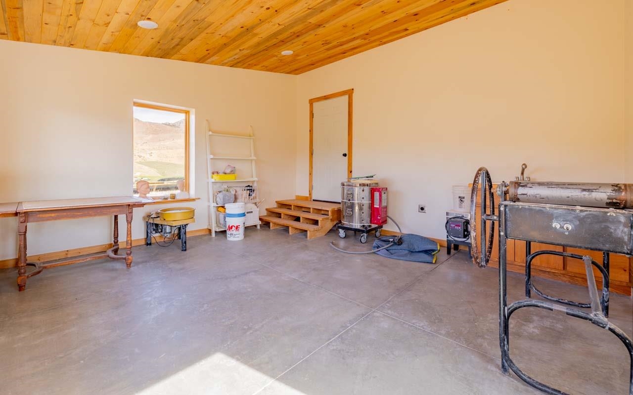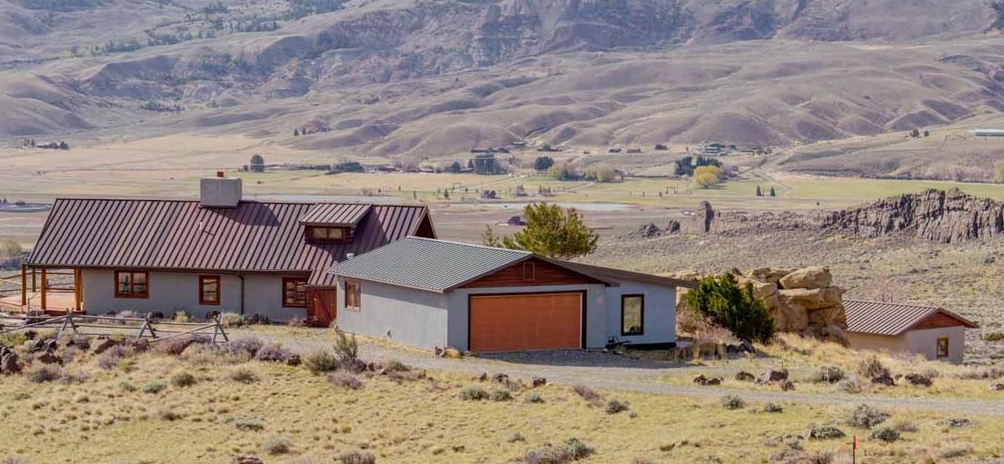 Artist's compound & relaxing retreat. Unique property off the beaten path so you can enjoy the solace of wide open spaces. Lots of wildlife and peace and privacy reign, Well kept home sits up against the Cathedral Cliffs of Jim Mountain On 10 undesturbed acres high on the mountain above Copperleaf. Breathtaking views of the Absaroka Mountains and the Wapiti Valley. Has Forest Service access via Rocking M Trl, Wall Creek runs through it with the famous China Wall to the West. Features fascinating and rare rock formations (hoodoos). Amenities include wood fireplace, metal roof, radiant floor heating and a newly remodeled kitchen. Has a brand new water heater and a dependable 250' well the feeds the cistern. Straw bale and stucco construction built to keep you warm in winter and cool in summer. Protective covenants for your protection.