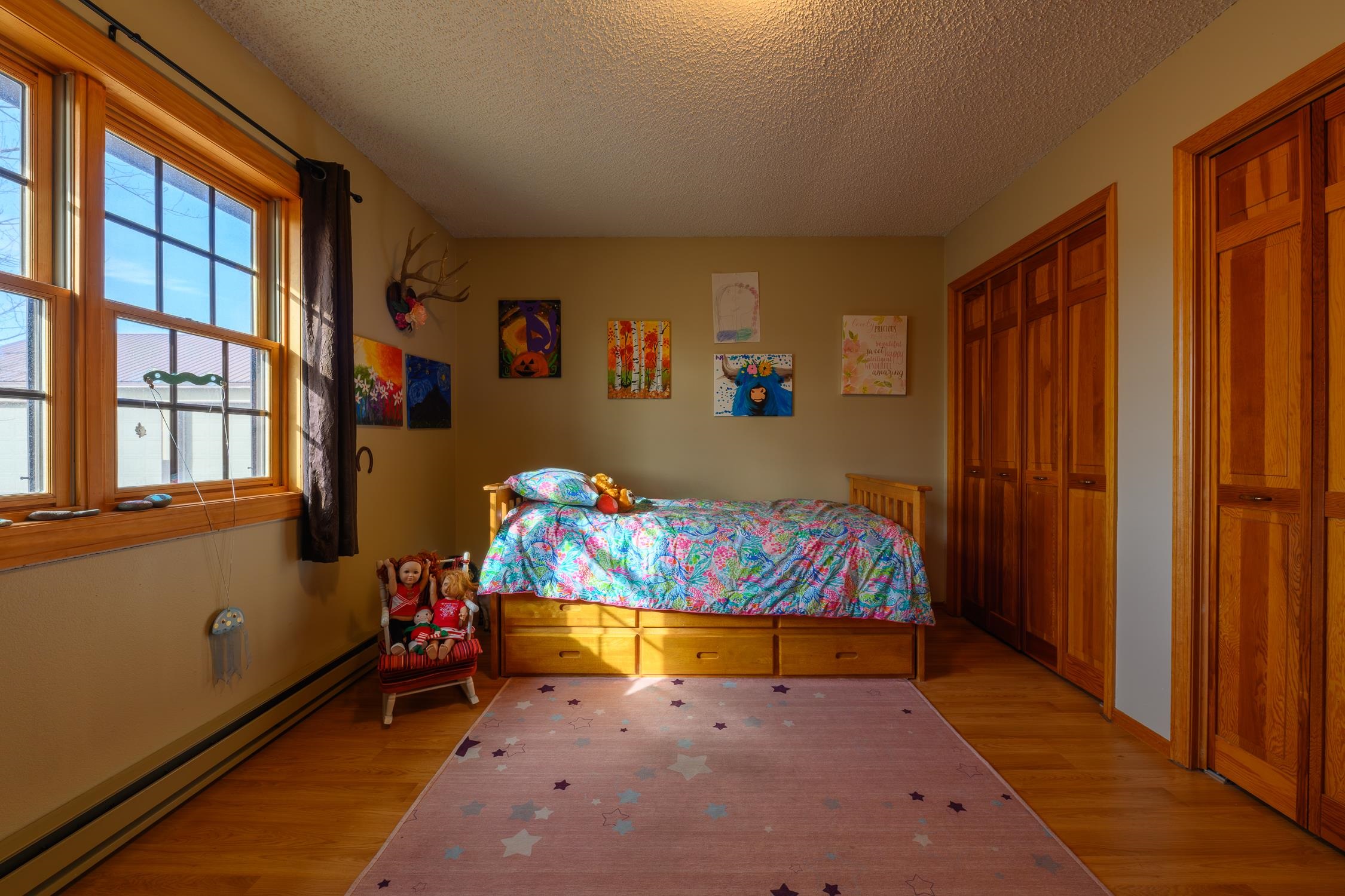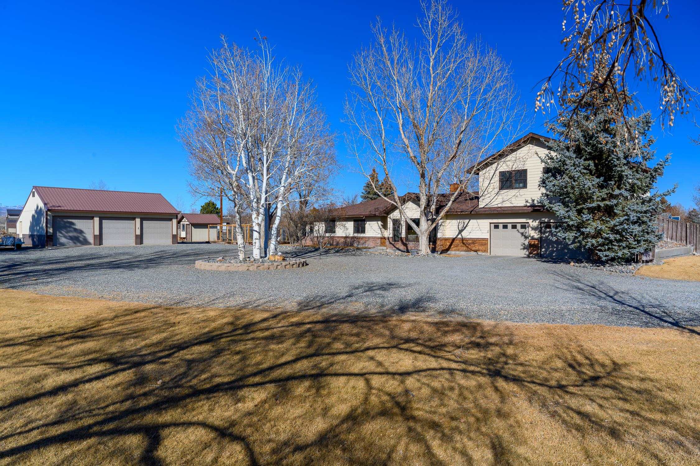 Enjoy the perfect blend of convenience and country living in this beautifully updated 4-bedroom, 3-bath home just minutes from town. The modern kitchen features quartz countertops, quality cabinetry, and ample space for cooking and gathering. Unwind in the peaceful primary suite, complete with a fully updated walk-in closet with custom built-ins for optimal organization. Upgrades include Andersen and Jeld-Wen windows, a new roof, durable SmartSide siding, a cozy fireplace, and a charming soapstone wood stove. Step outside to relax on the deck while enjoying wide-open space. A new fence is being installed, and horses are welcome. Gardeners will love the fully irrigated garden area for easy upkeep. The property also features a 32’ x 36’ three-bay shop, irrigation system, and room for hobbies, animals, or equipment—offering space, function, and modern comfort close to town.